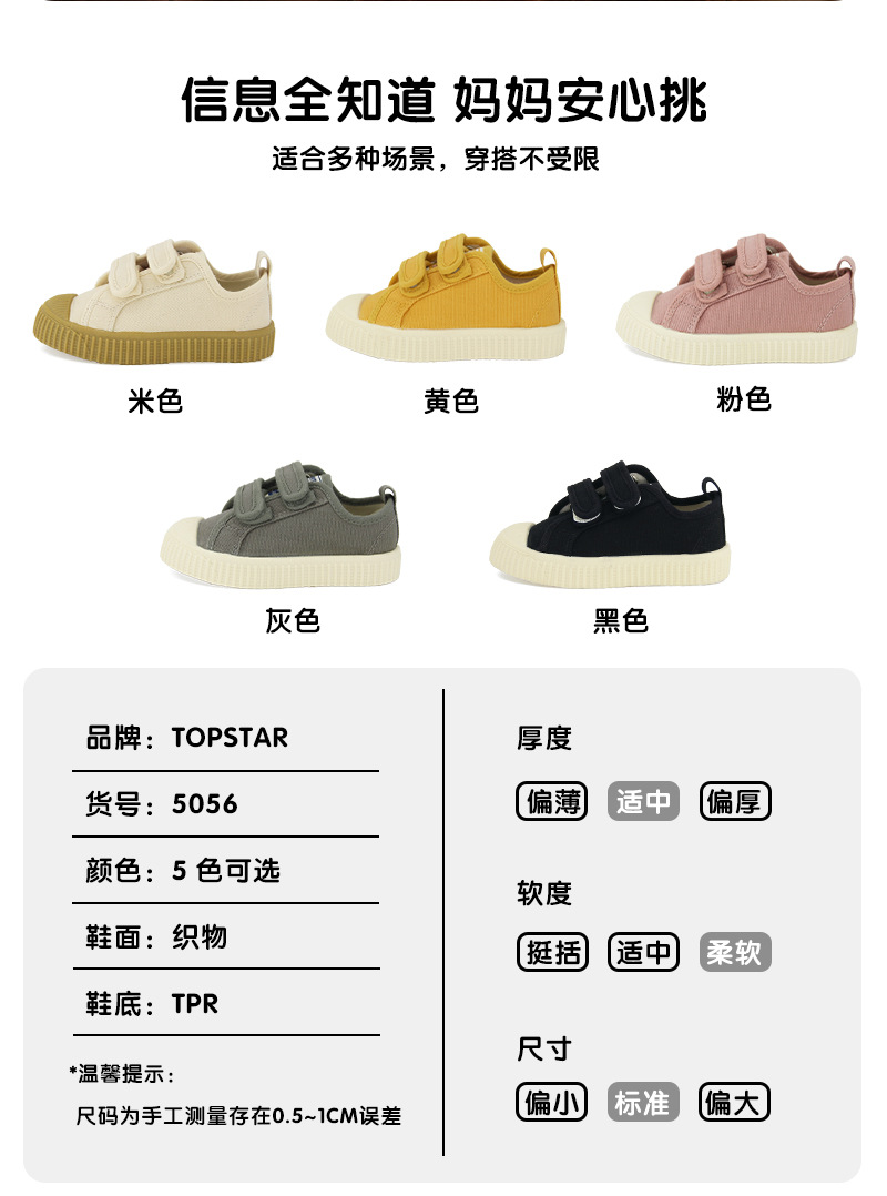 Topstar 어린이 캔버스 신발 봄과 가을 한국 스타일 어린이 벨크로 비스킷 신발 유치원 부드러운 실내 신발스토어 가기