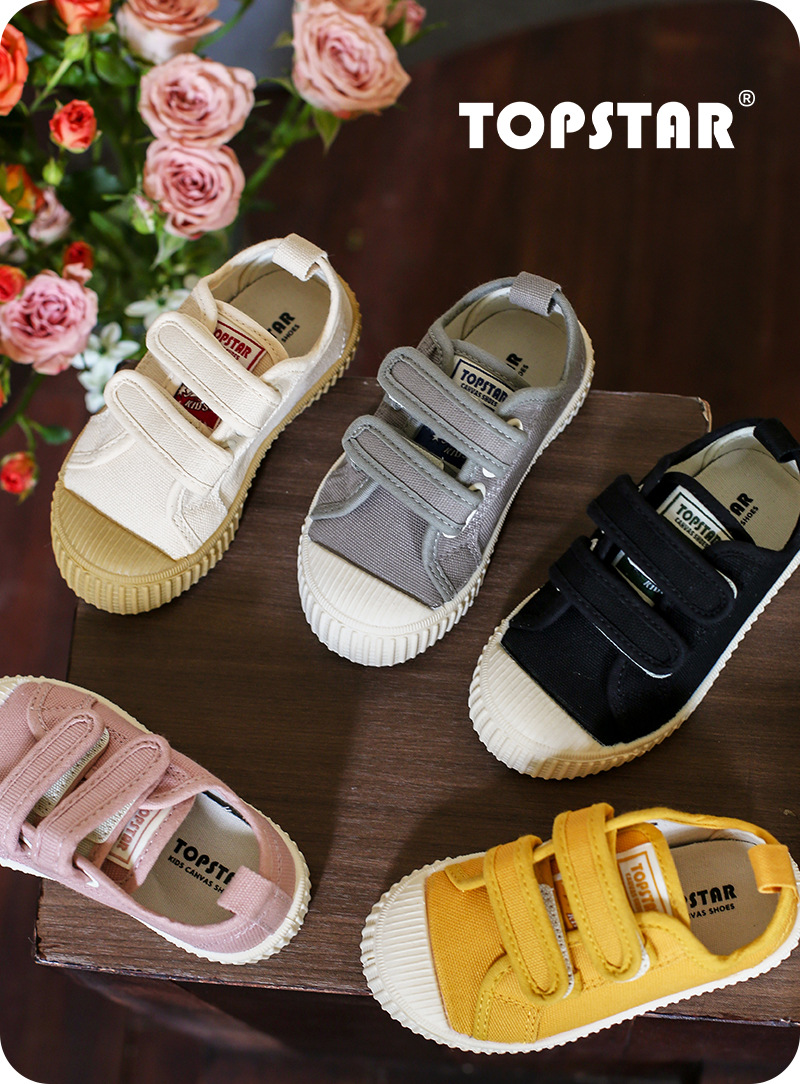 Topstar 어린이 캔버스 신발 봄과 가을 한국 스타일 어린이 벨크로 비스킷 신발 유치원 부드러운 실내 신발
