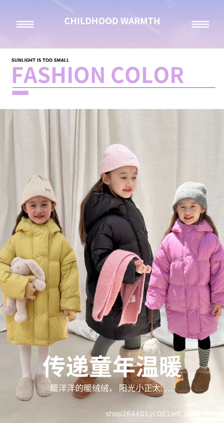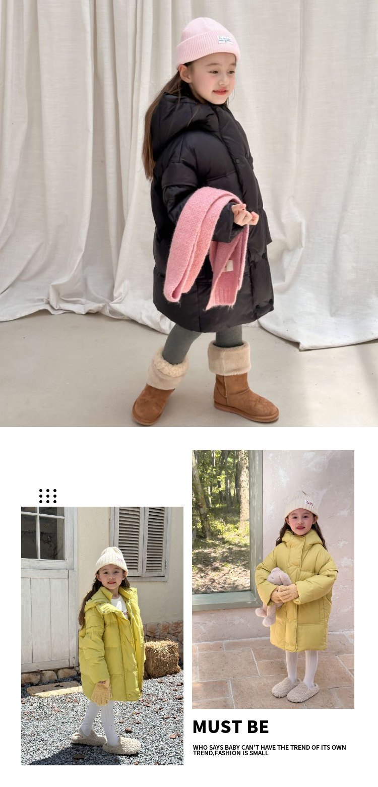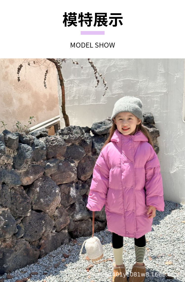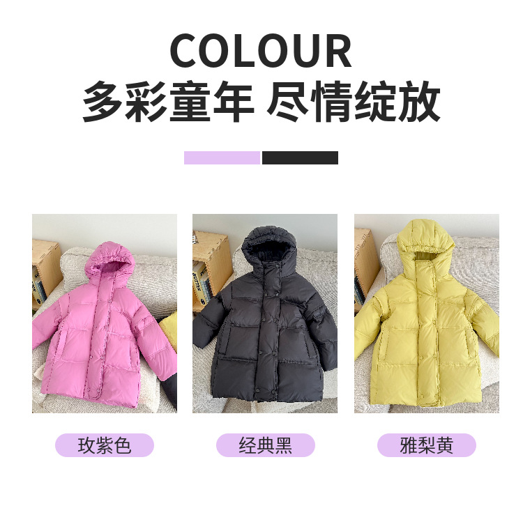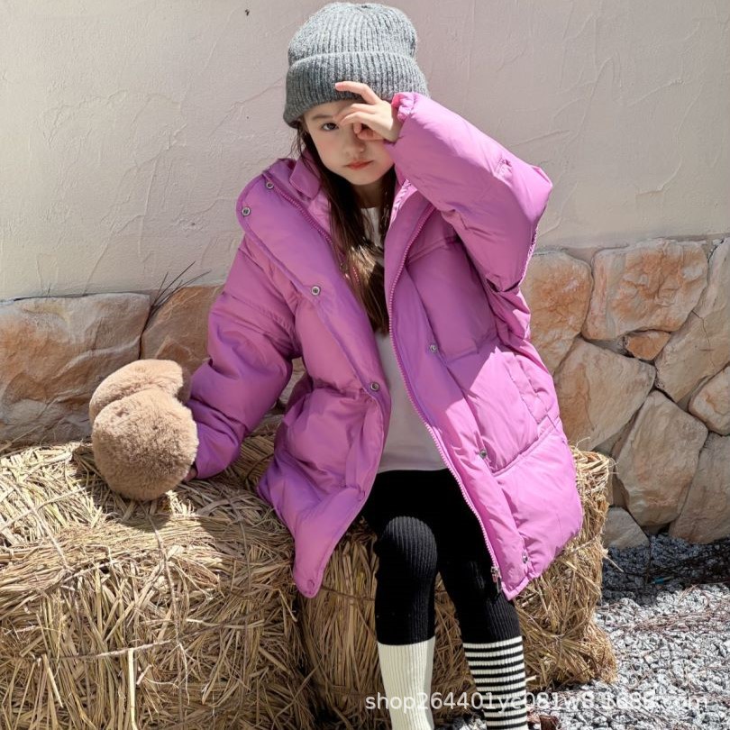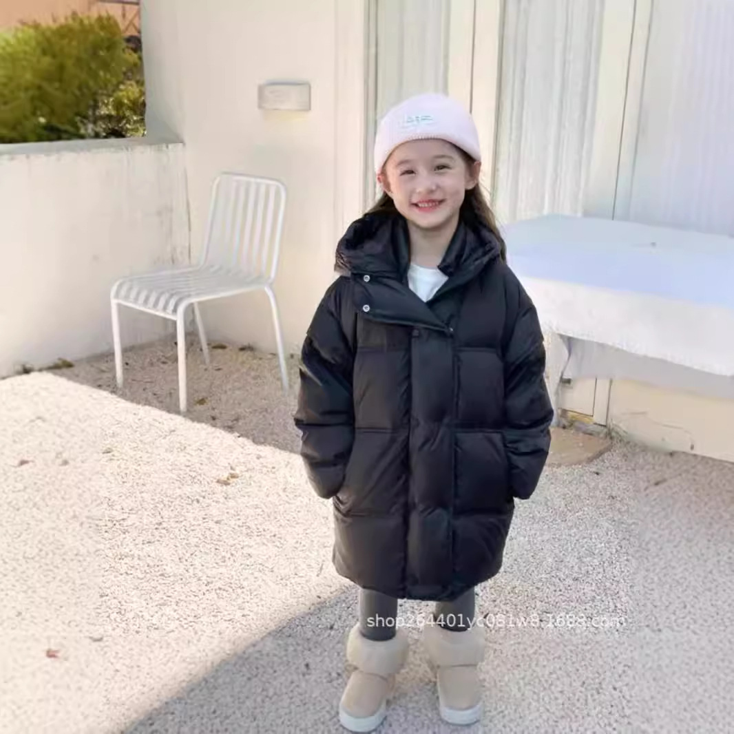 소녀 중간 길이 다운 재킷 2024 새로운 서양식 어린이 올매치 겨울 두꺼운 후드 재킷 다운 재킷스토어 가기