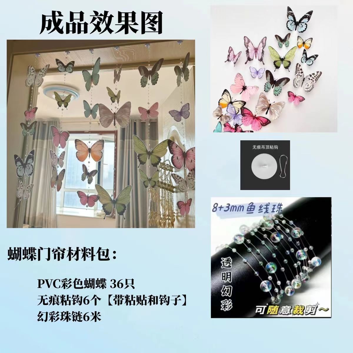 다채로운 나비 선물 상자 DIY 도어 커튼 재료 패키지 나비 커튼 우산 깜짝 상자 침실 거실 배경 벽