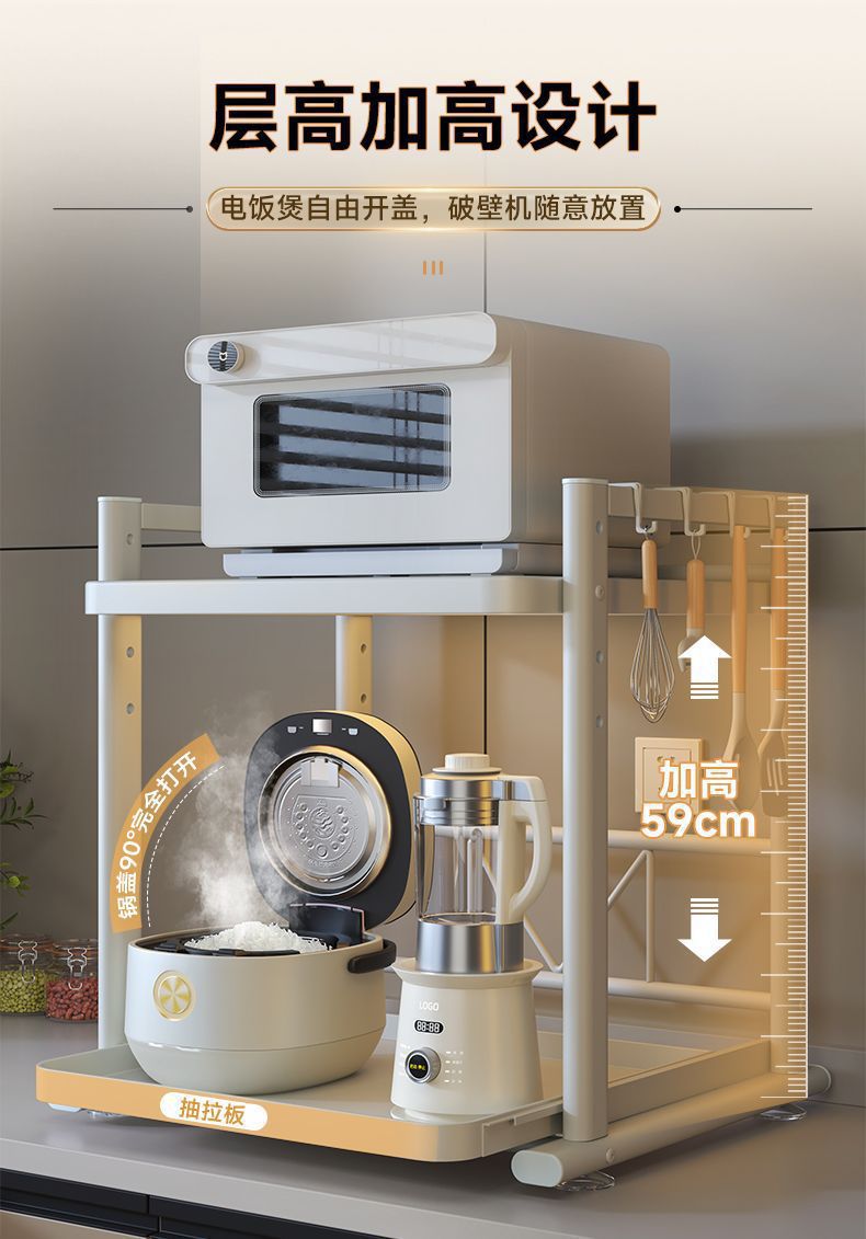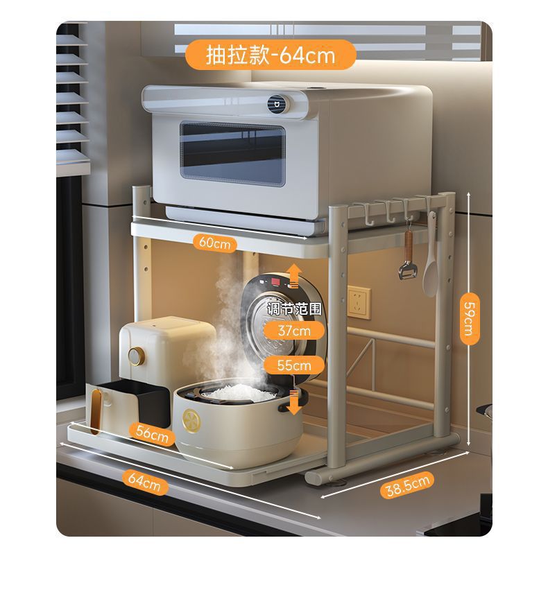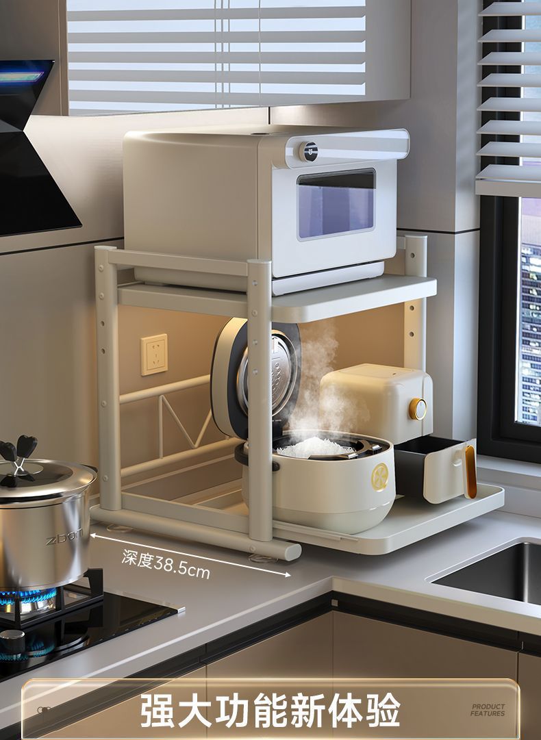 높이 조절 주방 저장 랙 더블 레이어 전자 레인지 랙 가정용 데스크탑 전기 밥솥 랙 에어 프라이어 스토리지 랙
