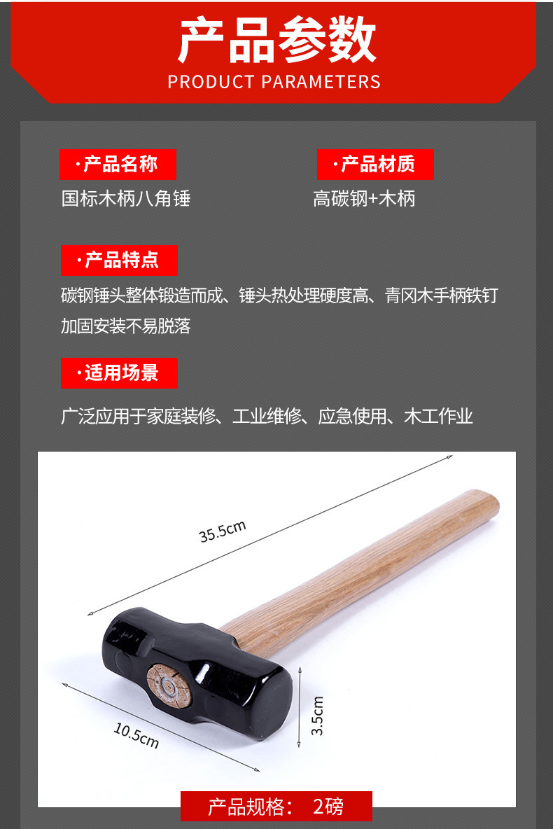 공장 직접 판매 나무 손잡이 팔각형 망치 망치 망치 2/3/4 파운드 무거운 벽 부수기 벽 철거 망치 망치 망치스토어 가기