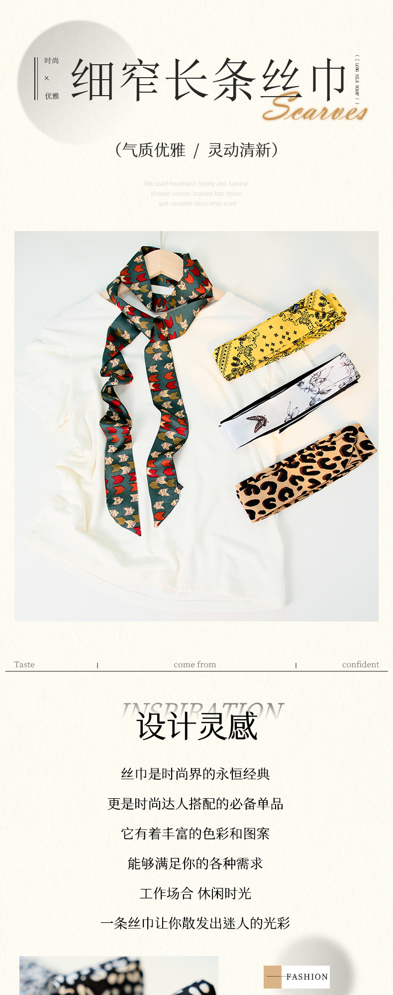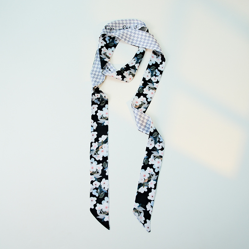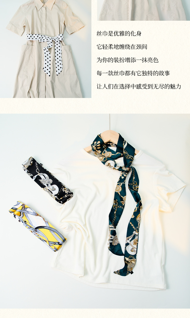 국경 인쇄 날씬한 좁은 하이 엔드 작은 실크 스카프 여성 모조 실크 같은 스타일 한국 스타일 작은 스카프 가방 벨트 리본스토어 가기