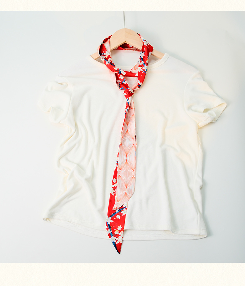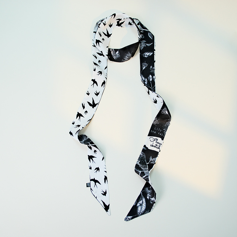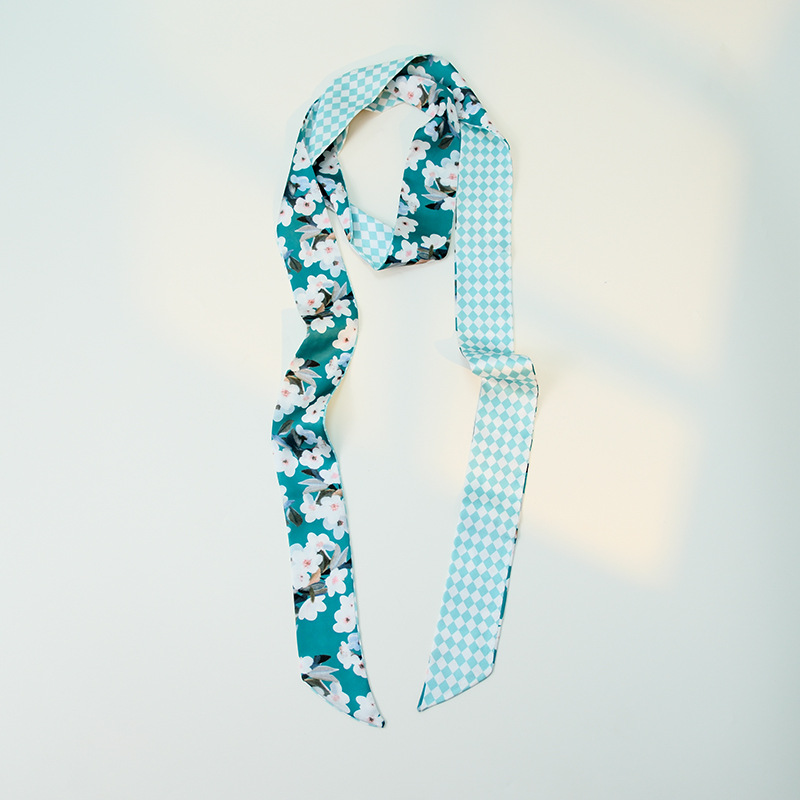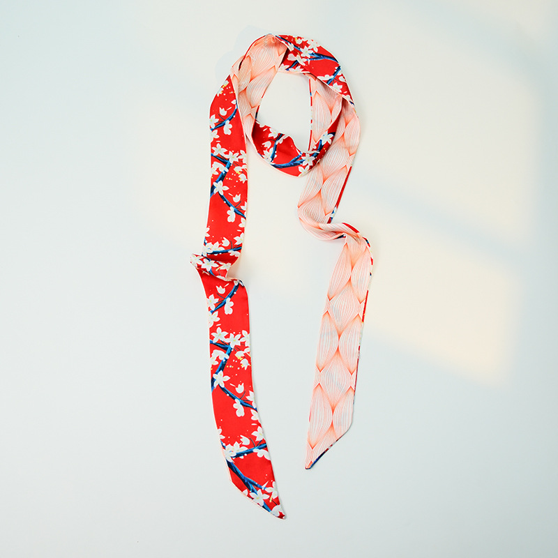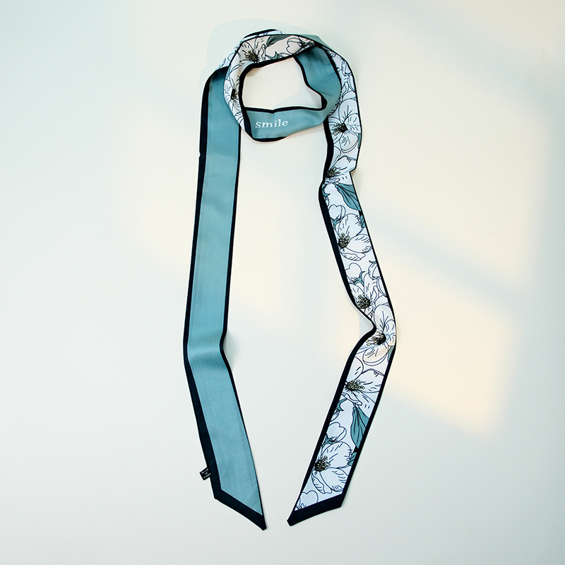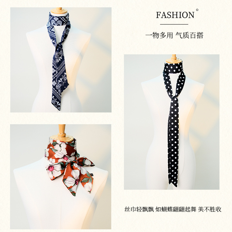 국경 인쇄 날씬한 좁은 하이 엔드 작은 실크 스카프 여성 모조 실크 같은 스타일 한국 스타일 작은 스카프 가방 벨트 리본