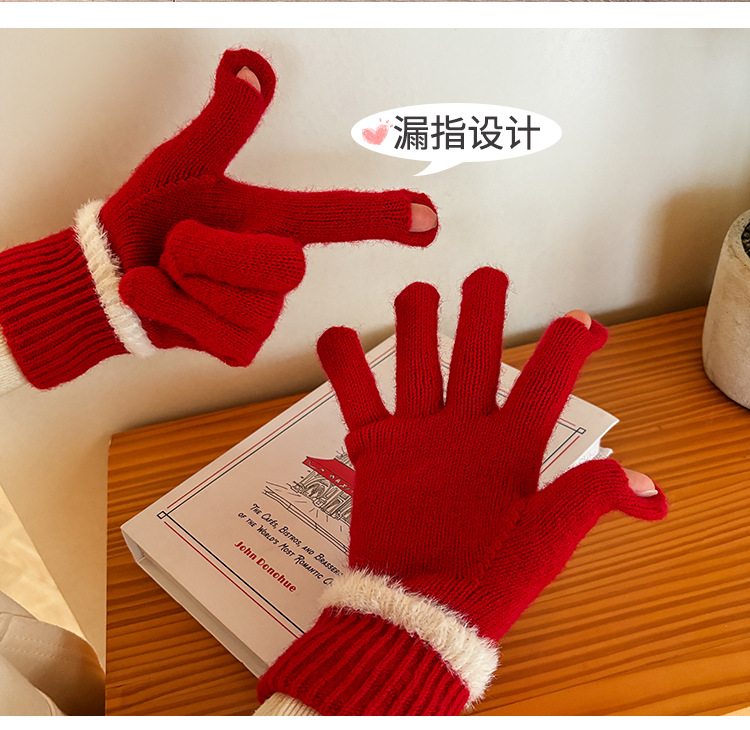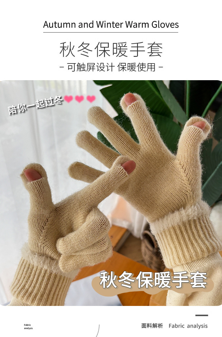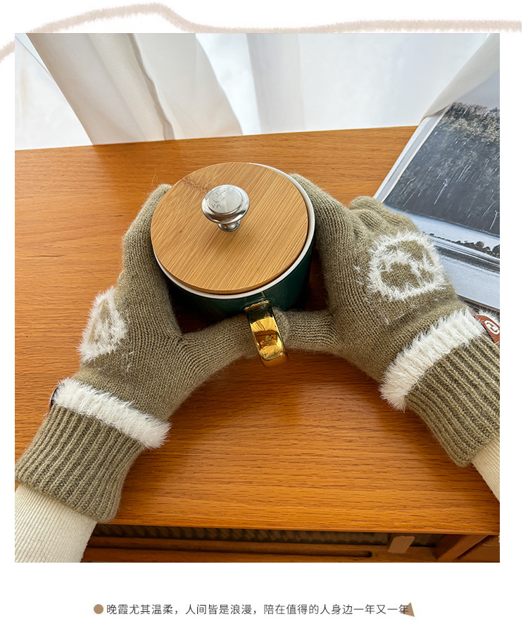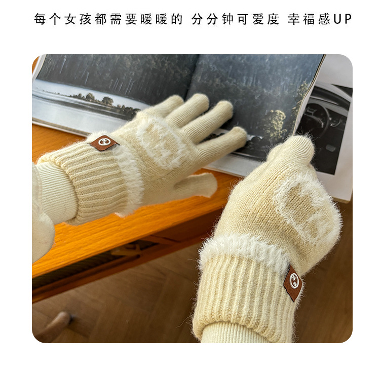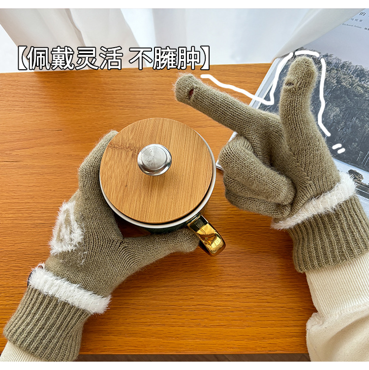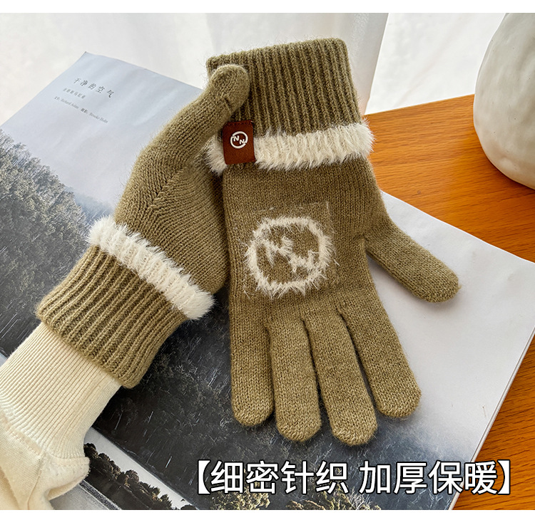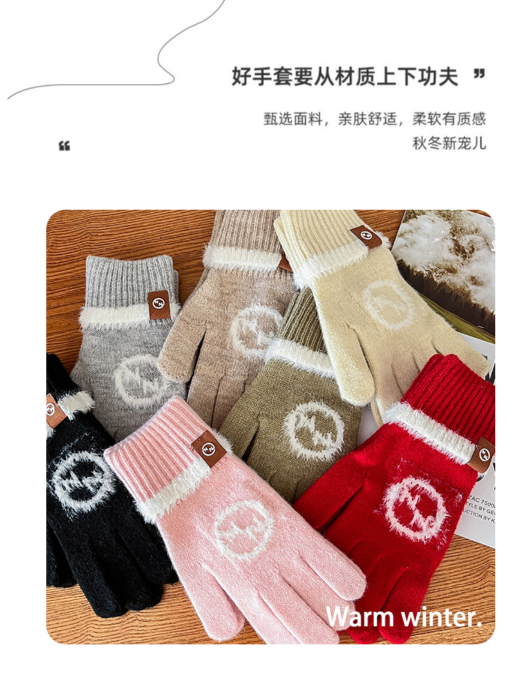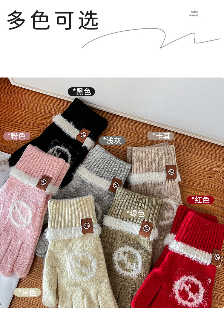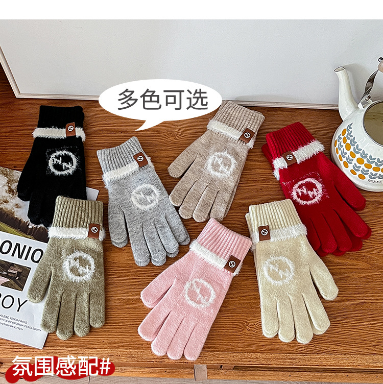 엄밀히 선정 된 귀여운 자수 새 만화 스마일리 방한 남성과 여성의 다섯 손가락 승마 기모 가을과 겨울 학생들스토어 가기