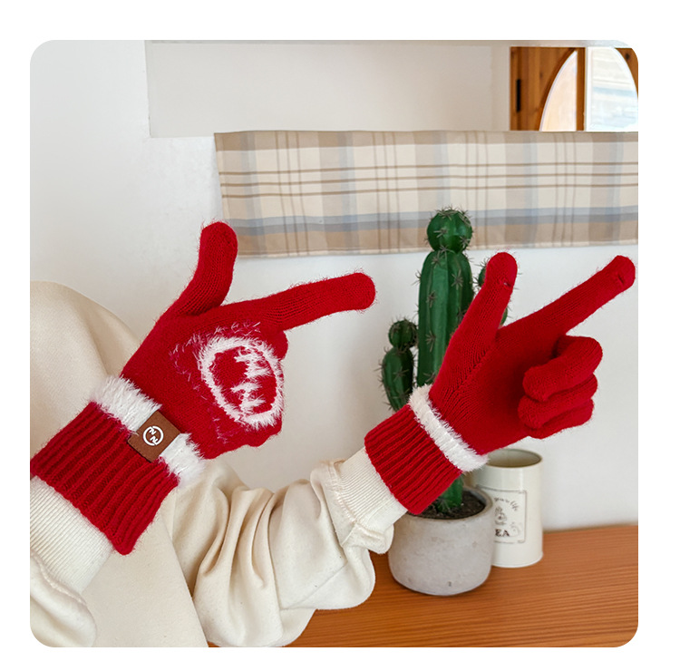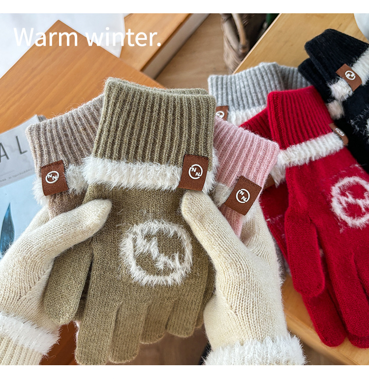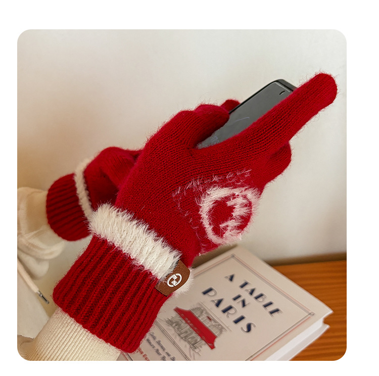 엄밀히 선정 된 귀여운 자수 새 만화 스마일리 방한 남성과 여성의 다섯 손가락 승마 기모 가을과 겨울 학생들