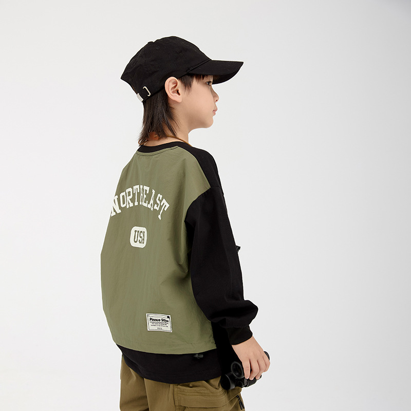 소년 긴팔 2025 가을 새로운 어린이 한국 스타일 포켓 티셔츠 소년 잘 생긴 가짜 투피스 캐주얼 운동복 유행스토어 가기