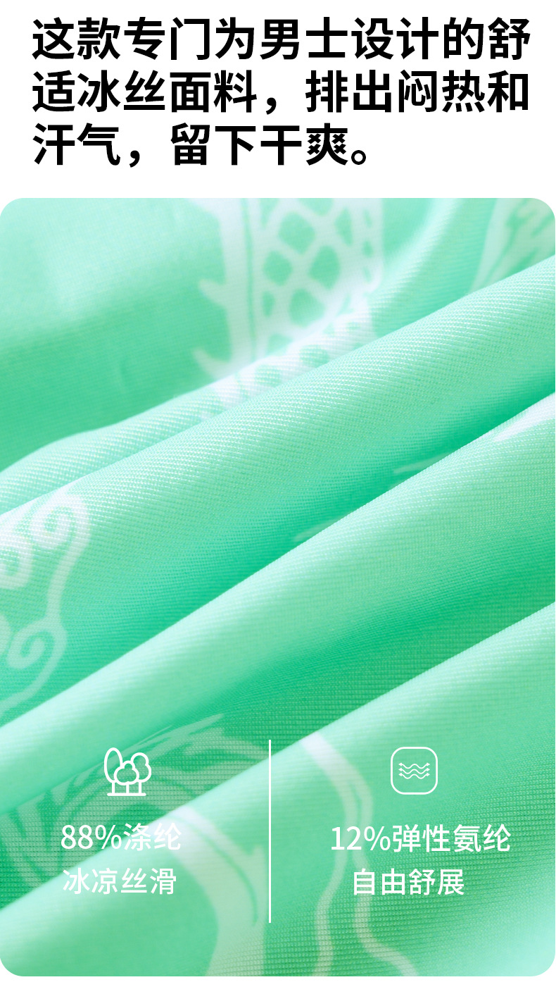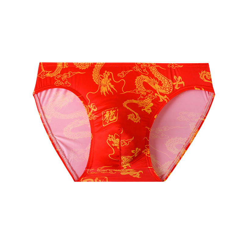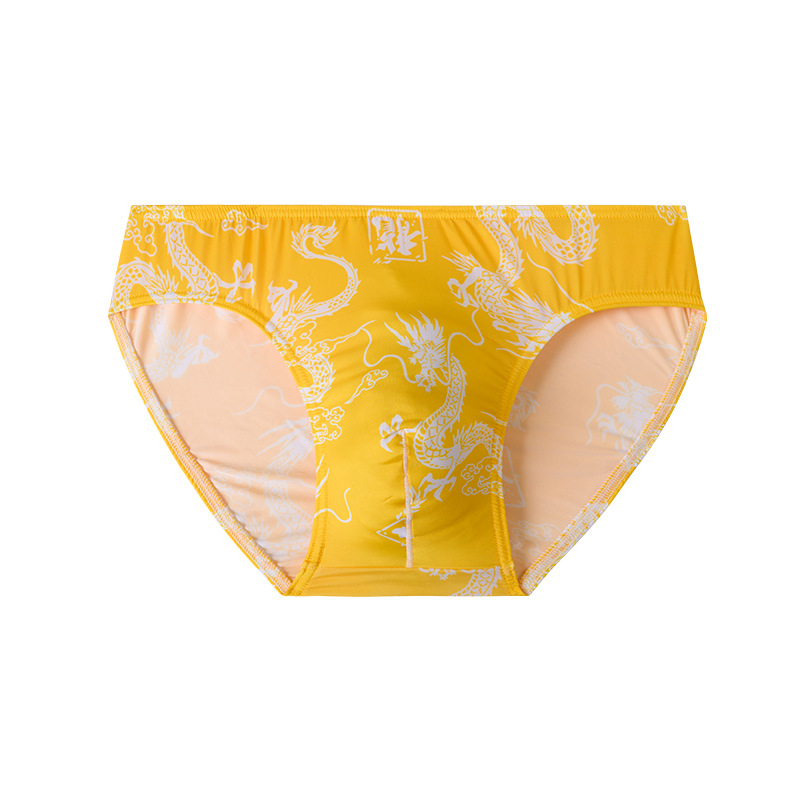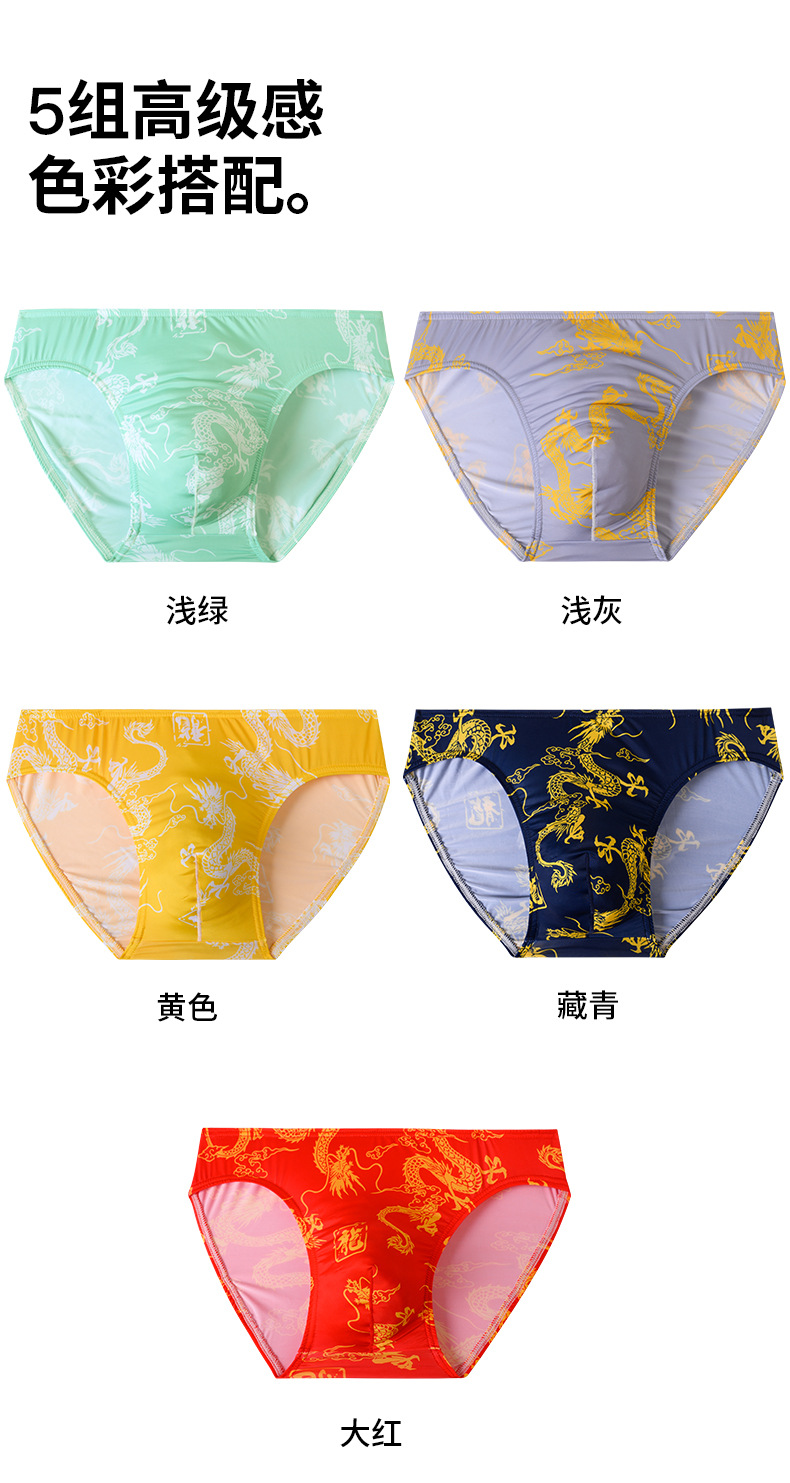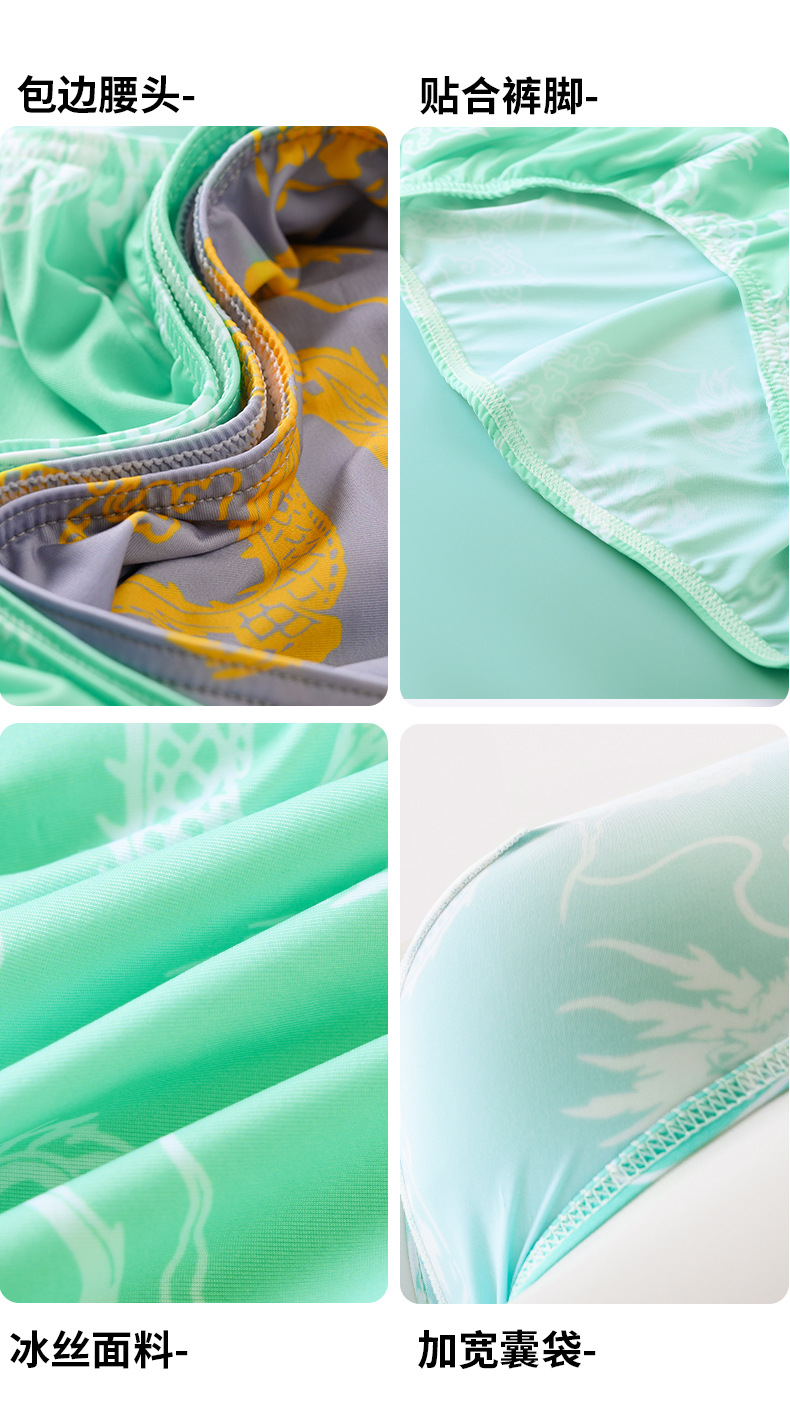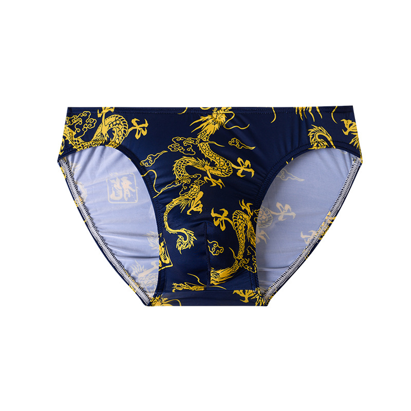 여름 남자 브리프 시원한 얼음 실크 드래곤 패턴 중국 스타일 가벼운 통기성 편안한 복서 반바지 짧은 바지