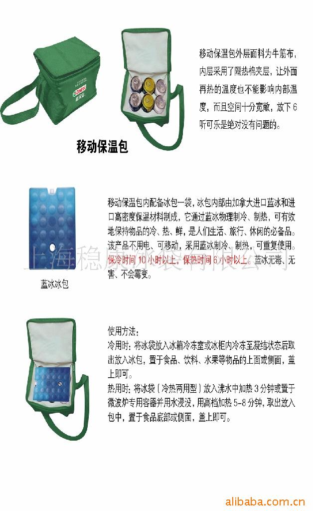 1.本产品是冰的替代品,同保温包(箱、盒、桶)配合使用可有效的保持食物的新鲜,适用于上学、上班带饭、户外工作、户外活动、旅游等。并被广泛用于水产品、鲜花、水果等对温度敏感产品的运输。还可以用于医疗护理(冷敷)、体育运动保健、美容护肤等领域。