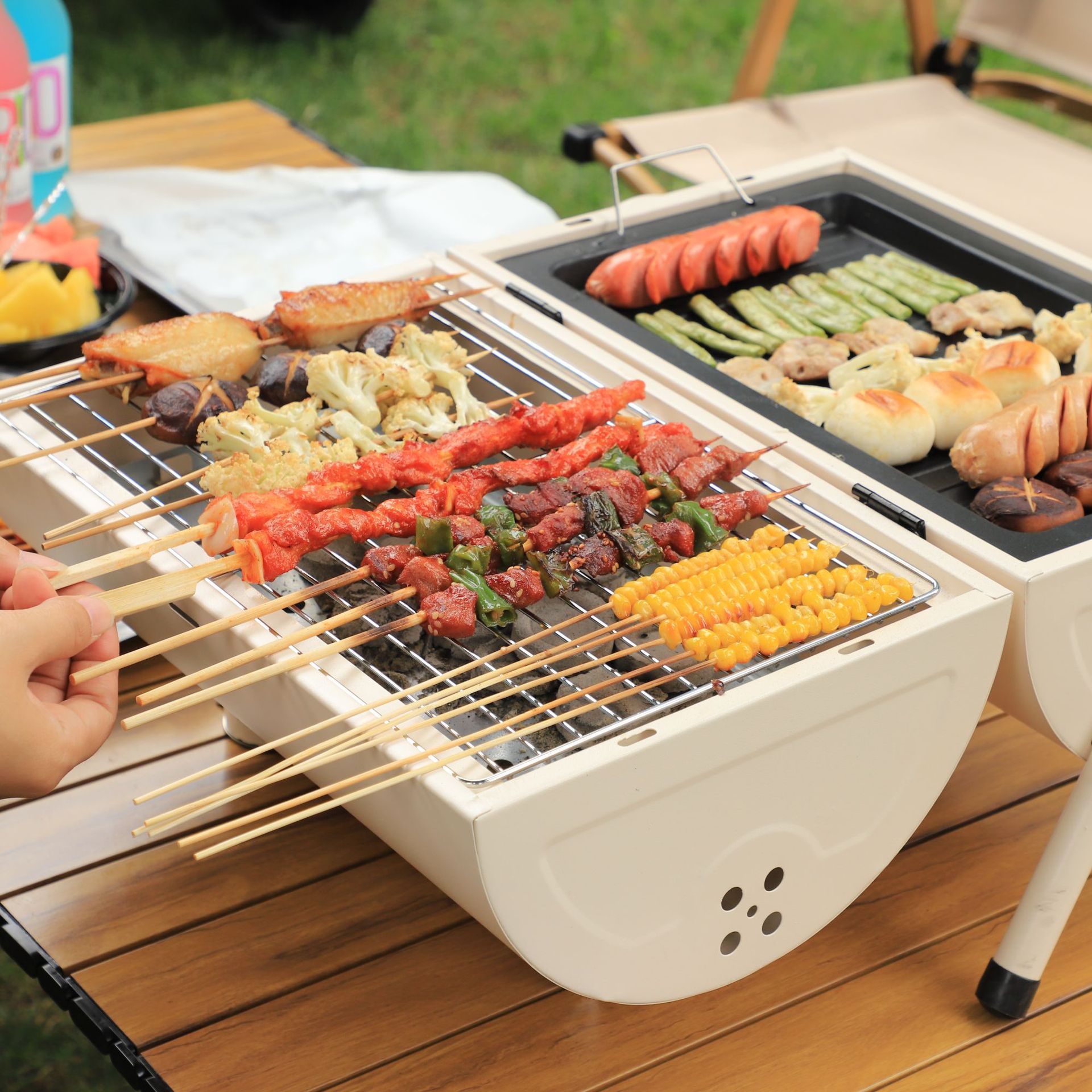 야외 바베큐 그릴 오븐 스토브 가정용 로스트 꼬치 바베큐 무연 숯 오븐 베이킹 실내 숯 그릴 오븐 접기스토어 가기