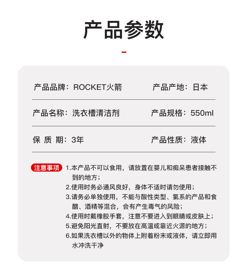 일본 수입 로켓 가정용 세탁기 세척제 550ml/병 얼룩 제거 및 깊은 세척스토어 가기