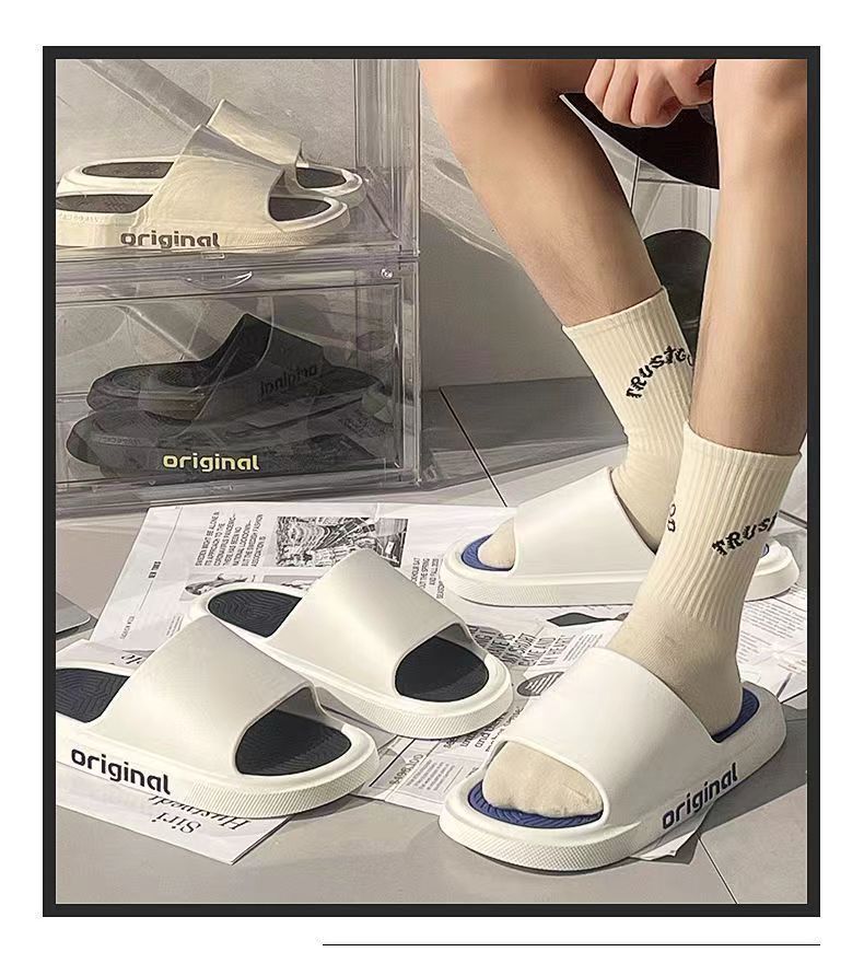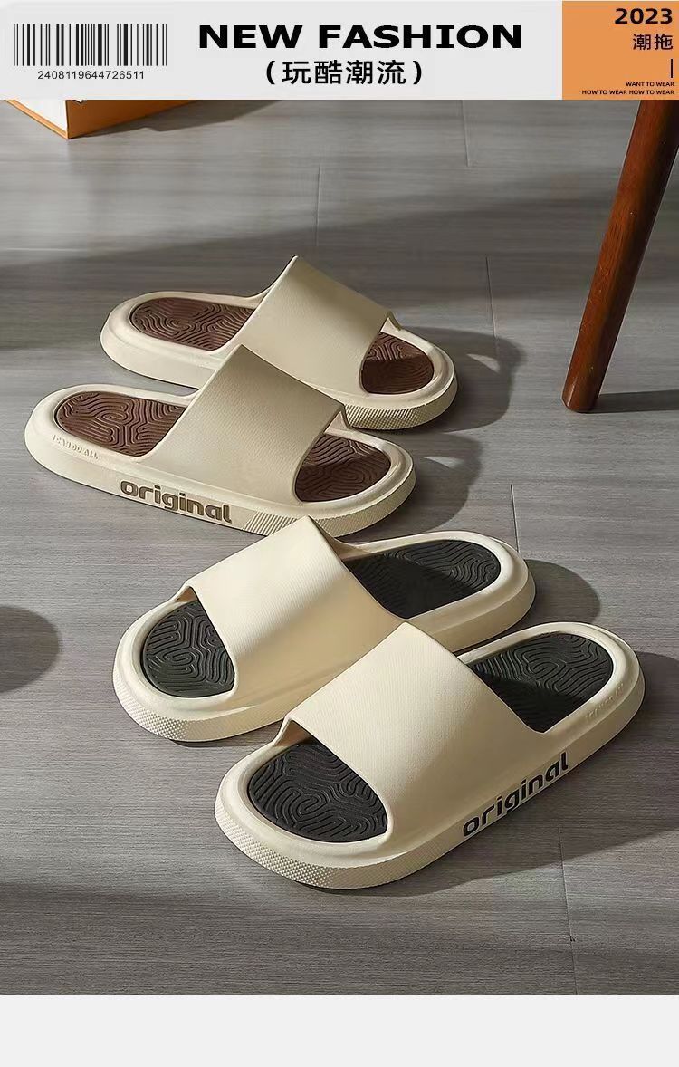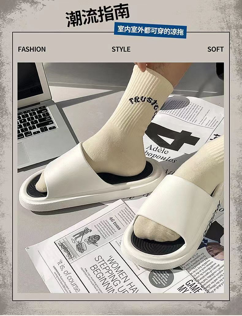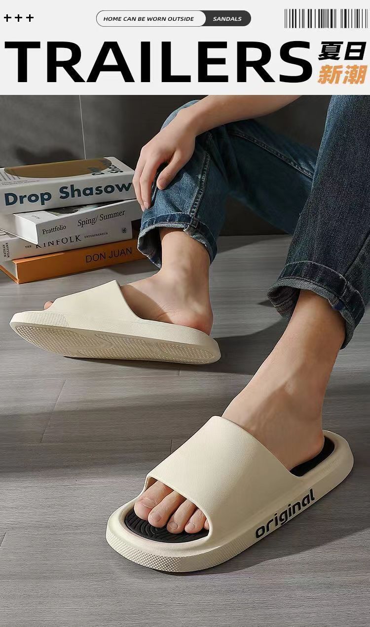 여름 슬립 온 느낌 남성용 슬리퍼 외장 청소년 트렌디 뉴 홈 실내 미끄럼 방지 가정용 두꺼운 샌들과 슬리퍼