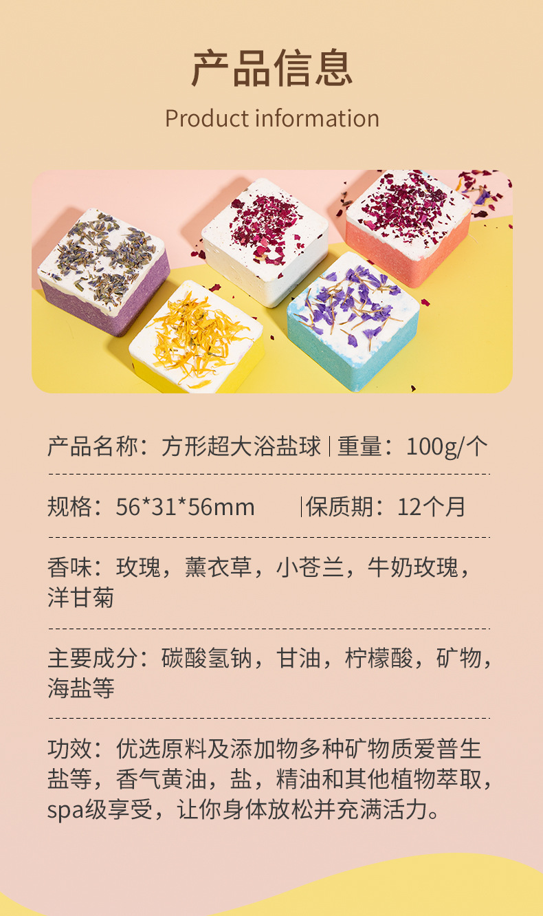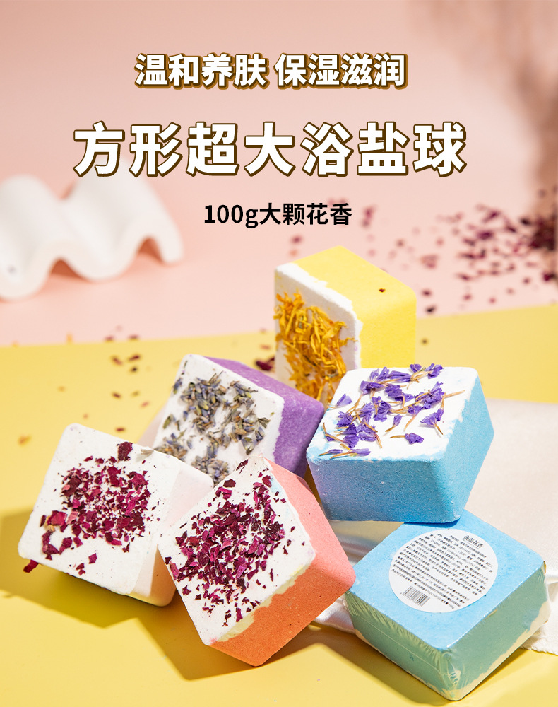 사각형 폭발성 드라이플라워 입욕제 100g, 싱글팩 에센셜 오일 입욕제, 욕조용 바다소금 입욕제스토어 가기