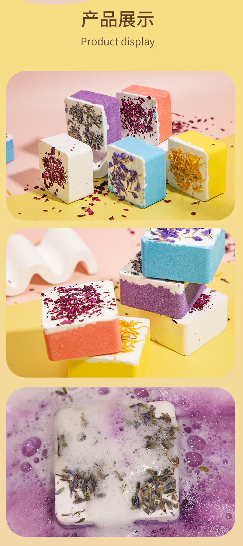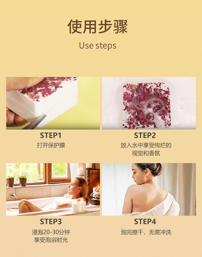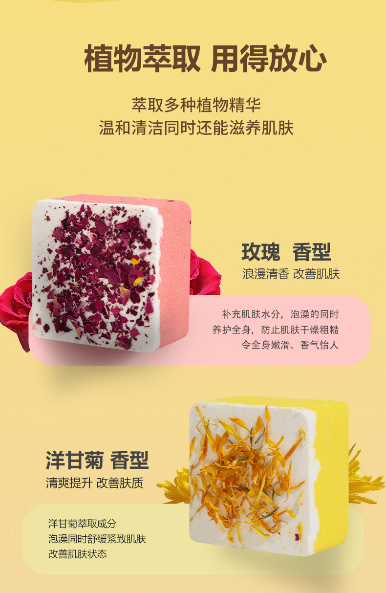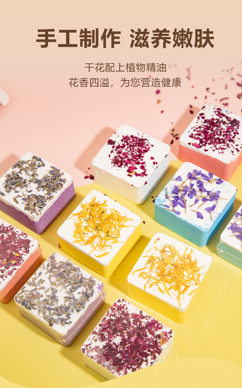 사각형 폭발성 드라이플라워 입욕제 100g, 싱글팩 에센셜 오일 입욕제, 욕조용 바다소금 입욕제