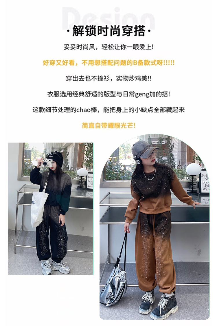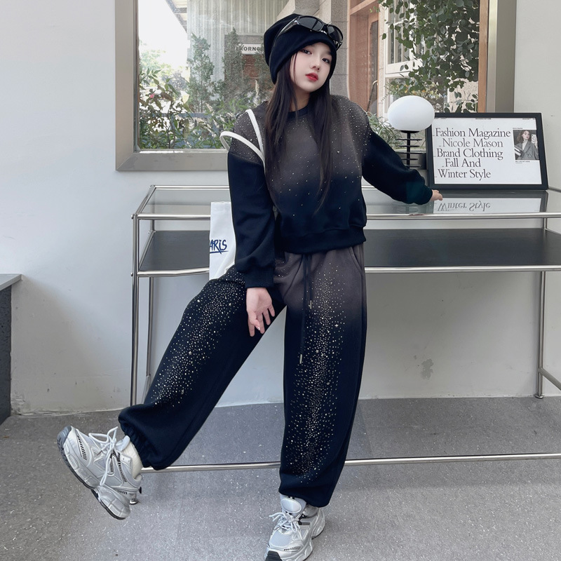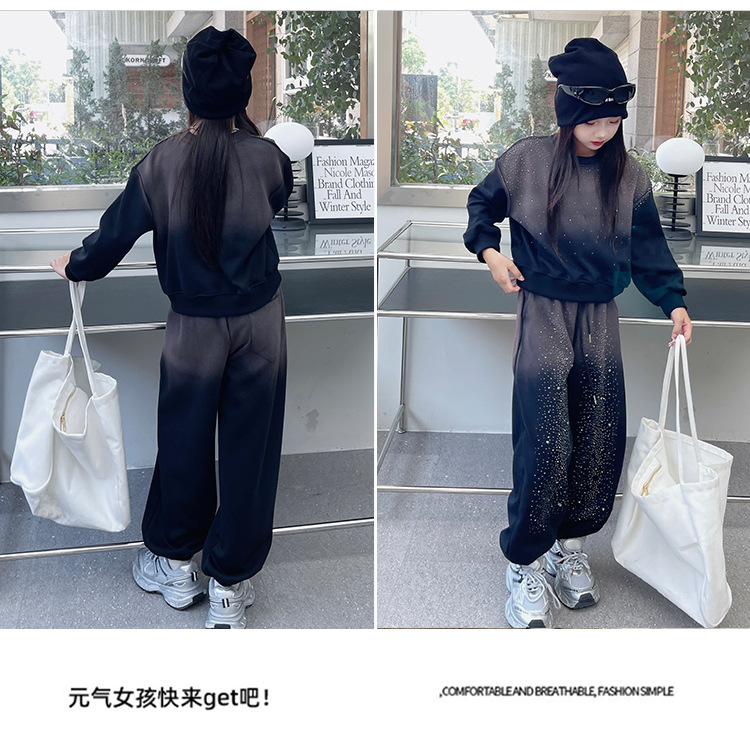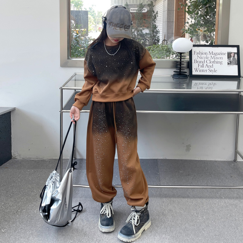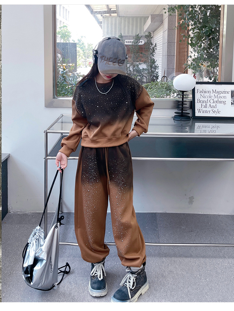 여아용 염색 및 다이아몬드 장식 니트 세트 2026 가을 신상 트렌디하고 스타일리쉬한 아동 스트리트 스타일 스웨트셔츠 투피스 세트스토어 가기