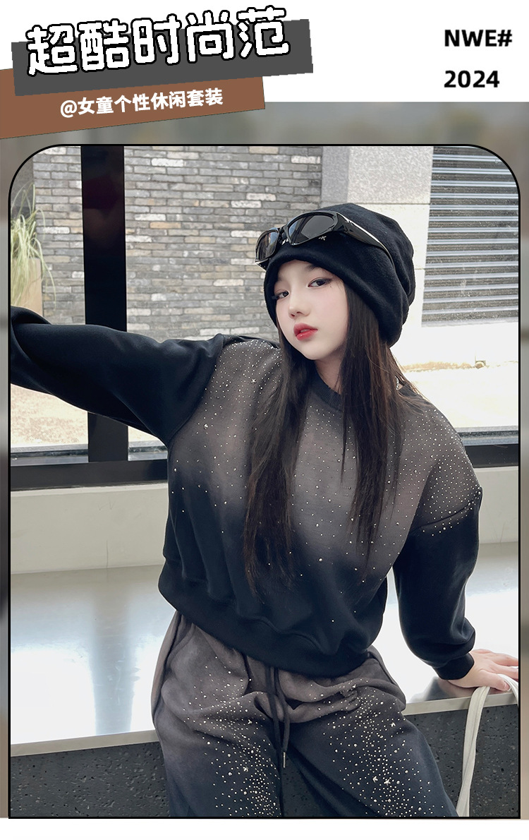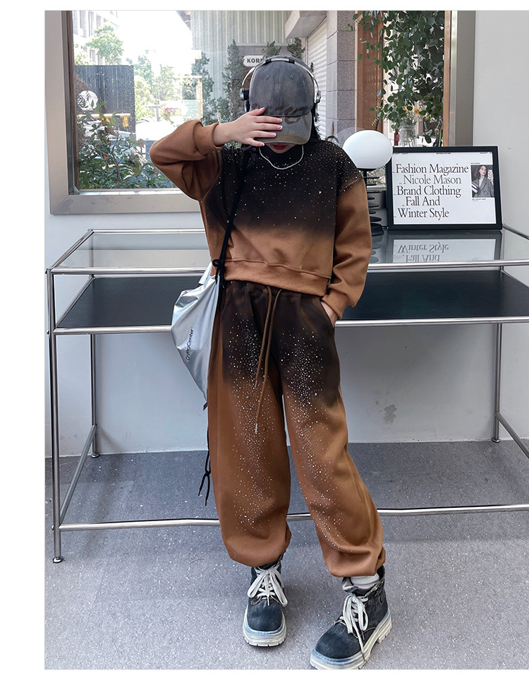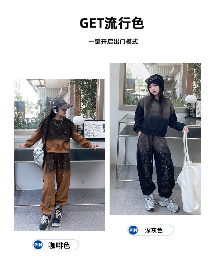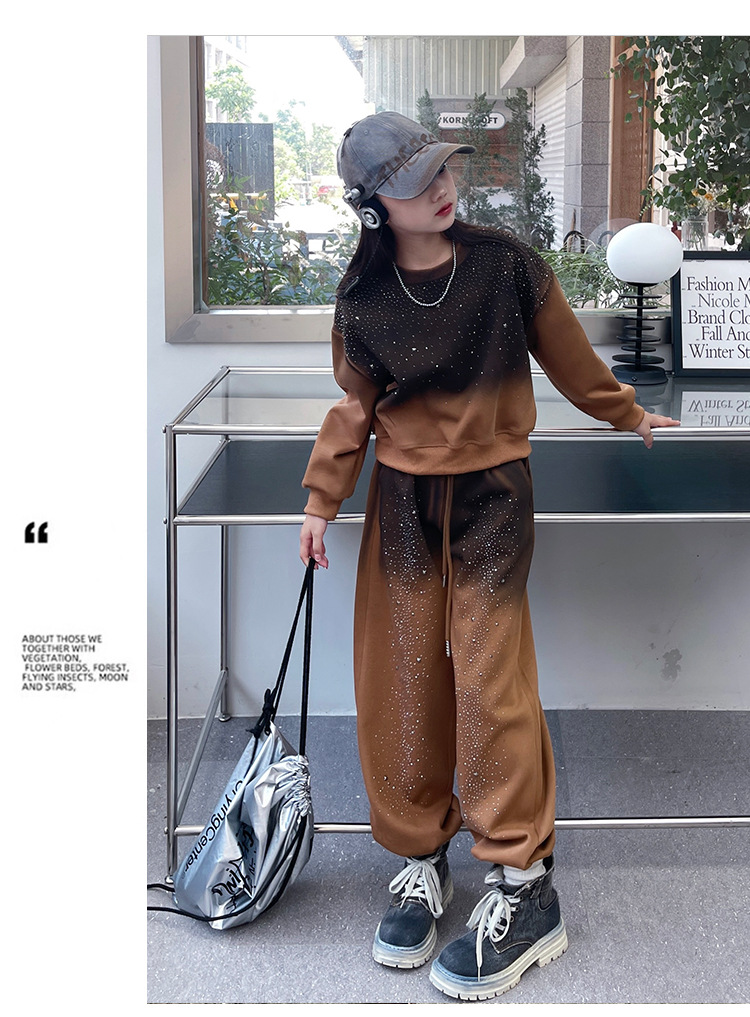 여아용 염색 및 다이아몬드 장식 니트 세트 2026 가을 신상 트렌디하고 스타일리쉬한 아동 스트리트 스타일 스웨트셔츠 투피스 세트스토어 가기