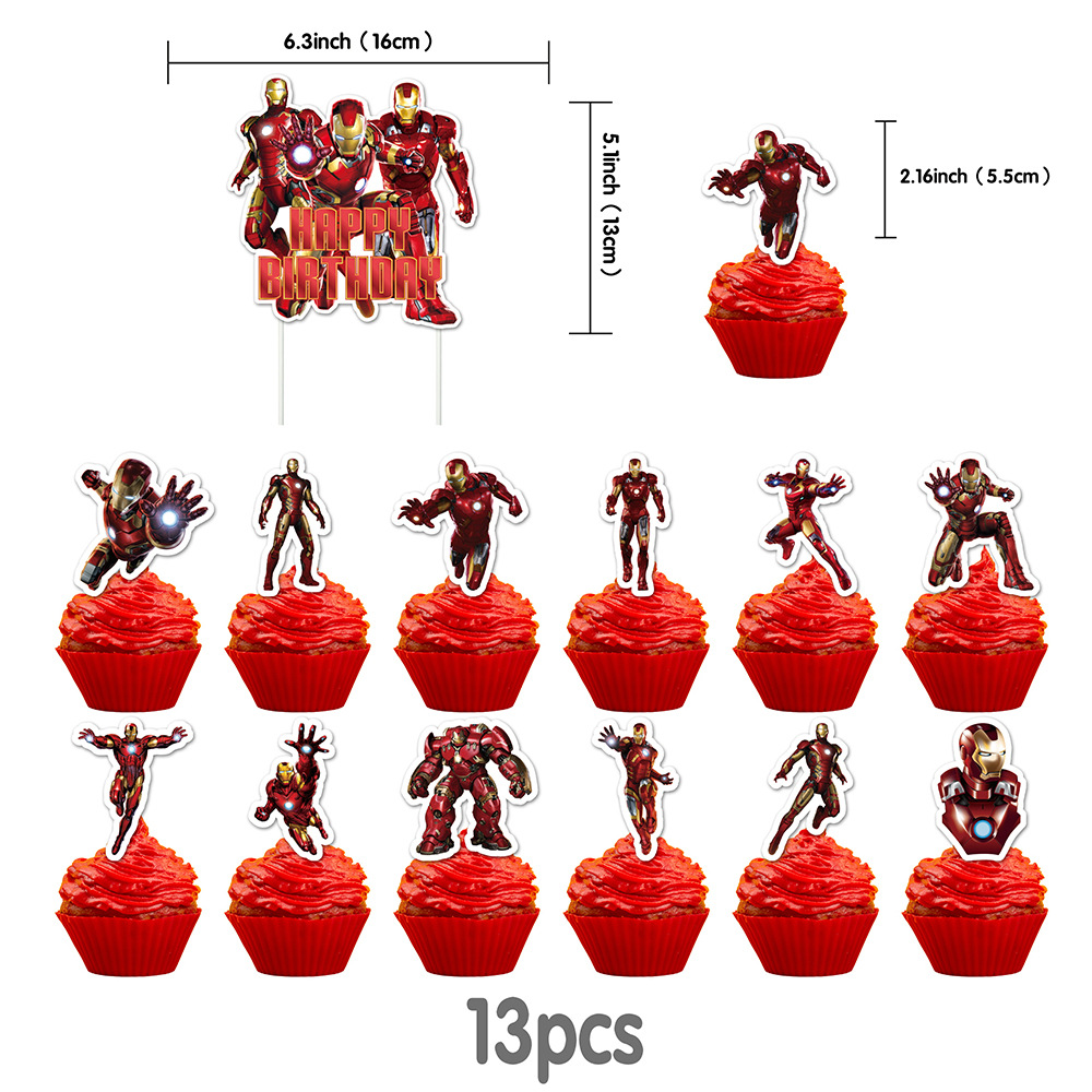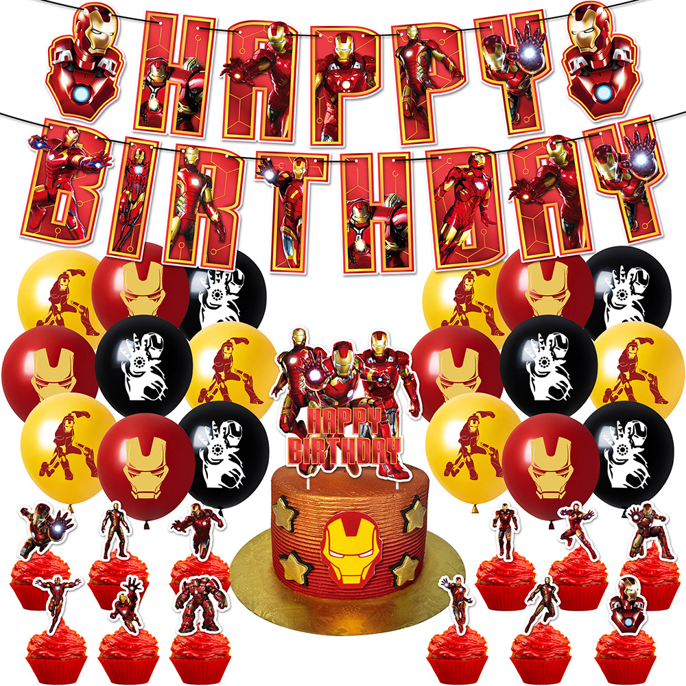 아이언 맨 축하 생일 파티 장면 장식 용품 국기 케이크 깃발 풍선 세트 새로운 아마존스토어 가기
