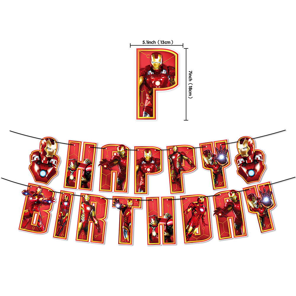 아이언 맨 축하 생일 파티 장면 장식 용품 국기 케이크 깃발 풍선 세트 새로운 아마존