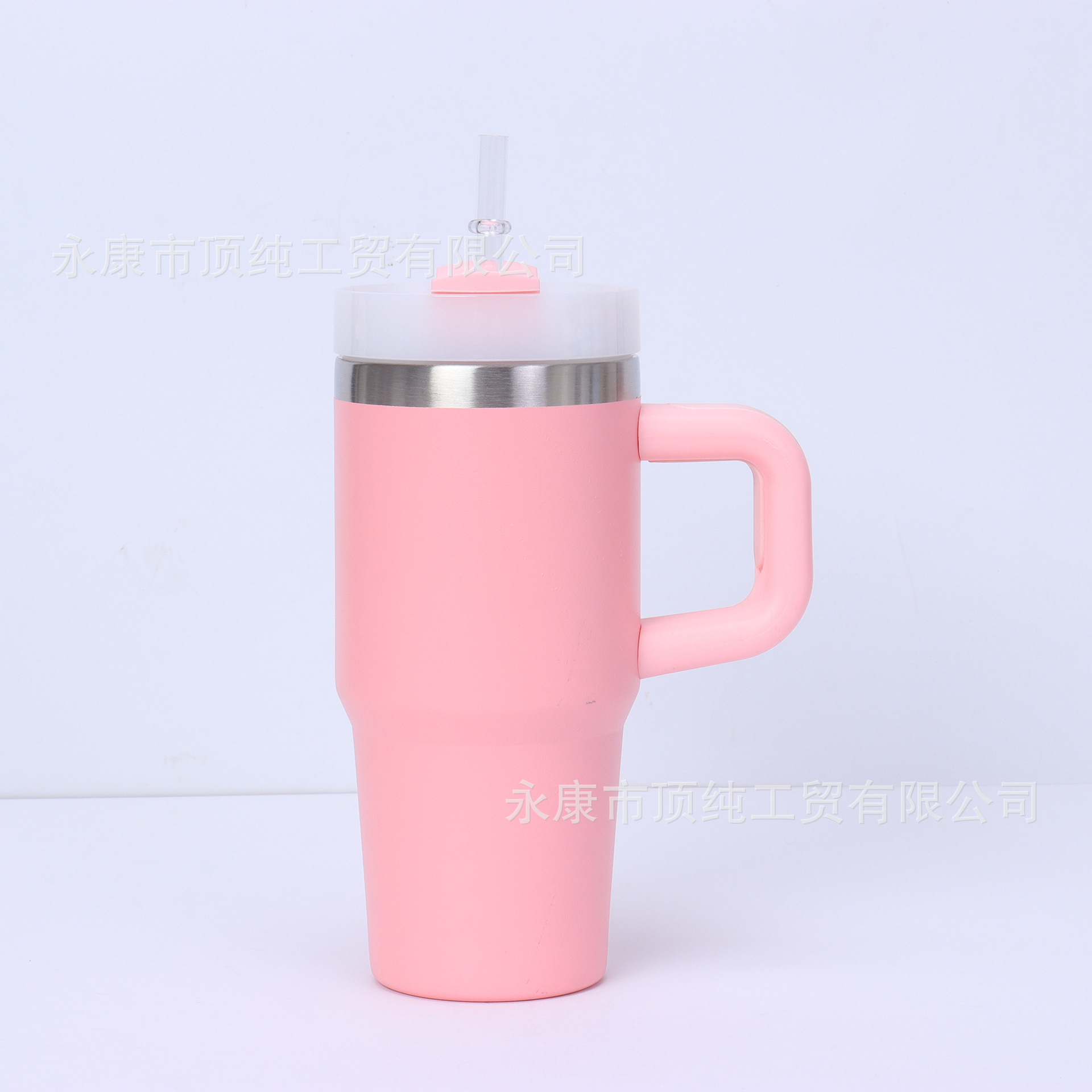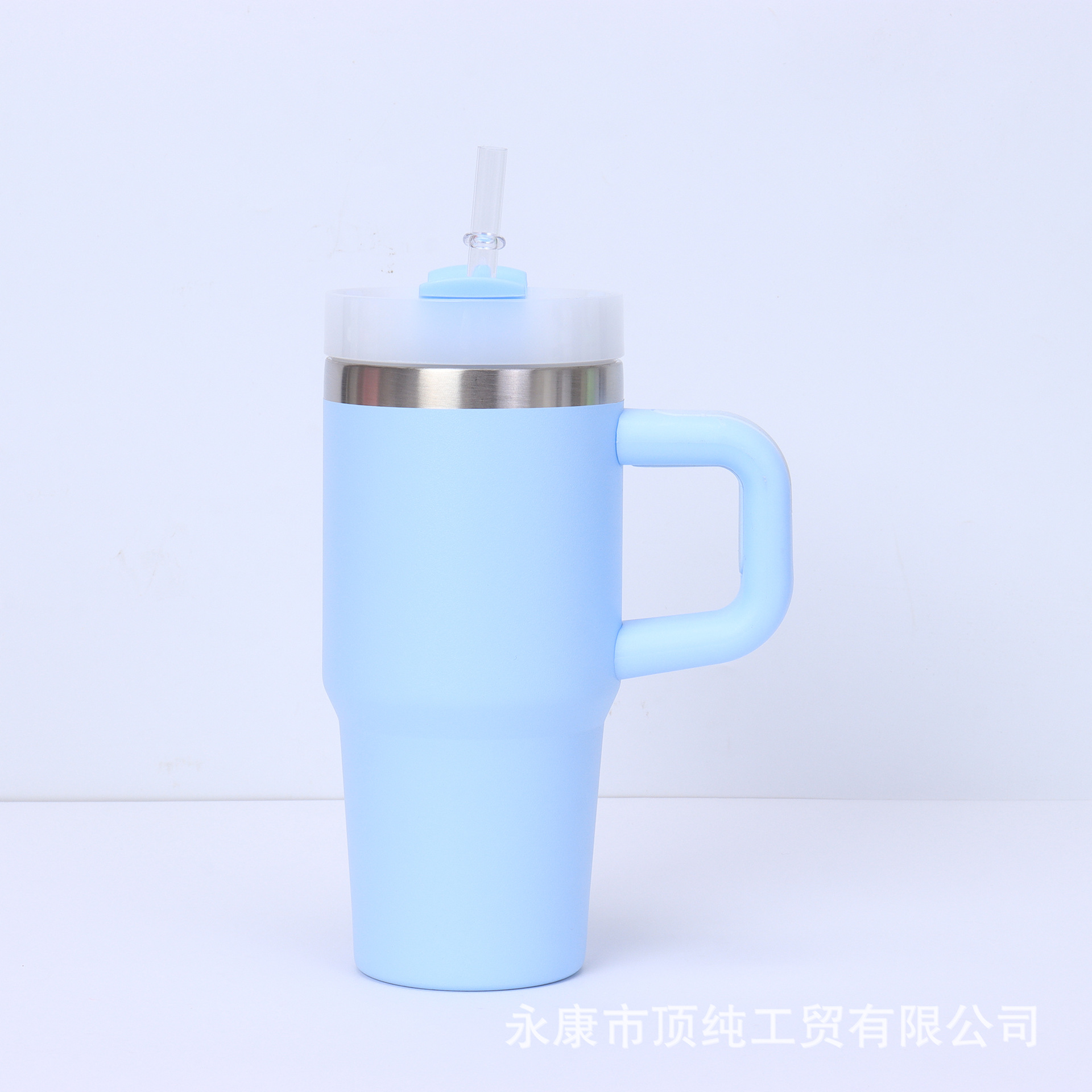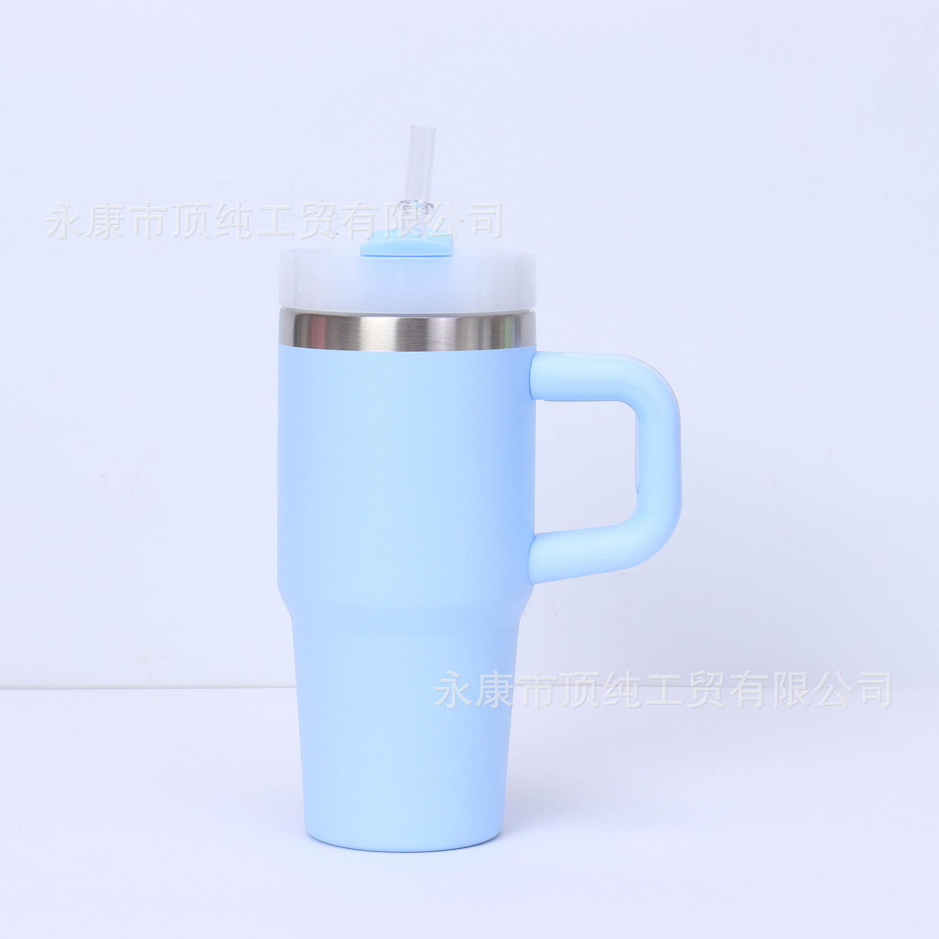 14온스 2세대 핸들 자동차 컵 304 스테인레스 스틸 진공 단열 콜드 컵 휴대용 자동차 빨대 아이스 컵