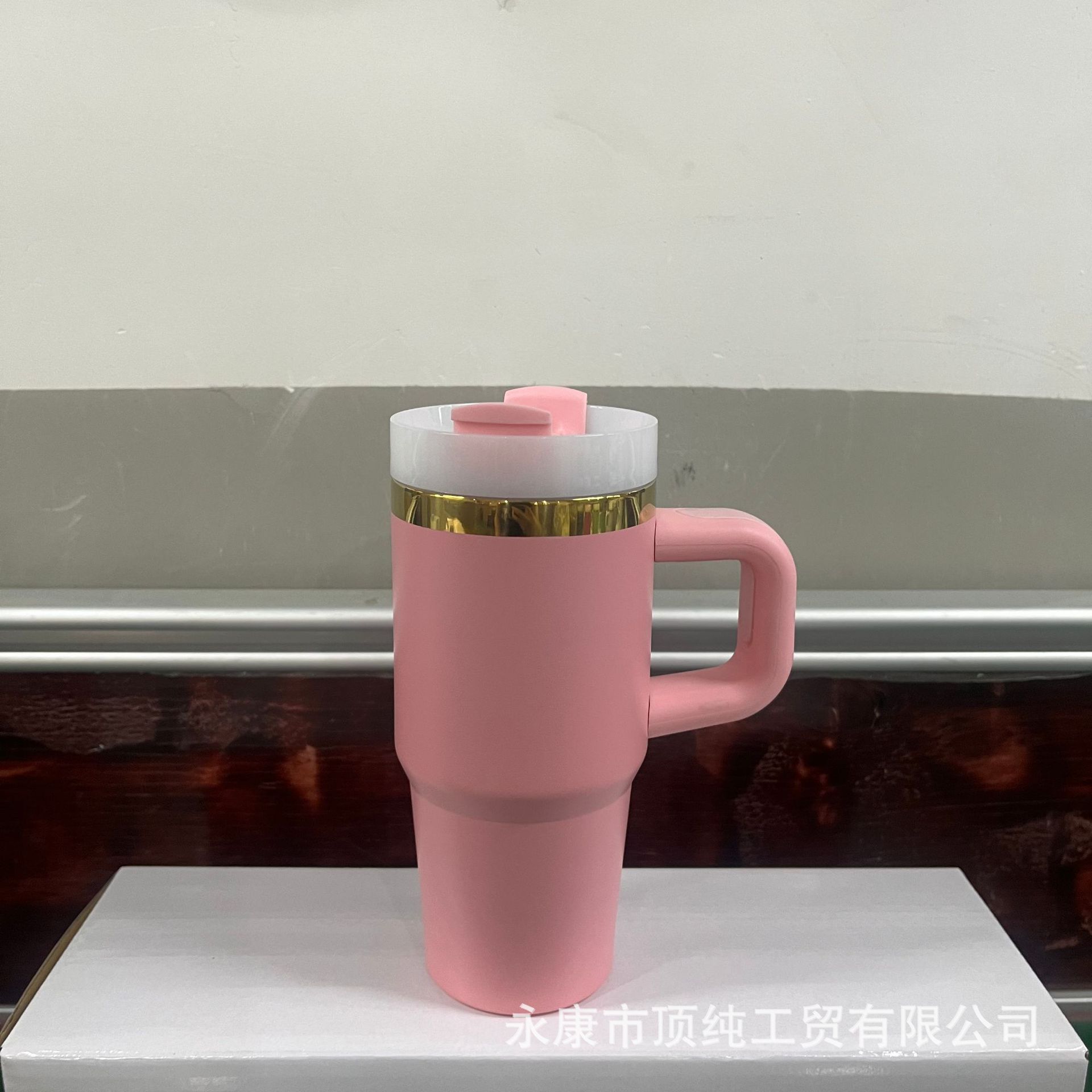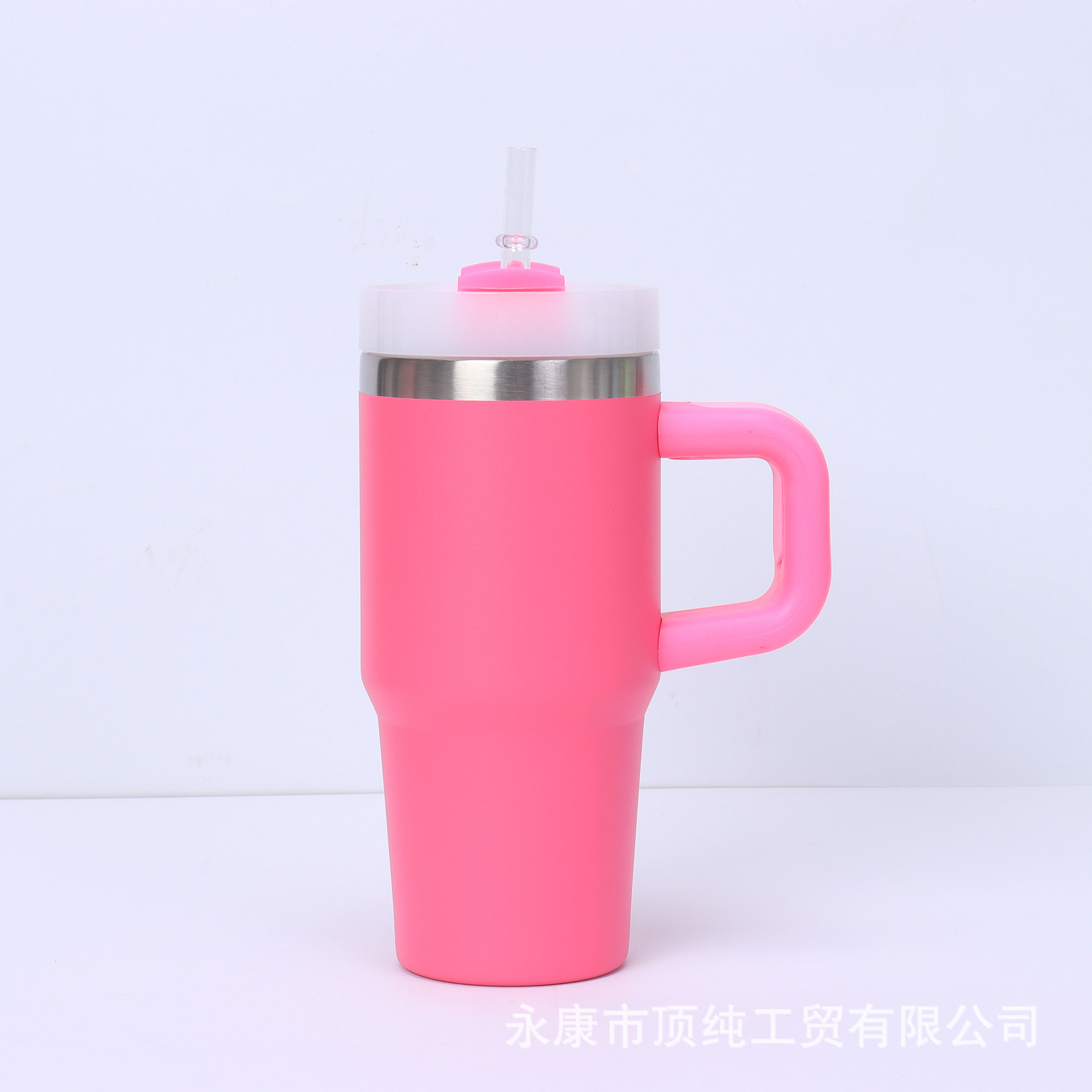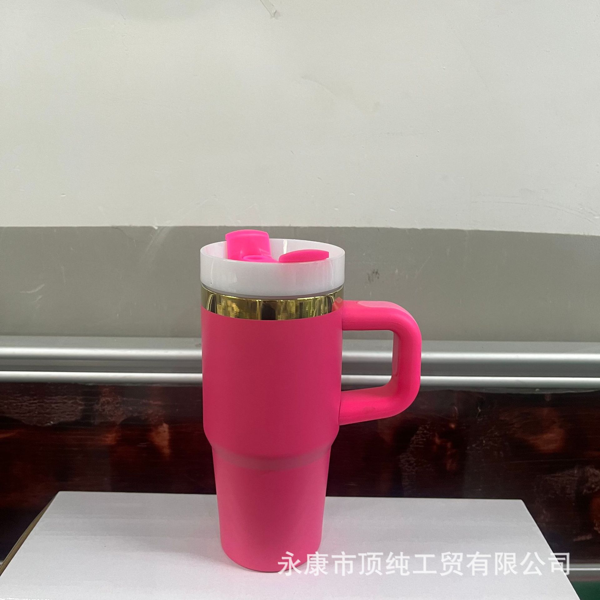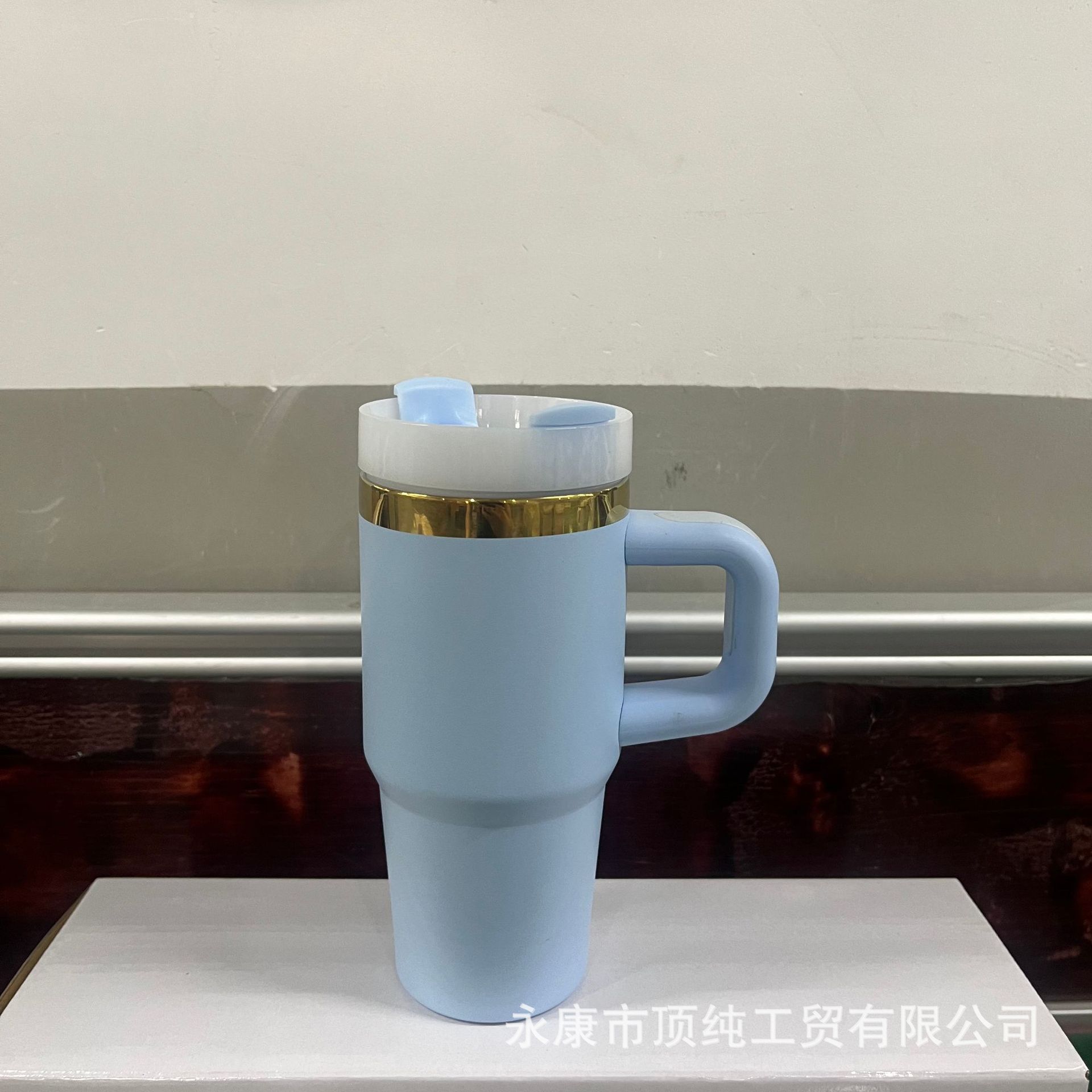 14온스 2세대 핸들 자동차 컵 304 스테인레스 스틸 진공 단열 콜드 컵 휴대용 자동차 빨대 아이스 컵