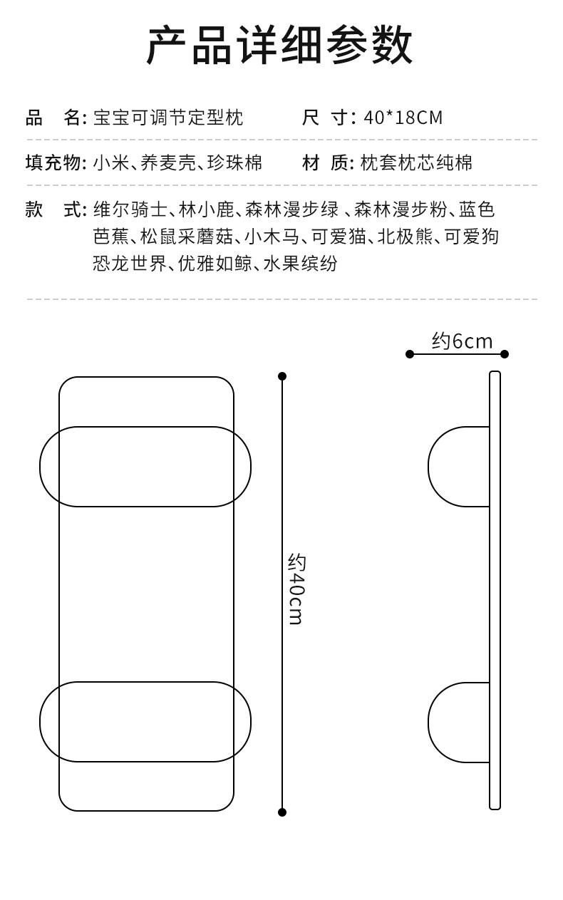 아기 음영 베개 기장 베개 아기 교정 편차 방지 머리 메밀 어린이 수정 신생아 음영 머리 유형 측면 수면