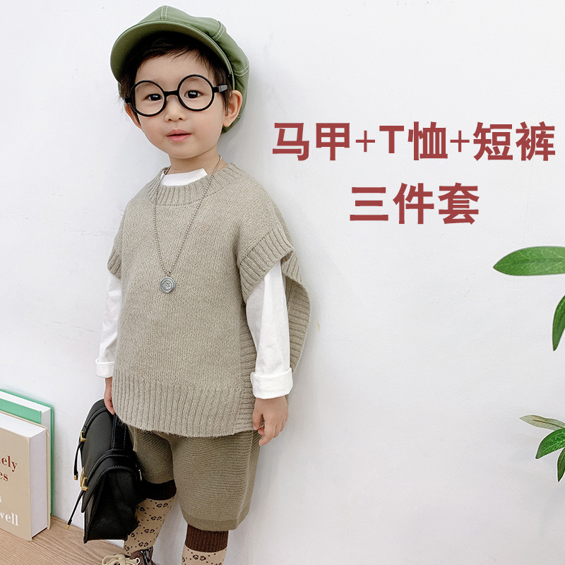 소년 아기 조끼 2024 가을 새 한국 스타일 허리 코트 복고풍 양모 니트웨어 조끼 소녀 세트