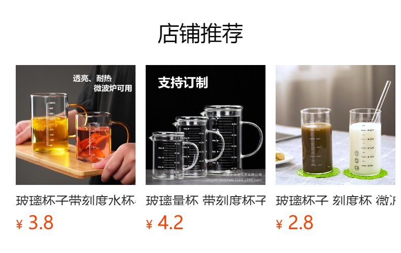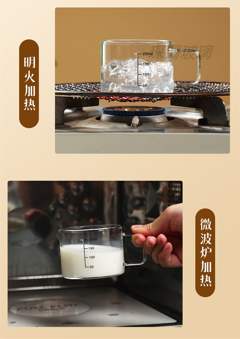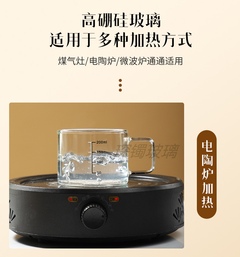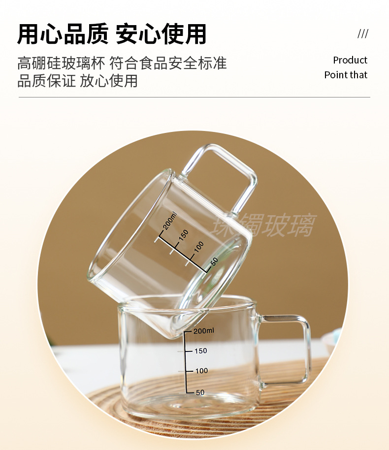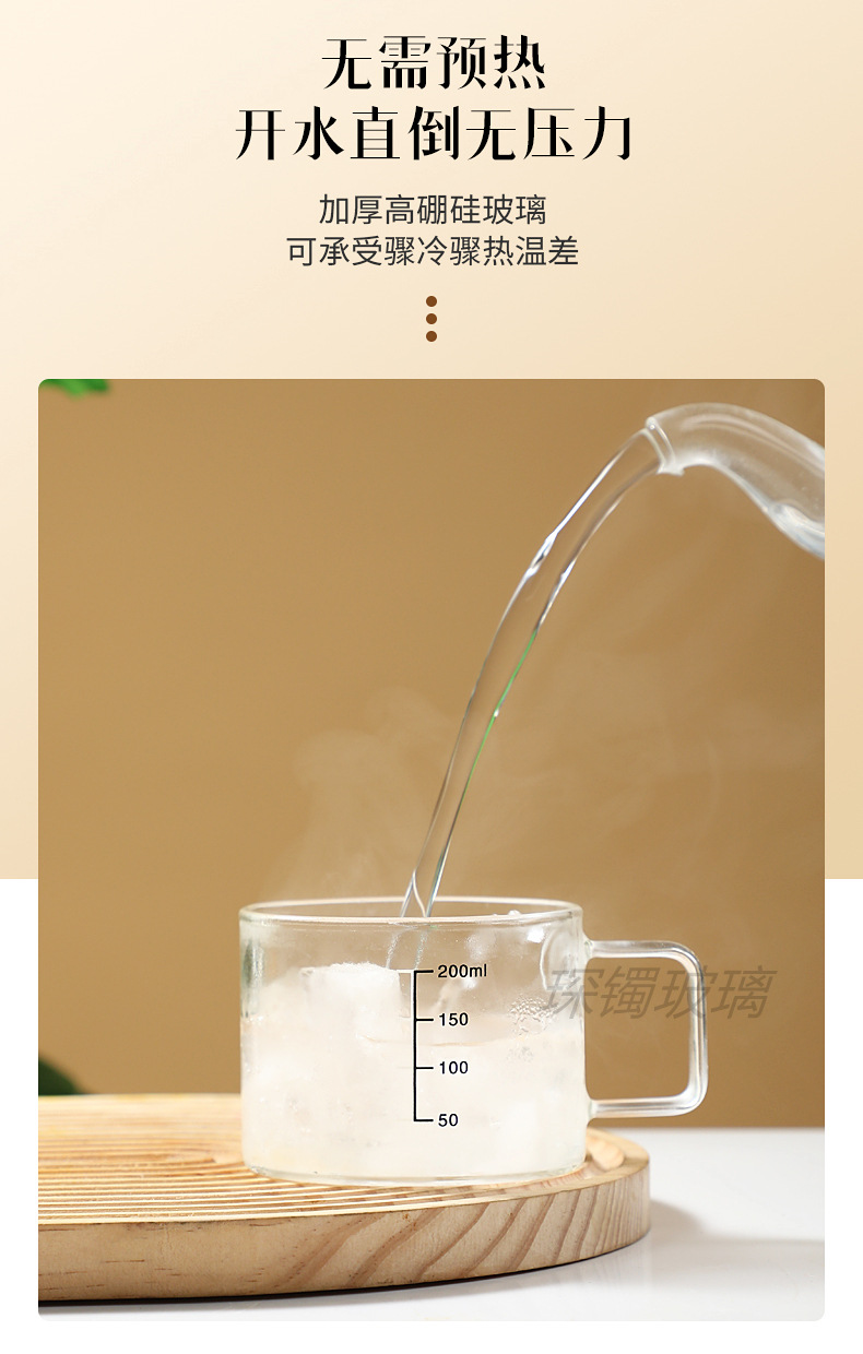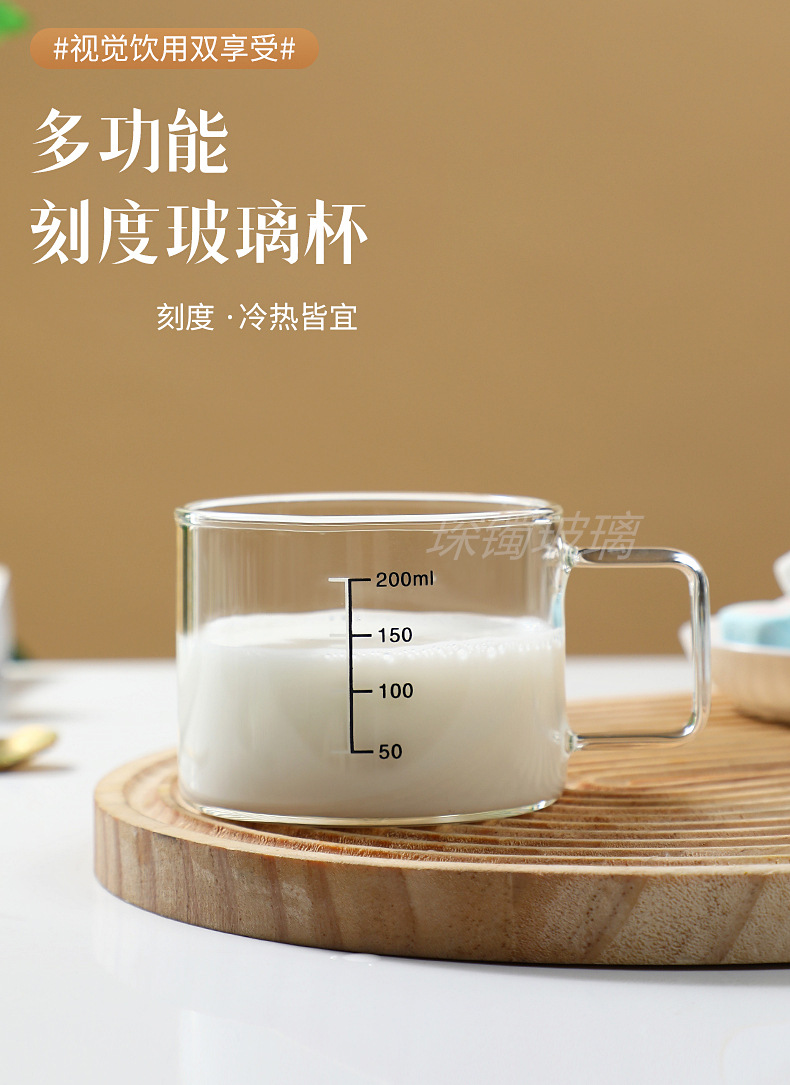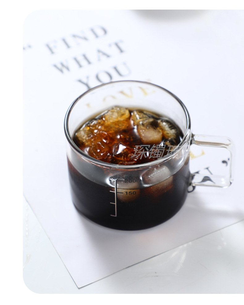 유리 컵 우유 컵 커피 컵 두꺼운 고온 저항하는 투명한 물 컵 손잡이와 숟가락을 가진 가정용 물 컵스토어 가기