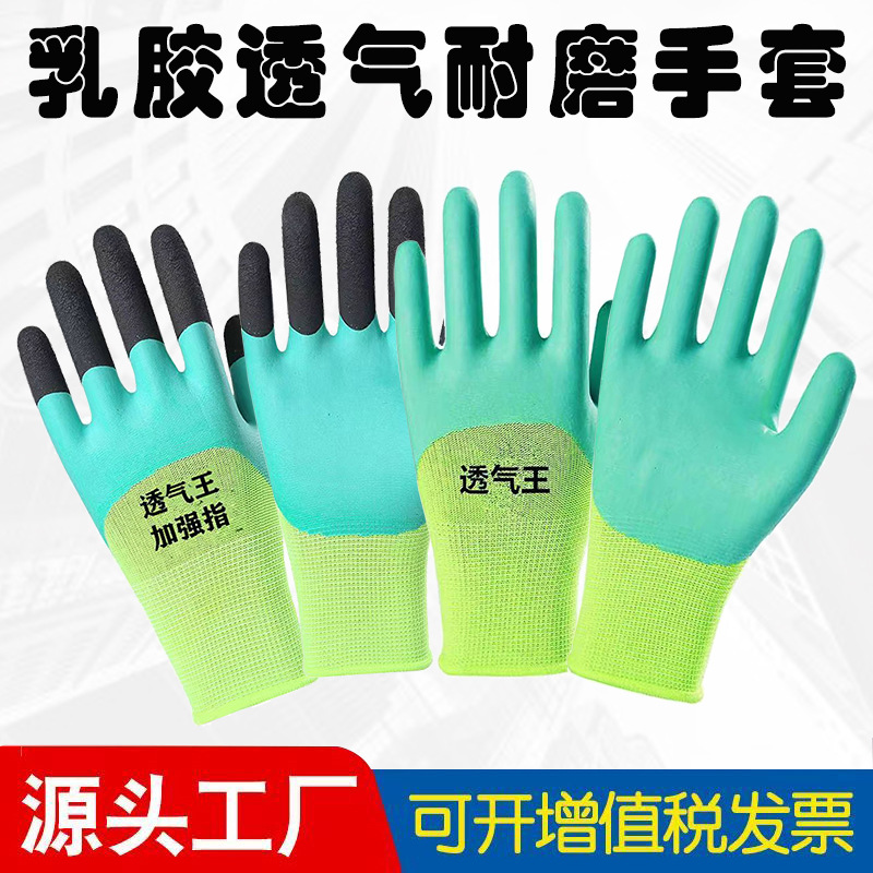 통기성 킹 장갑 노동 보호 연약한 내마모성 강화 손가락 녹색 거품 라텍스 노동자 내유성 교수형 접착제 두부 장갑