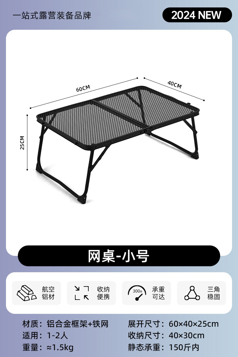 • 작고 가벼운 접이식 알루미늄 합금 철망 테이블 [조정 없음]