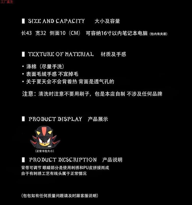 소닉 스쿨백 홈 메이드 캠퍼스 올 매치 섀도우 블랙 플러시 니쉬 백팩 커플 학생 여행 스쿨백스토어 가기