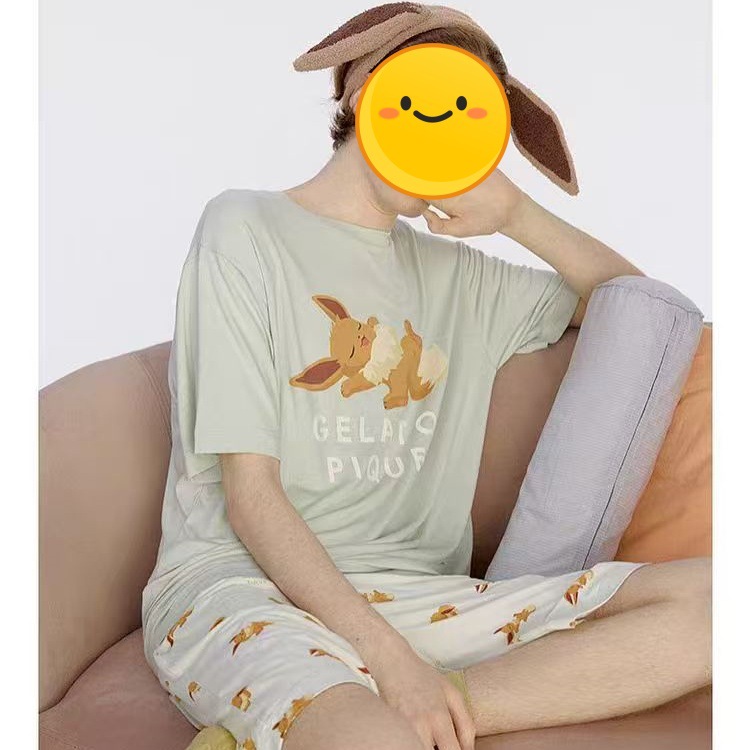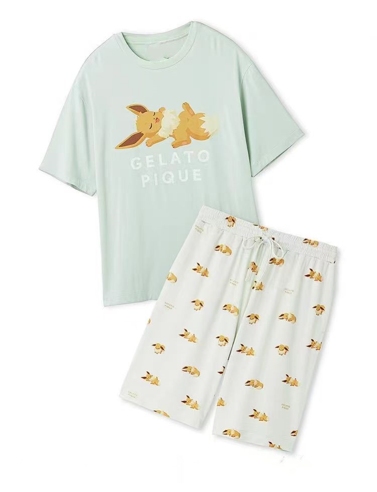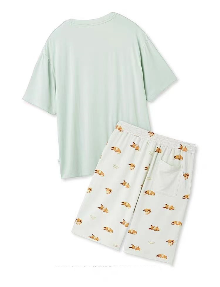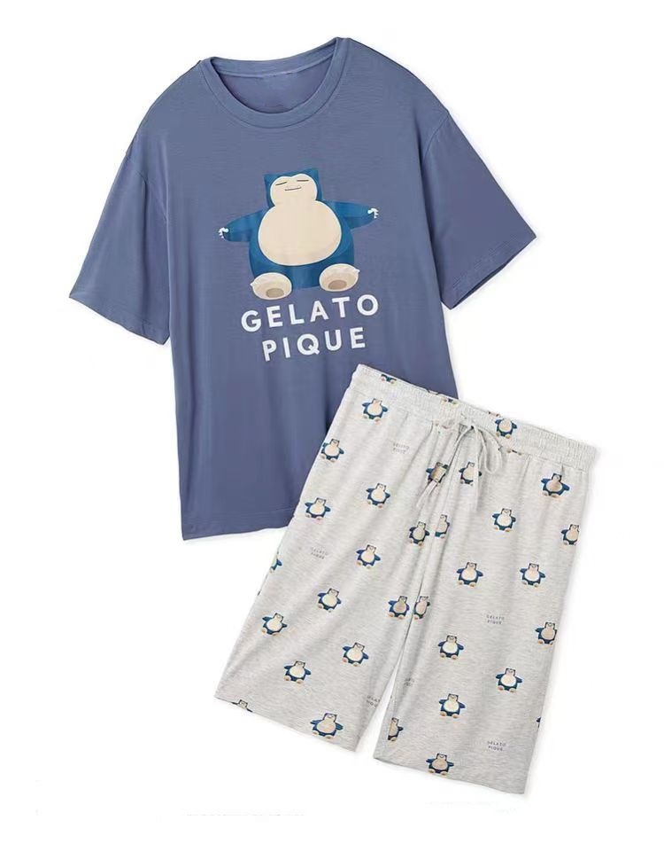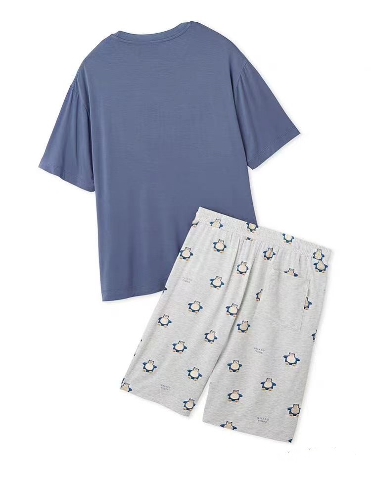 남성용 홈웨어 여름 만화 프린트 잠옷, 루즈핏 라운드넥 반팔 티셔츠와 5부 바지 세트, 외출복으로도 활용 가능하고 트렌디합니다.