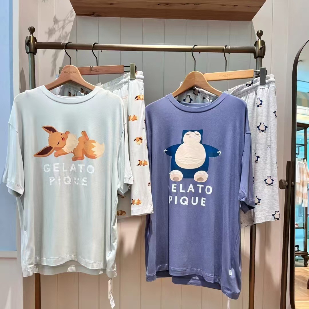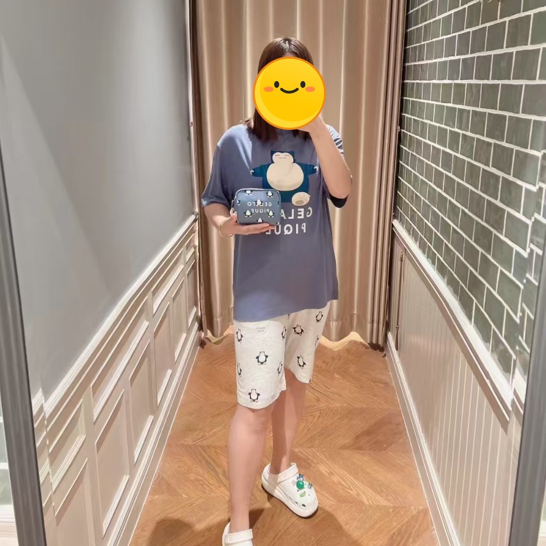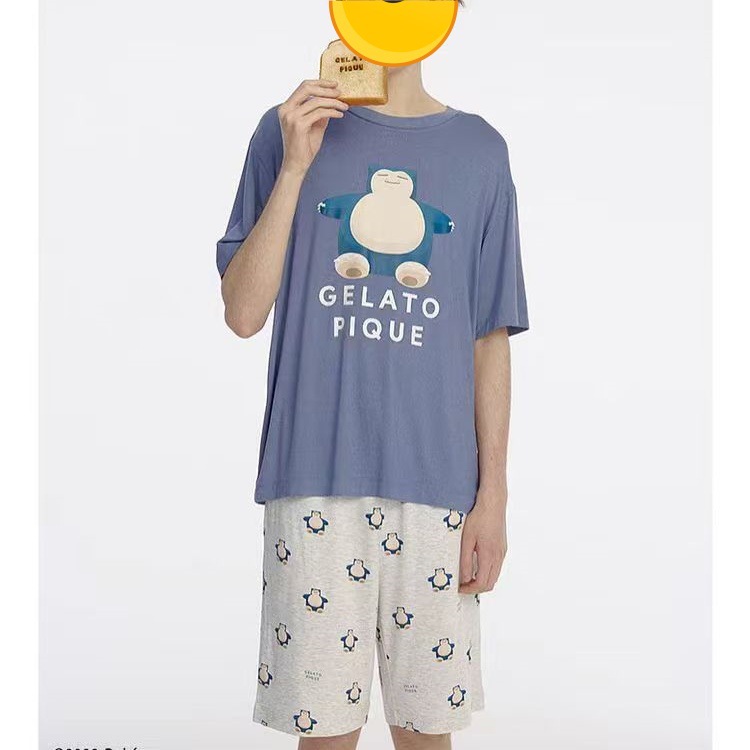 남성용 홈웨어 여름 만화 프린트 잠옷, 루즈핏 라운드넥 반팔 티셔츠와 5부 바지 세트, 외출복으로도 활용 가능하고 트렌디합니다.스토어 가기