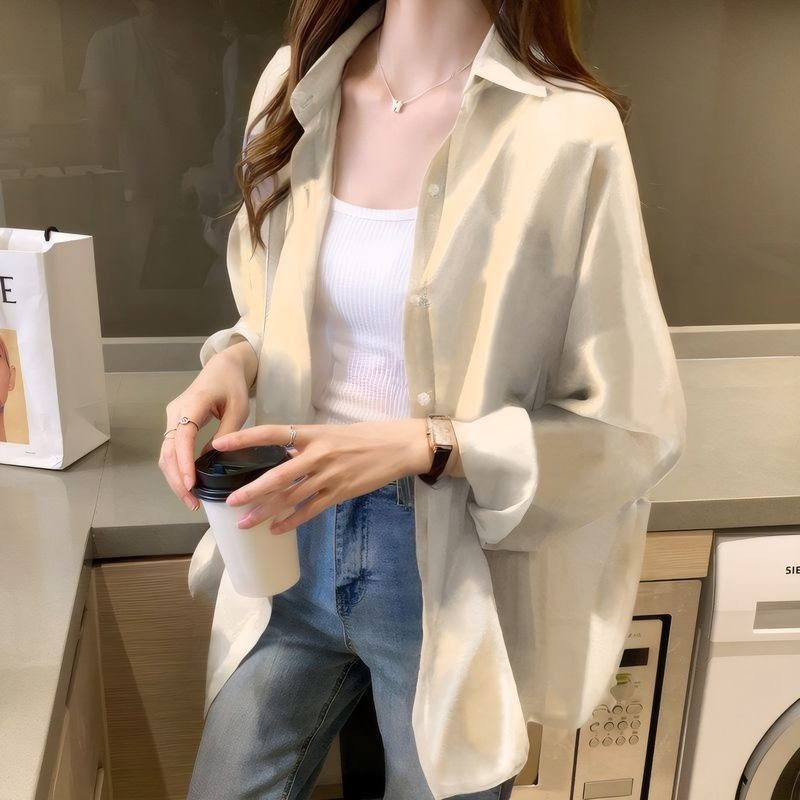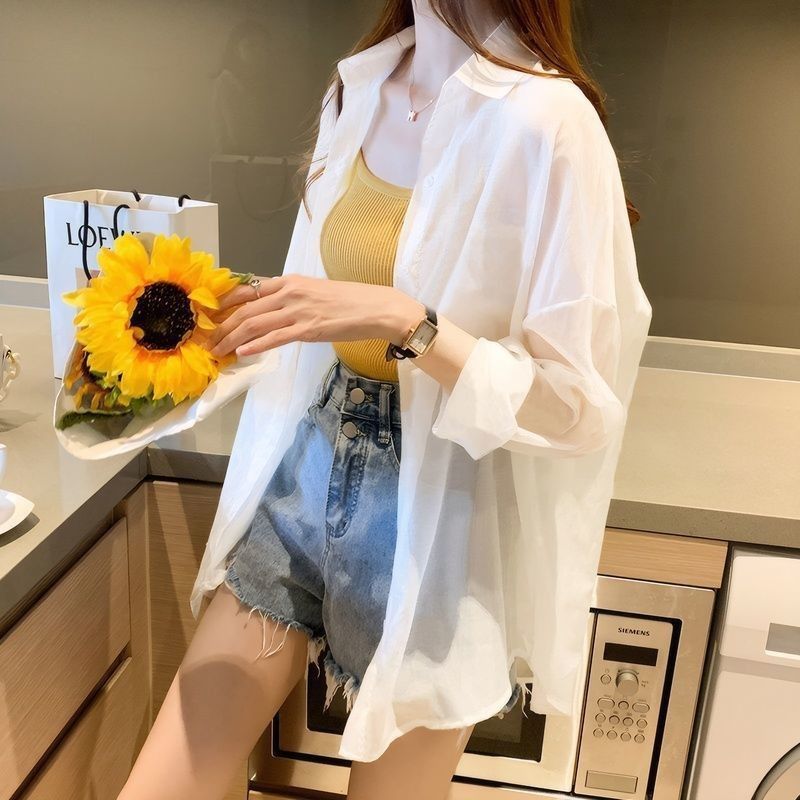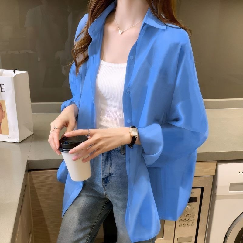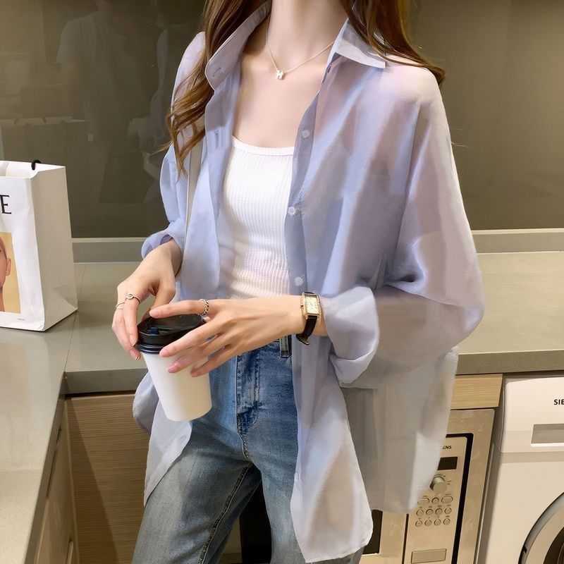 여름 새 스타일 통기성 얇은 쉬폰 카디건 2024 한국 스타일 느슨한 건조 옷 여성 외부 셔츠 패션스토어 가기