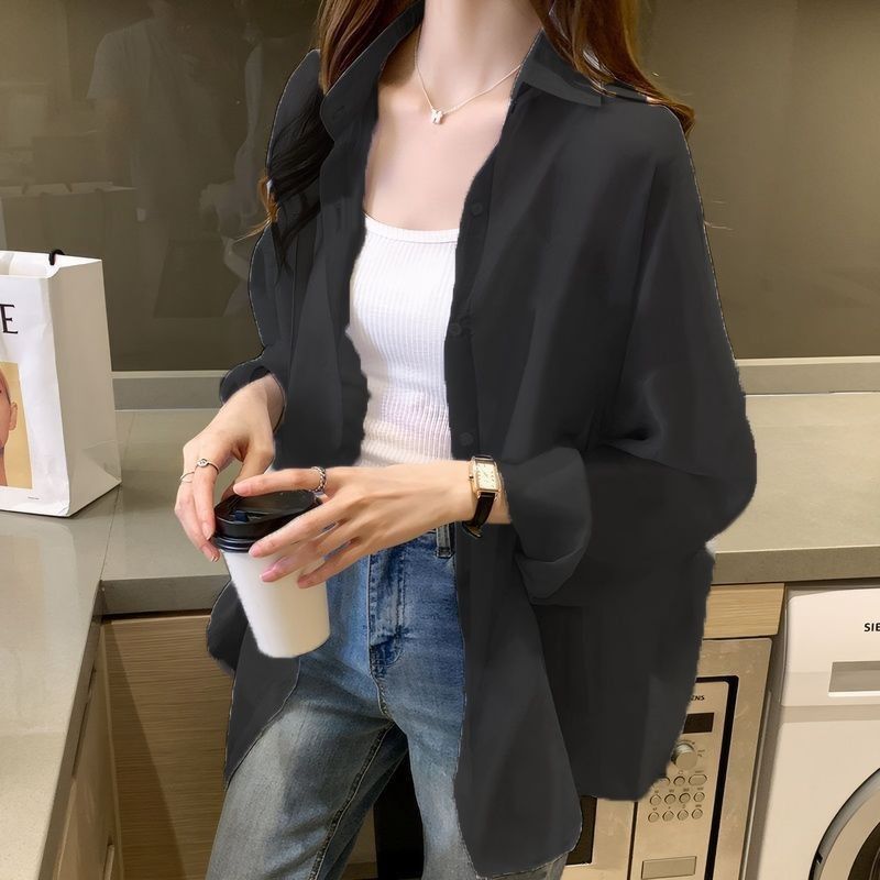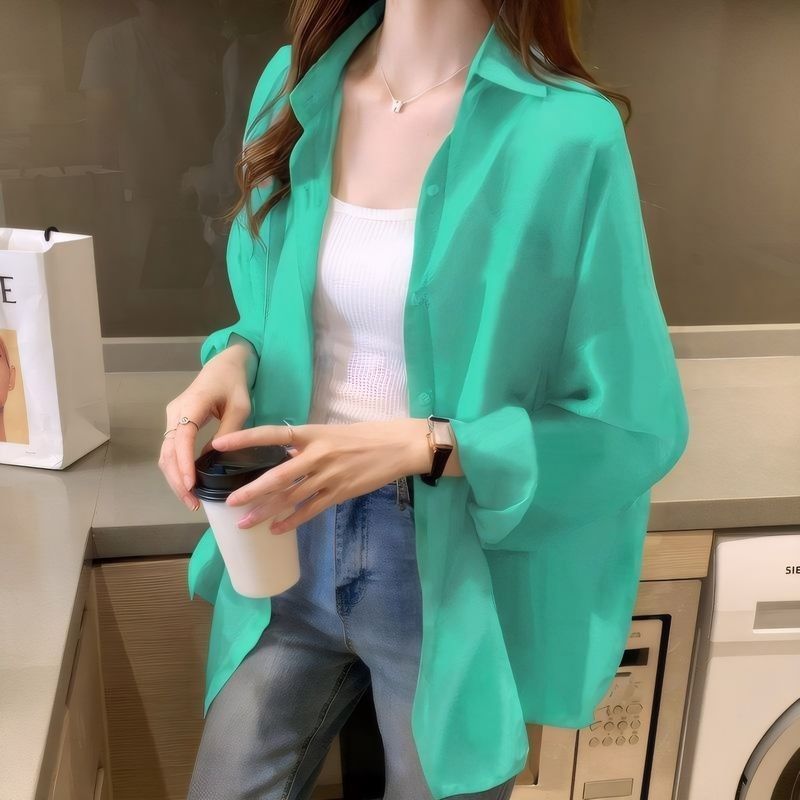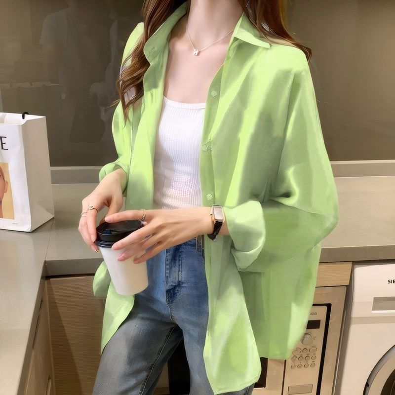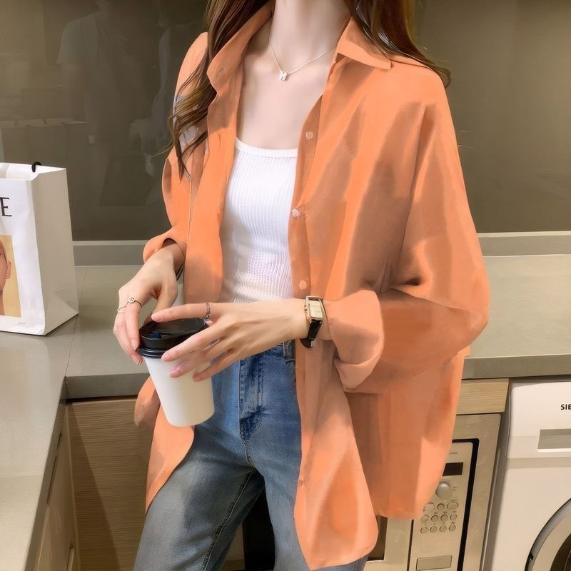여름 새 스타일 통기성 얇은 쉬폰 카디건 2024 한국 스타일 느슨한 건조 옷 여성 외부 셔츠 패션