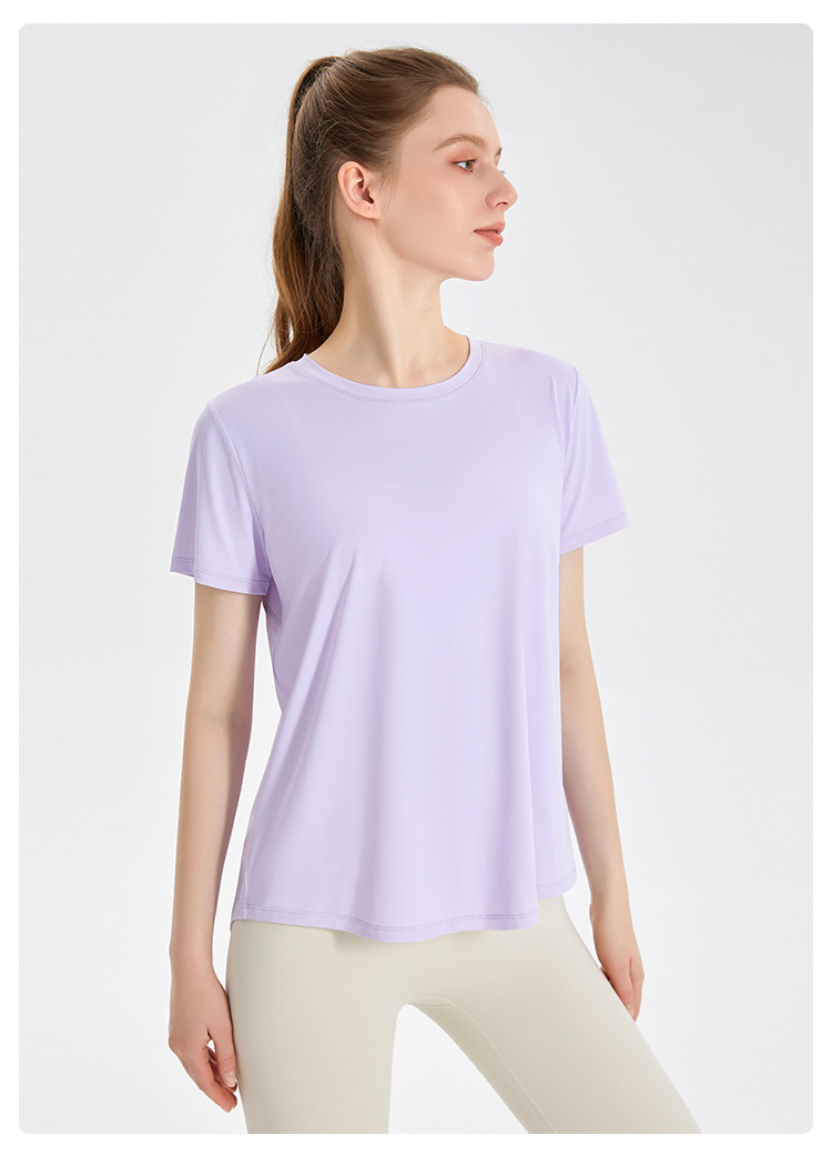 LAHN 요가 착용 반팔 섹시한 여름 백 슬릿 메쉬 통기성 필라테스 트레이닝 피트니스 탑 반팔