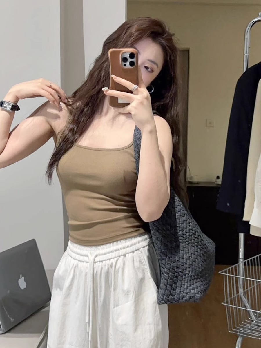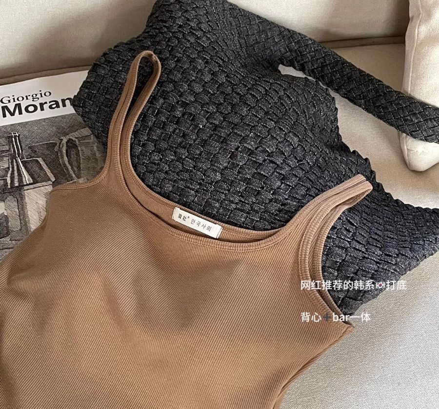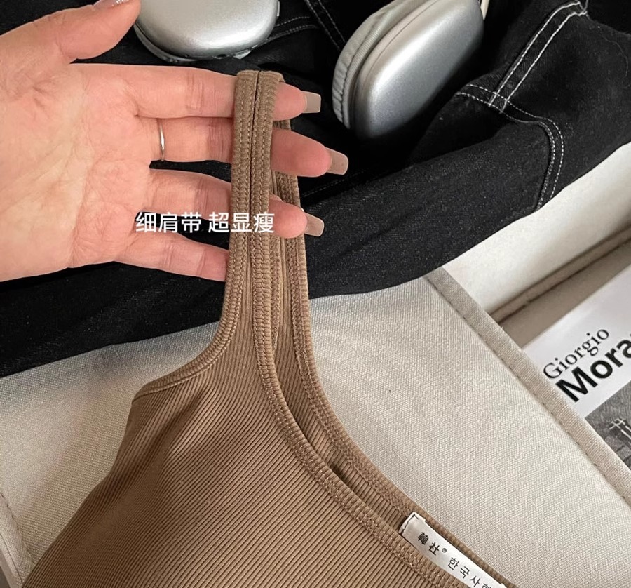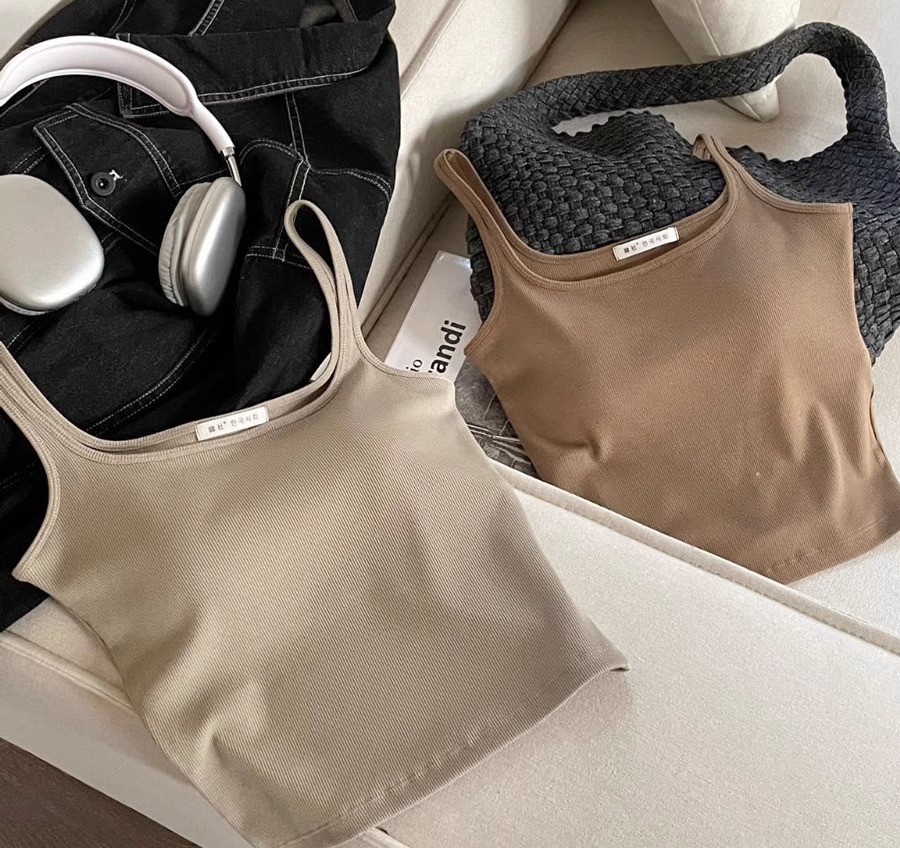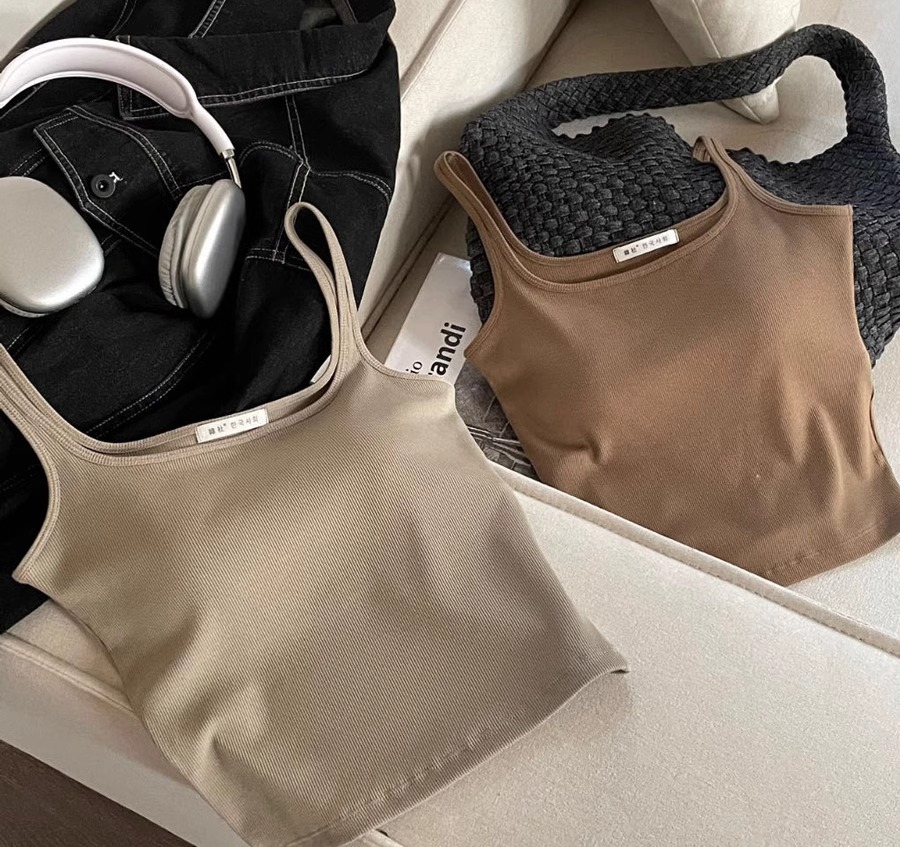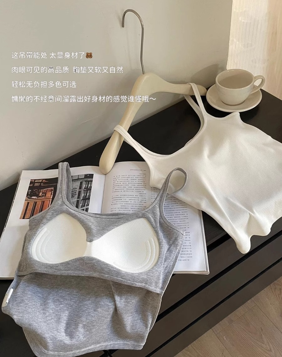 얇은 자급 가슴 패드 카미 솔 조끼 여성 내부 브라 안티 러닝 라이트 언더웨어 베이스를 보여주는 가슴과 허리를 보여주는 스레드 작은 스퀘어 칼라스토어 가기