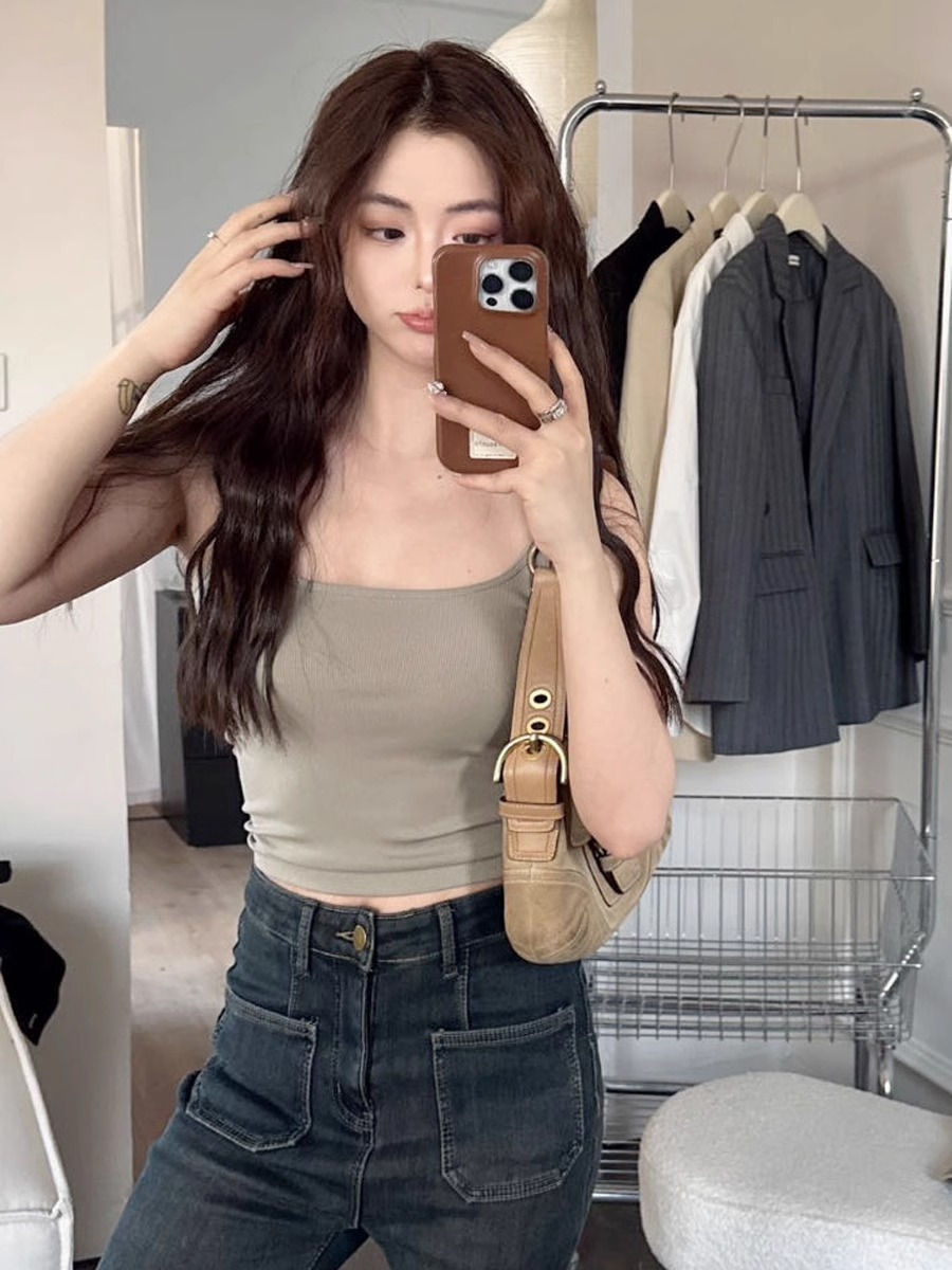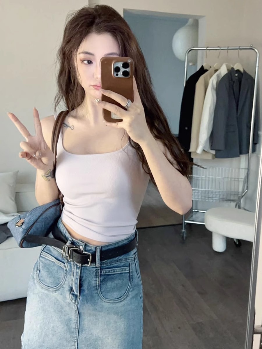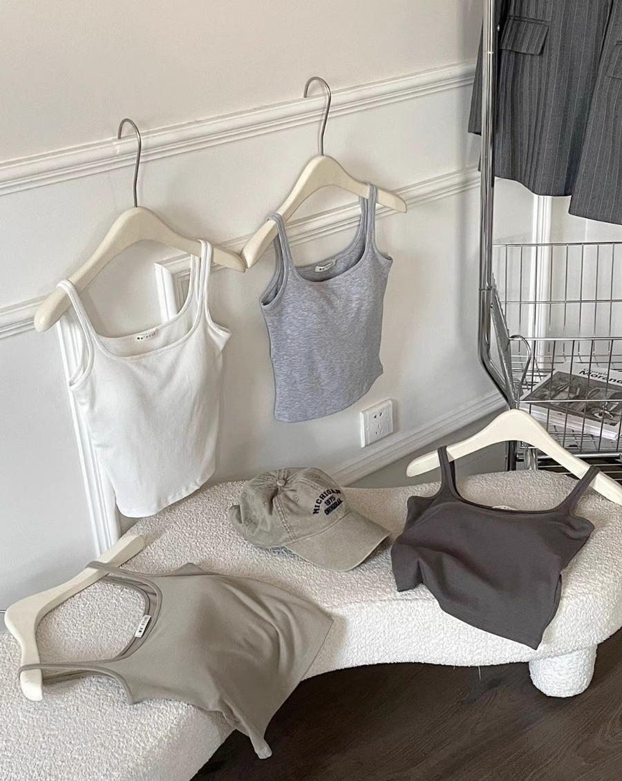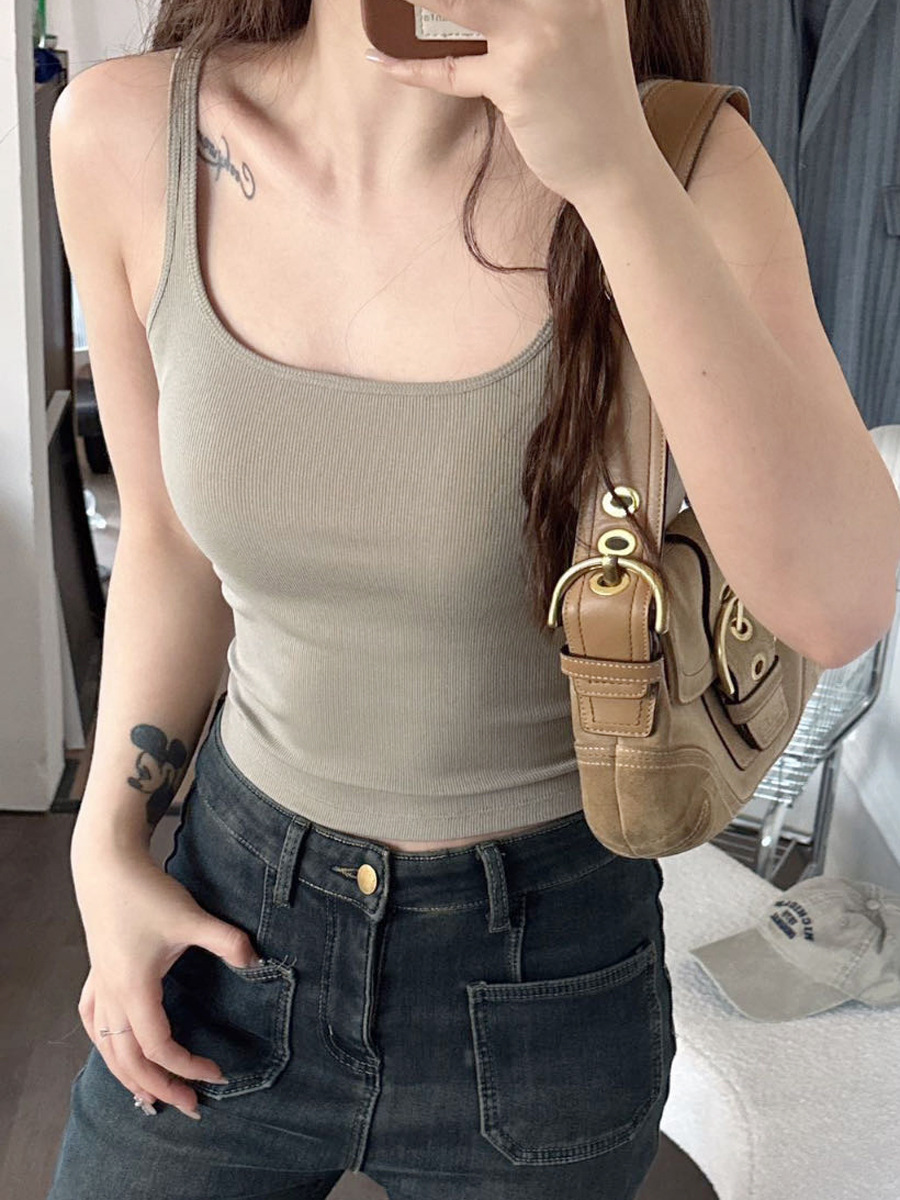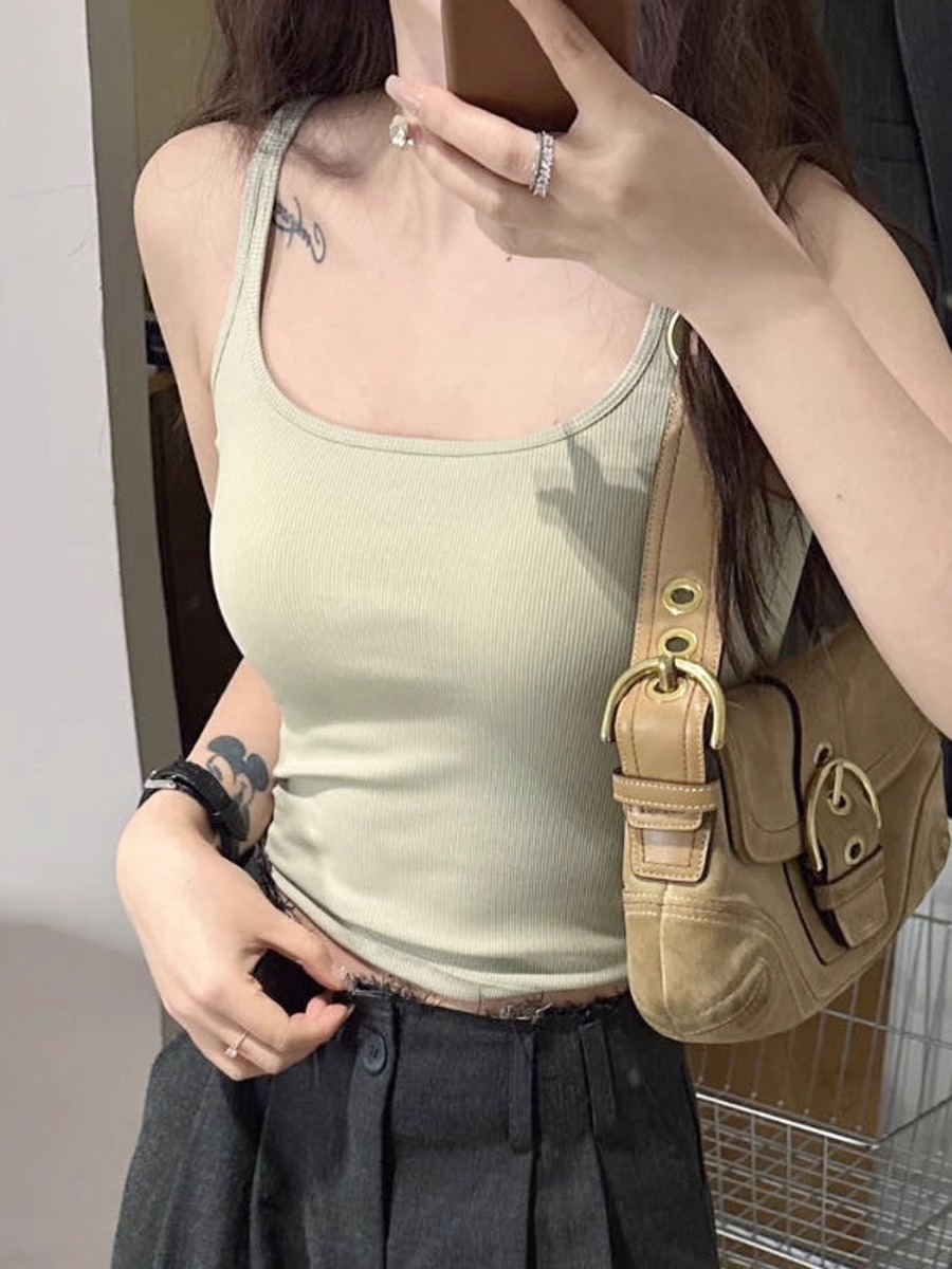 얇은 자급 가슴 패드 카미 솔 조끼 여성 내부 브라 안티 러닝 라이트 언더웨어 베이스를 보여주는 가슴과 허리를 보여주는 스레드 작은 스퀘어 칼라스토어 가기