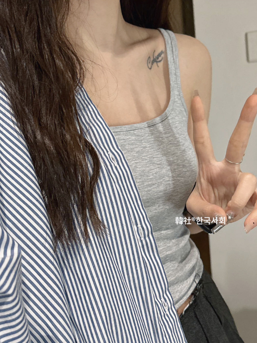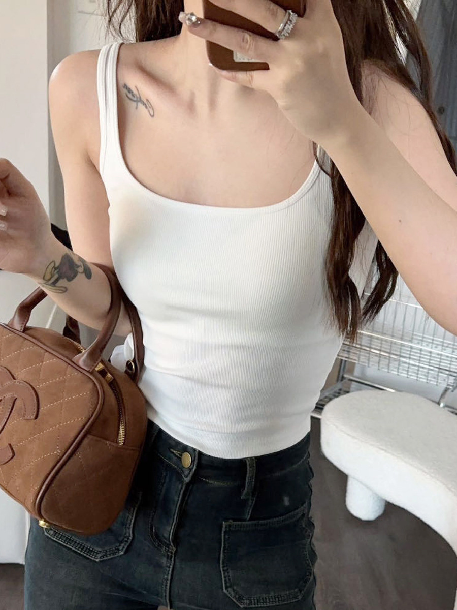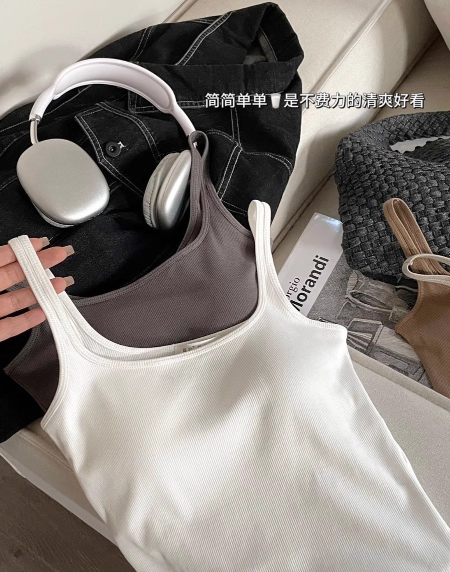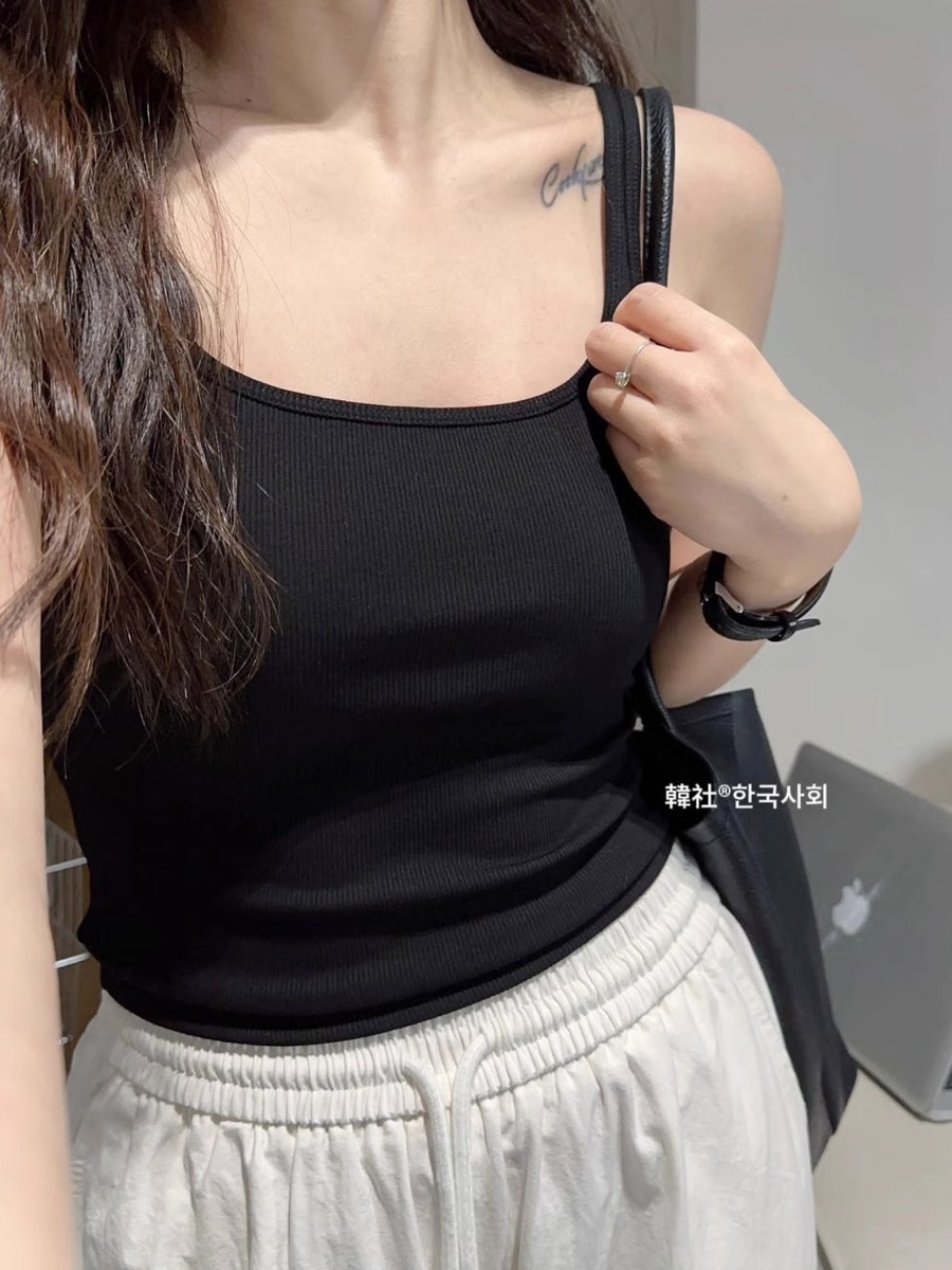 얇은 자급 가슴 패드 카미 솔 조끼 여성 내부 브라 안티 러닝 라이트 언더웨어 베이스를 보여주는 가슴과 허리를 보여주는 스레드 작은 스퀘어 칼라