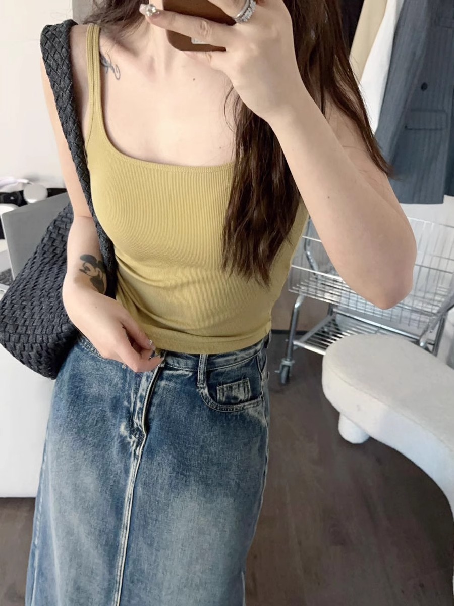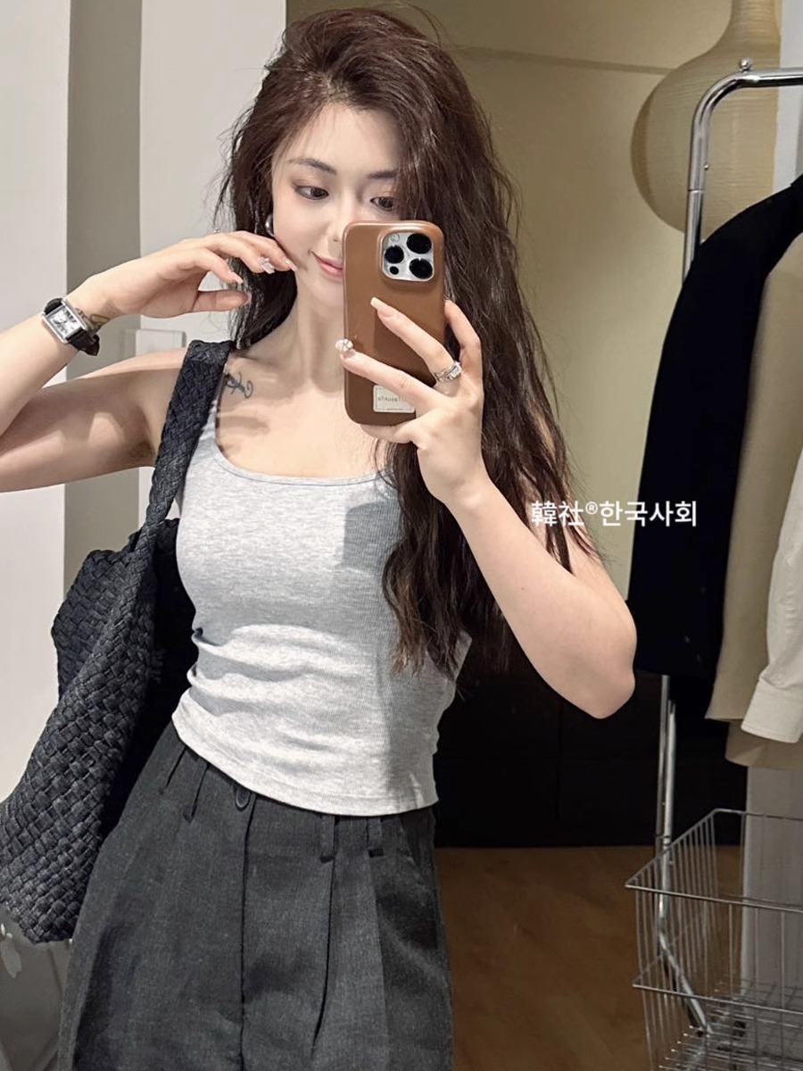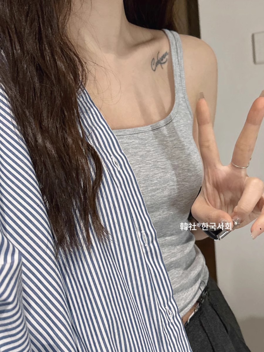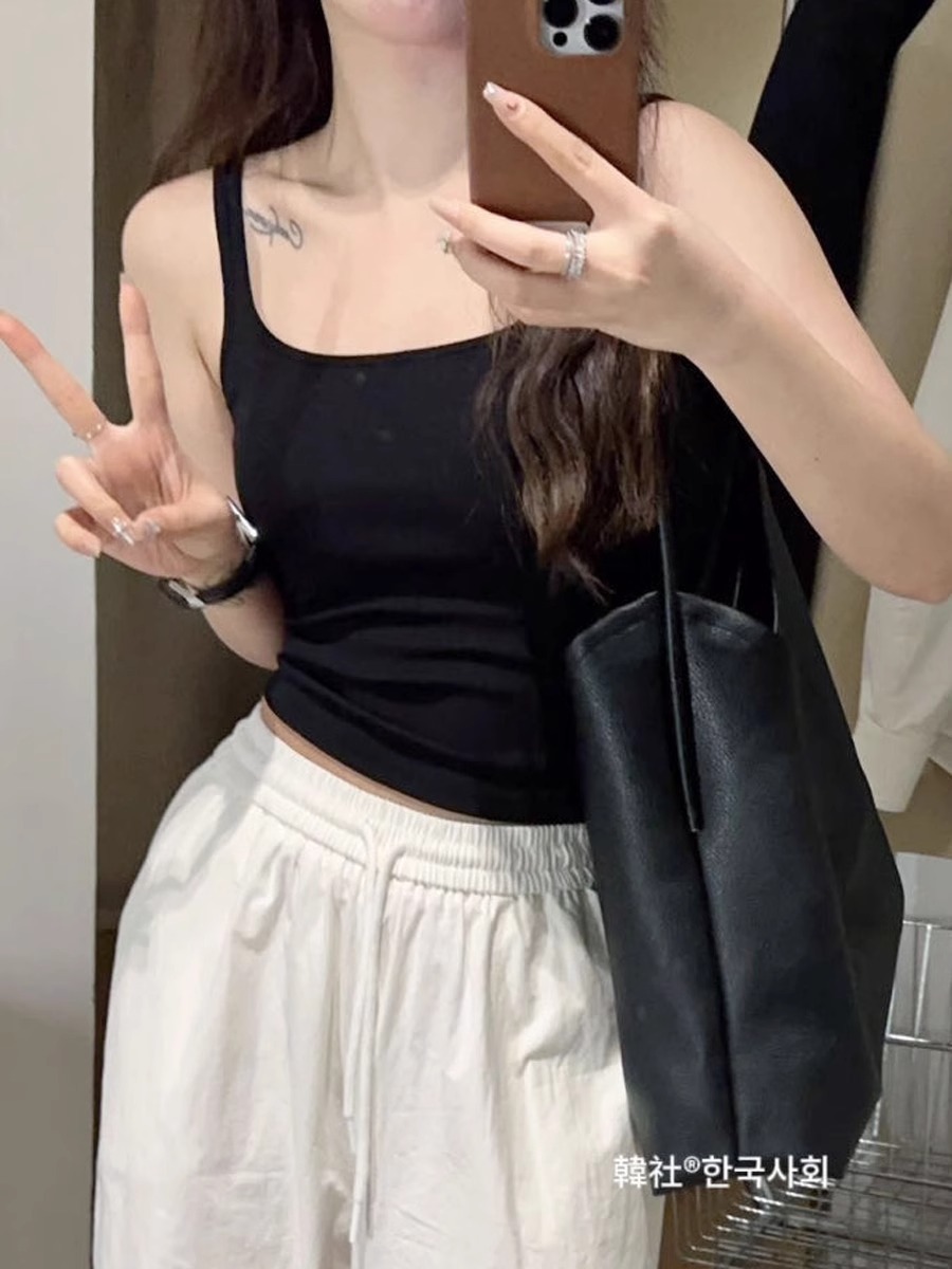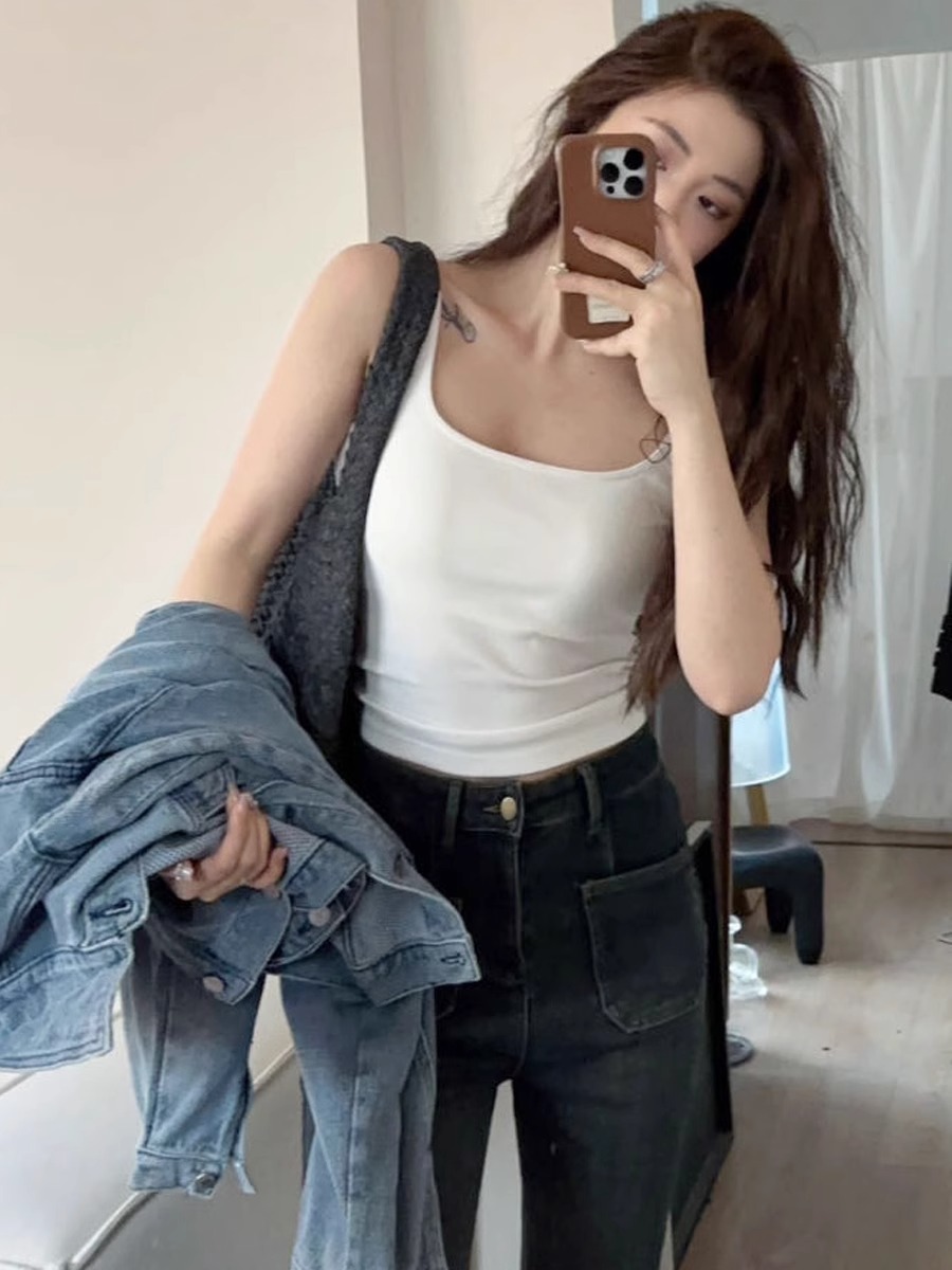 얇은 자급 가슴 패드 카미 솔 조끼 여성 내부 브라 안티 러닝 라이트 언더웨어 베이스를 보여주는 가슴과 허리를 보여주는 스레드 작은 스퀘어 칼라