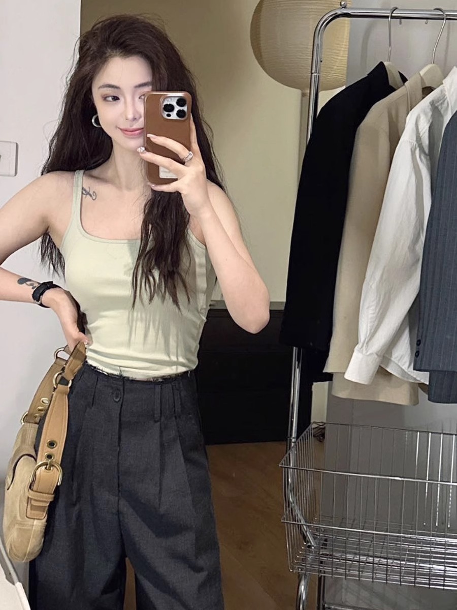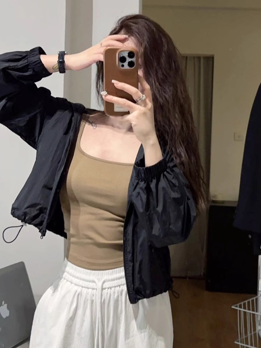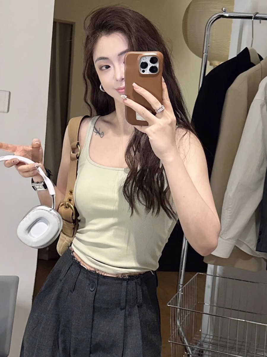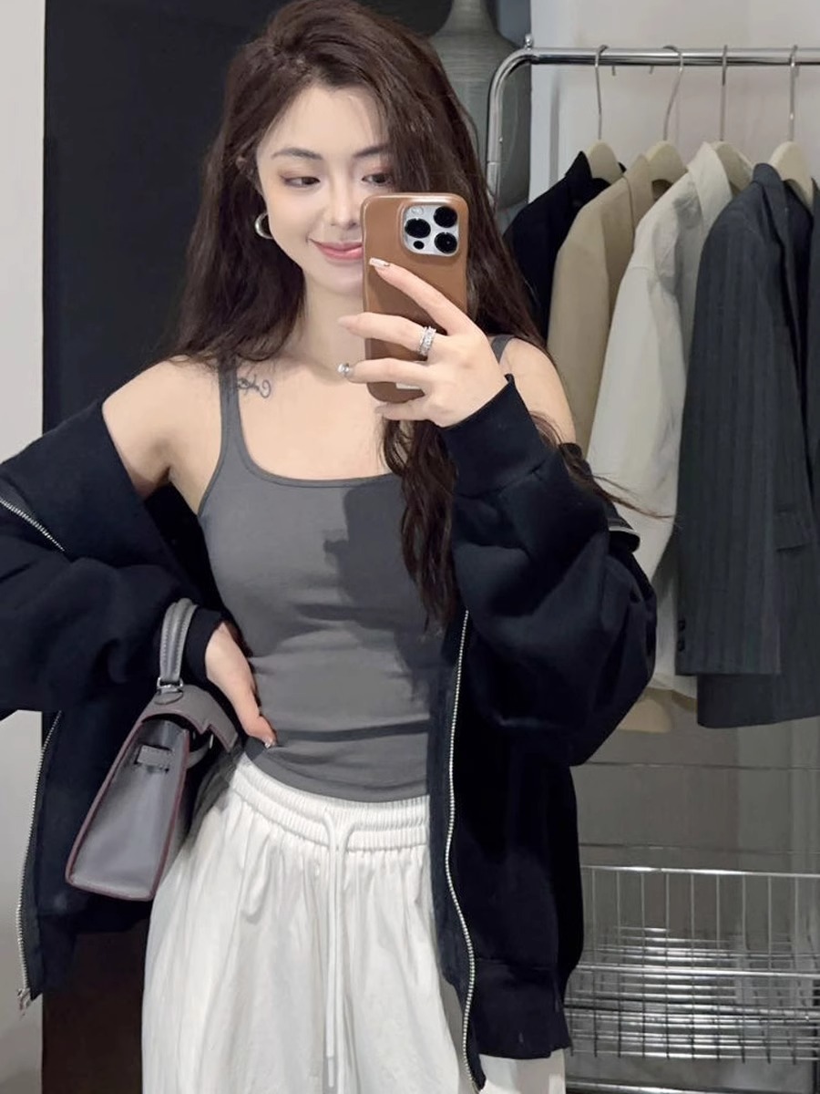 얇은 자급 가슴 패드 카미 솔 조끼 여성 내부 브라 안티 러닝 라이트 언더웨어 베이스를 보여주는 가슴과 허리를 보여주는 스레드 작은 스퀘어 칼라