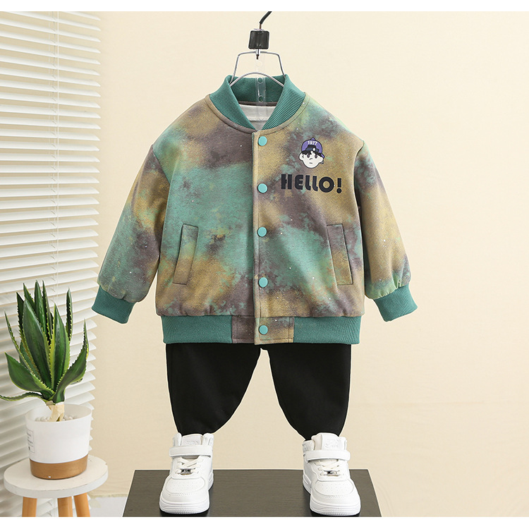 소년의 가을 서양식 야구 세트 코트 2024 가을 새로운 어린이 잘 생긴 자켓 아기의 트렌디 한 아동복