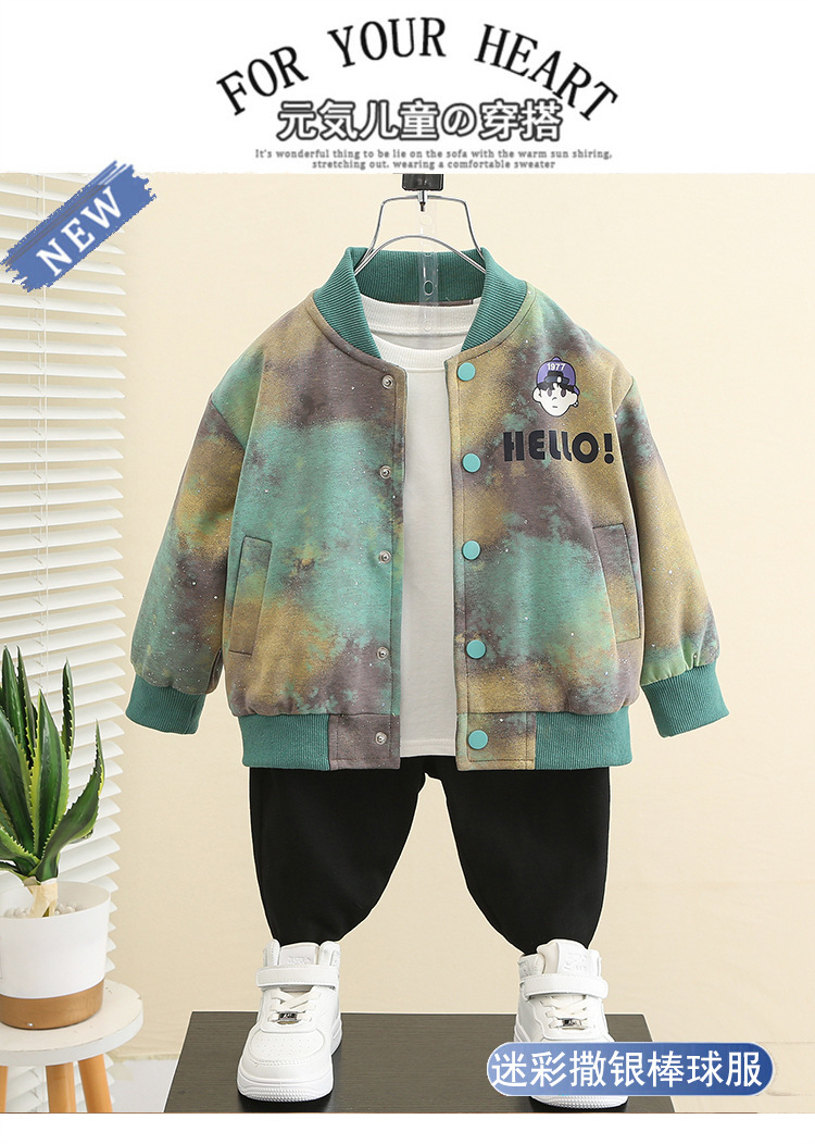 소년의 가을 서양식 야구 세트 코트 2024 가을 새로운 어린이 잘 생긴 자켓 아기의 트렌디 한 아동복스토어 가기
