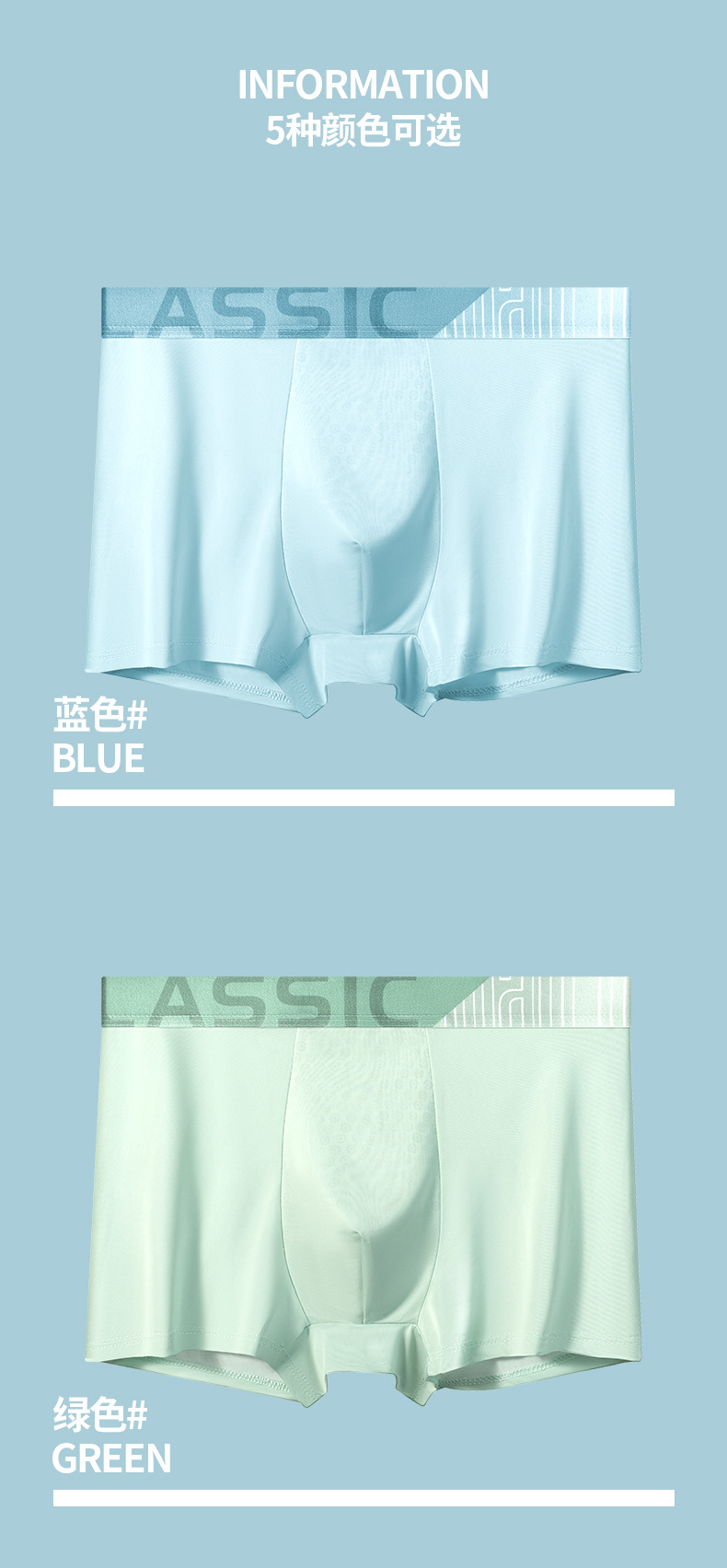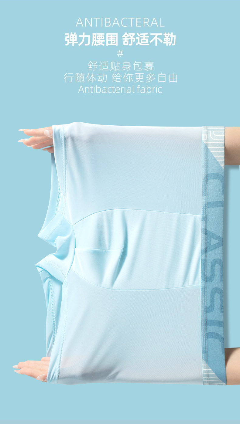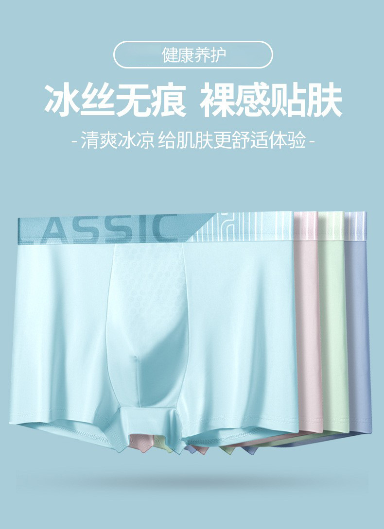 아이스 실크 남성 속옷 여름 단색 중간 허리 통기성 권투 선수 남성 속옷 청소년 권투 선수 도매스토어 가기