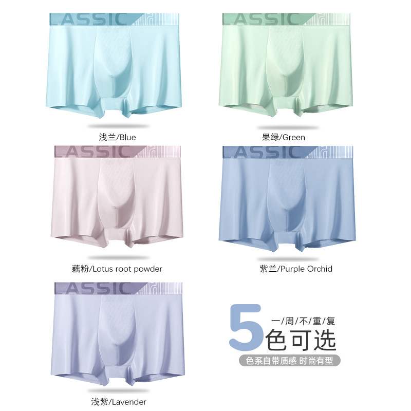 아이스 실크 남성 속옷 여름 단색 중간 허리 통기성 권투 선수 남성 속옷 청소년 권투 선수 도매
