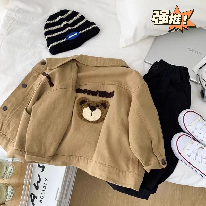 2024 봄과 가을 새로운 아동복 소년 아기 코트 베어 재킷 어린이 잘 생긴 캐주얼 탑 트렌디