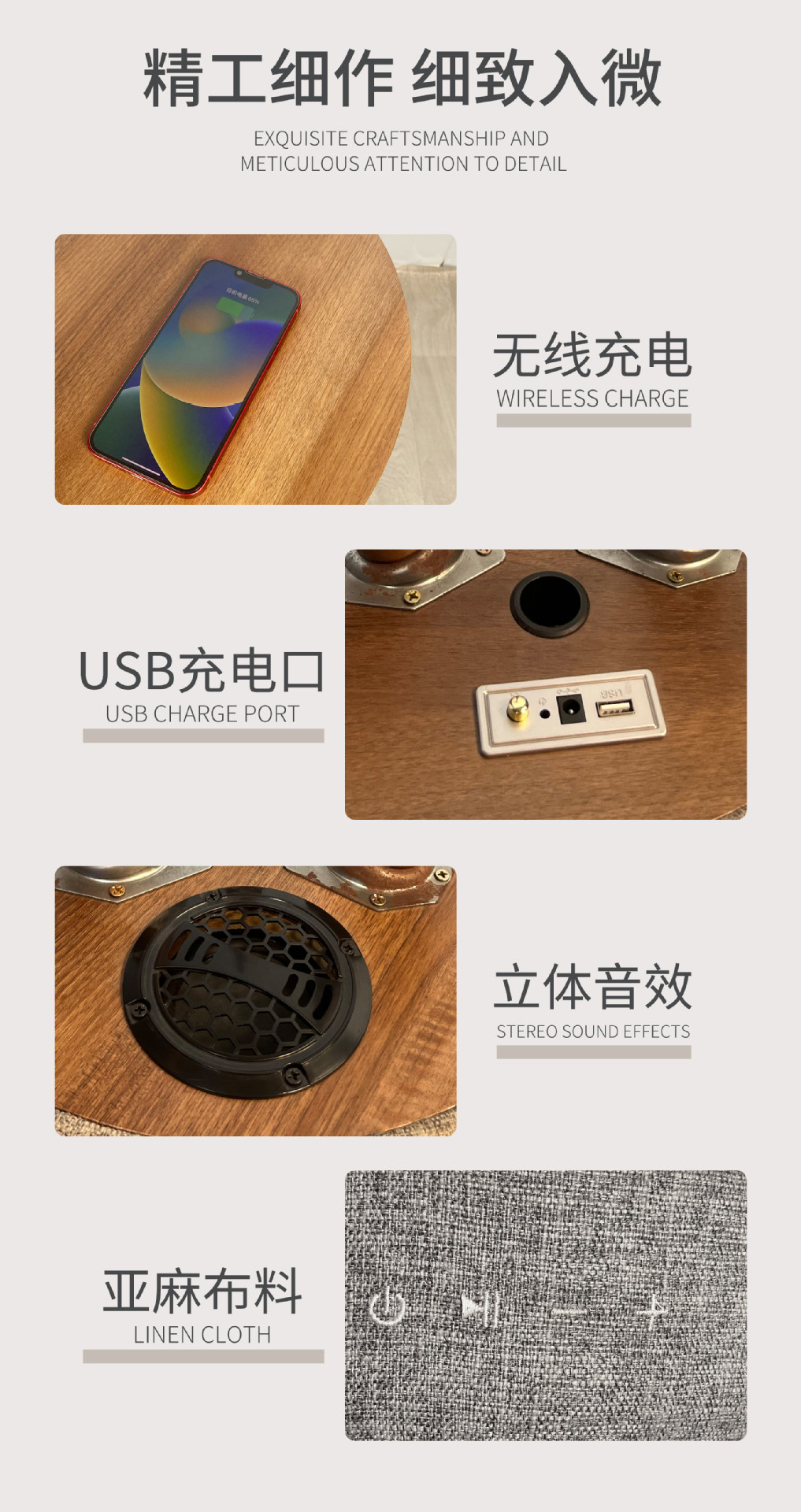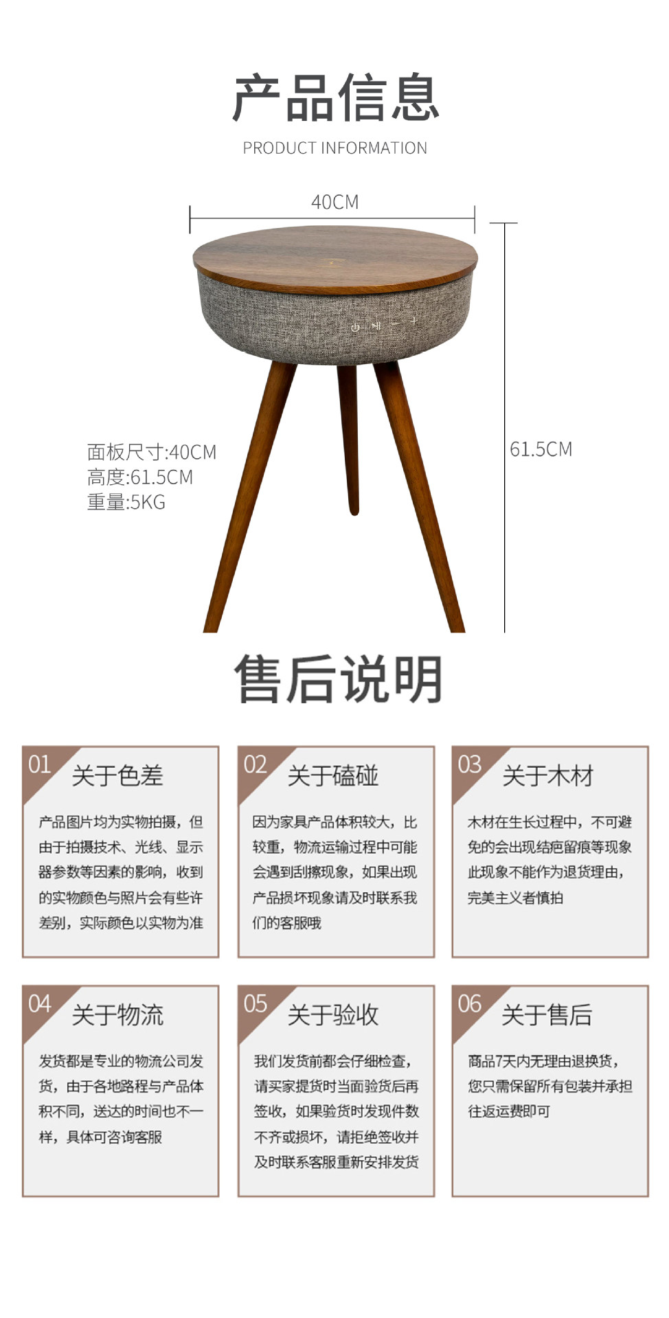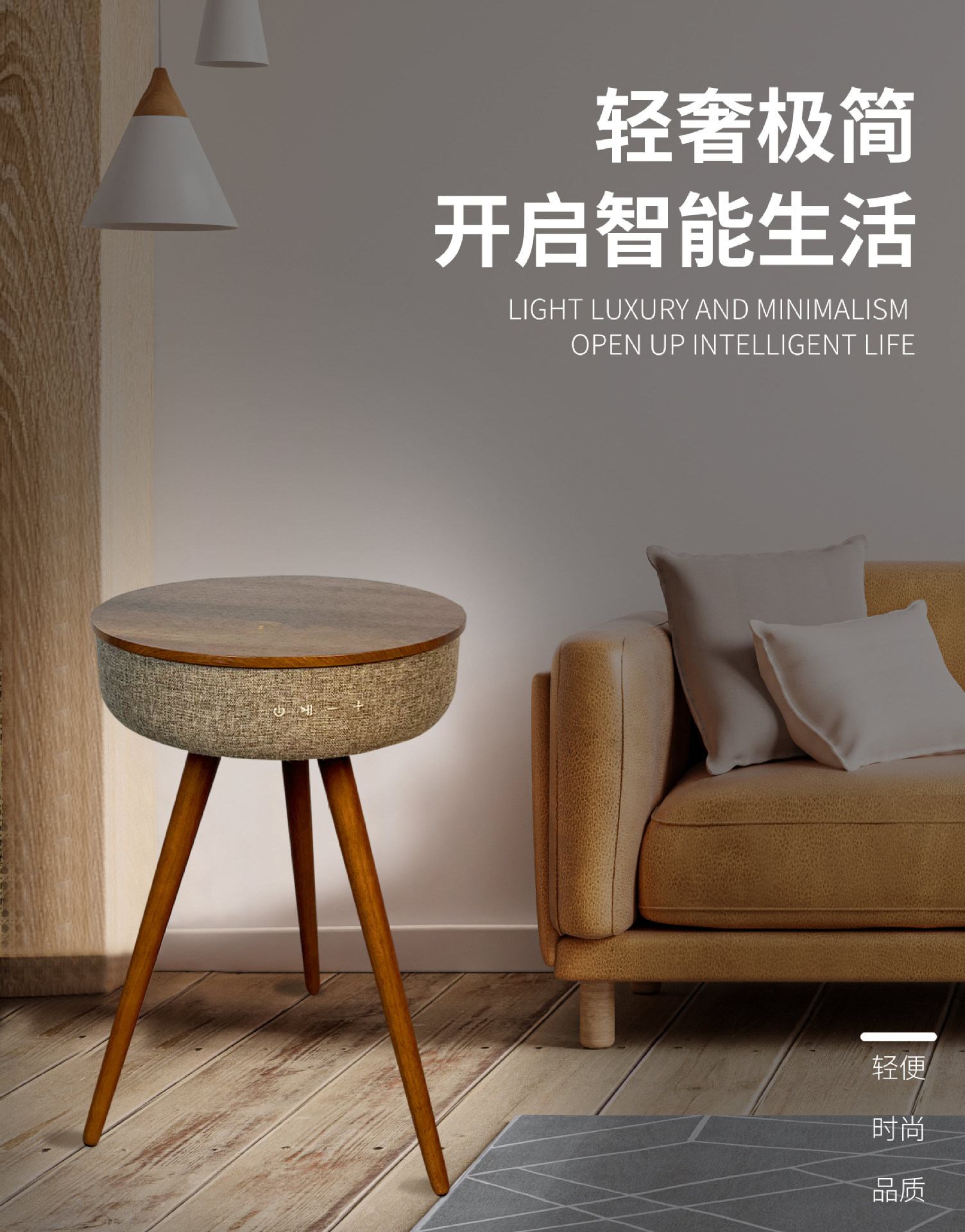 북유럽 스타일 라이트 사이드 테이블 블루투스 충전식 내장 스피커 무선 원형 테이블 방수 무선 블루투스 스피커스토어 가기