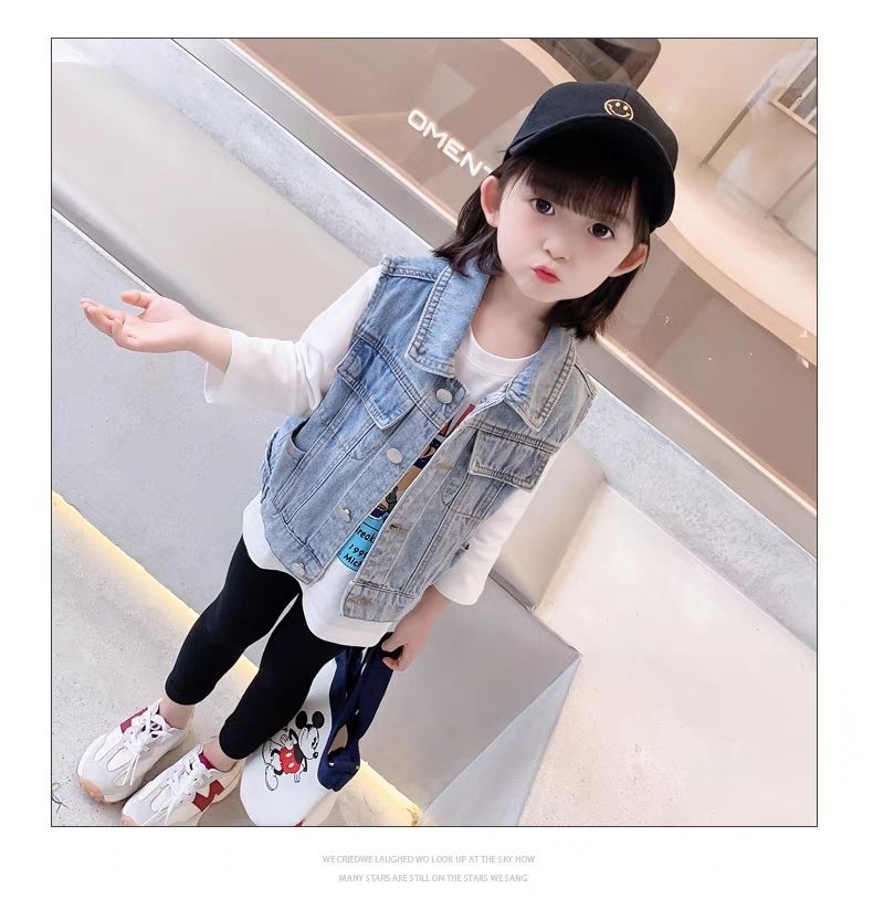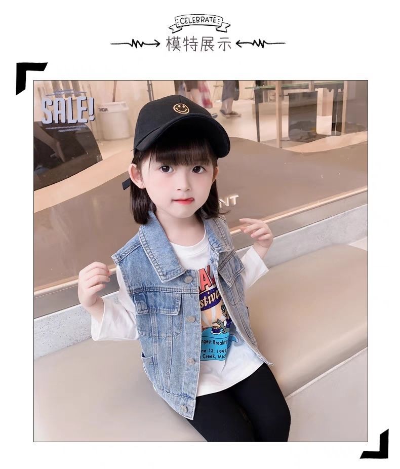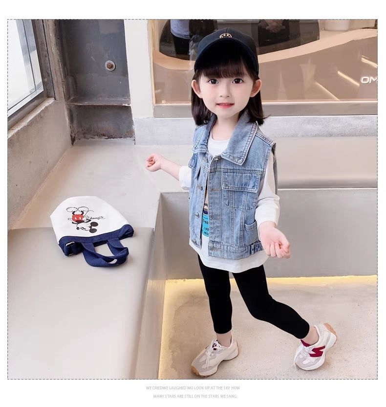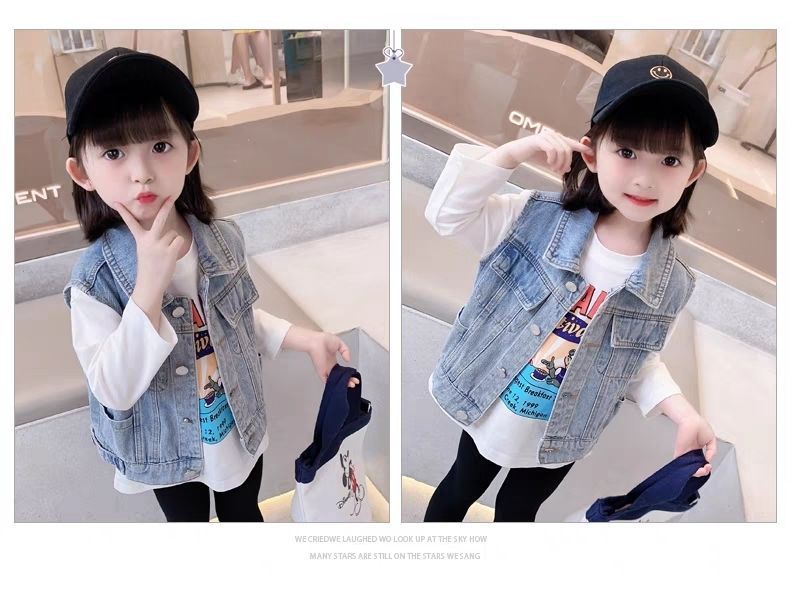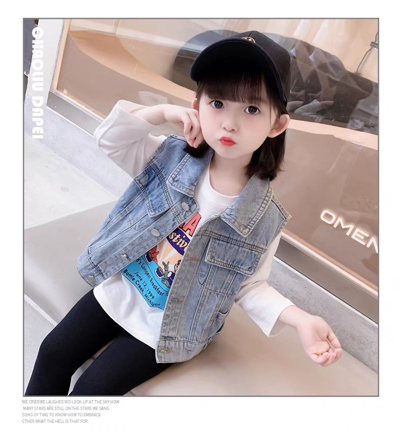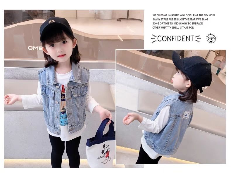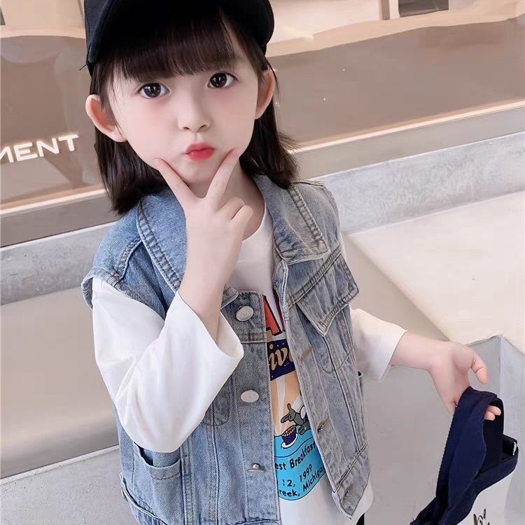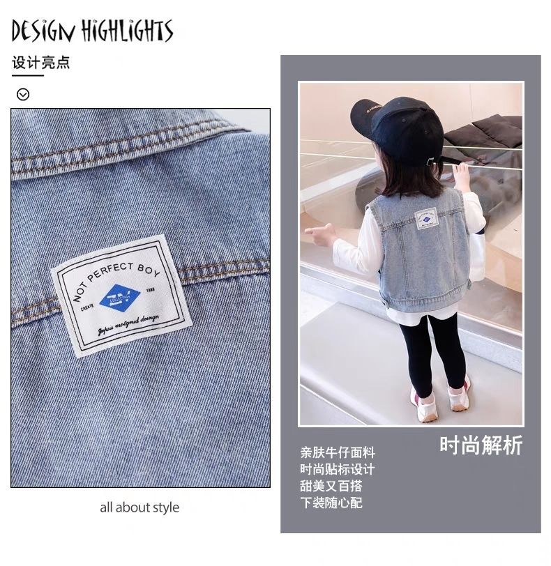 어린이 데님 조끼 봄 가을 외출용 인기 여아 조끼 세련된 아동 한국 스타일 2025 신상 트렌디한 아동복스토어 가기
