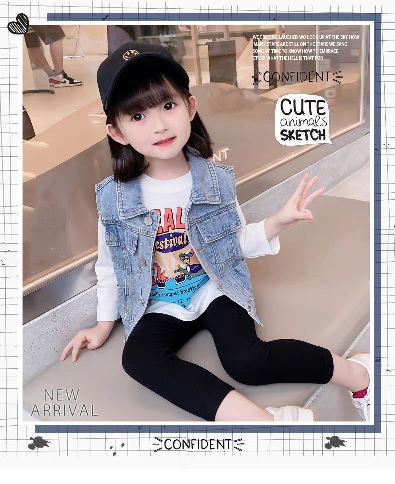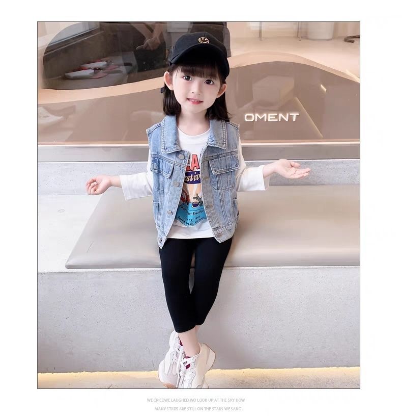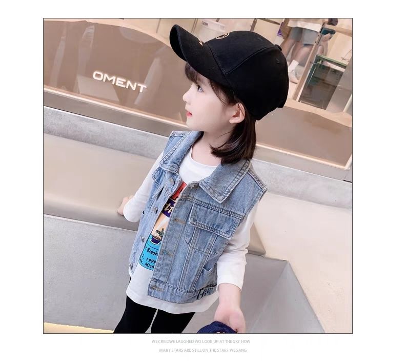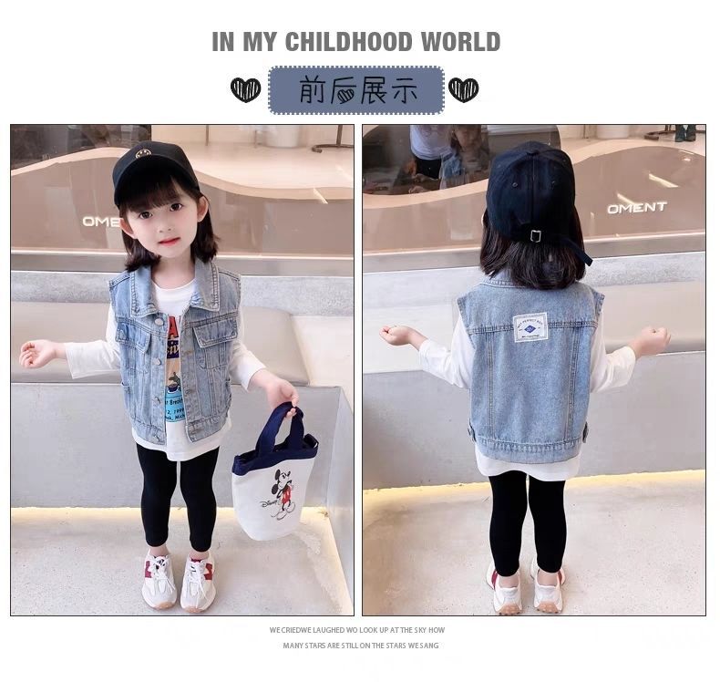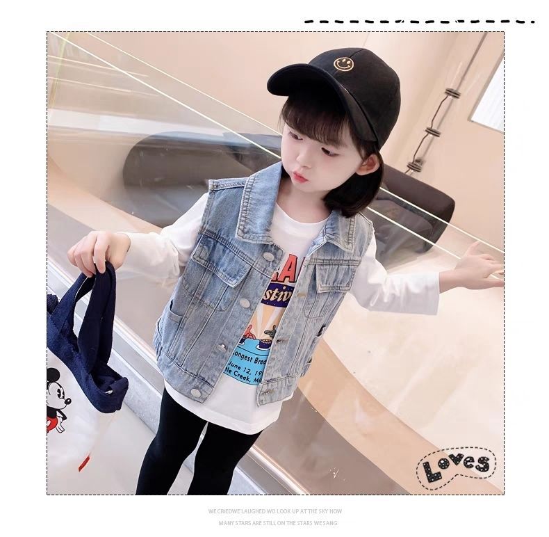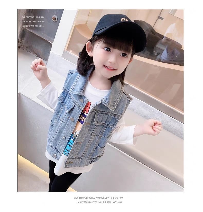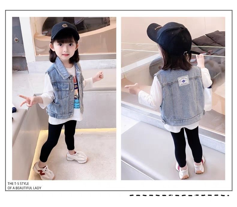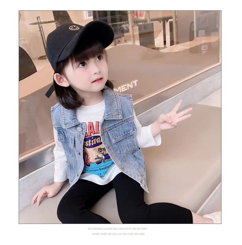 어린이 데님 조끼 봄 가을 외출용 인기 여아 조끼 세련된 아동 한국 스타일 2025 신상 트렌디한 아동복스토어 가기