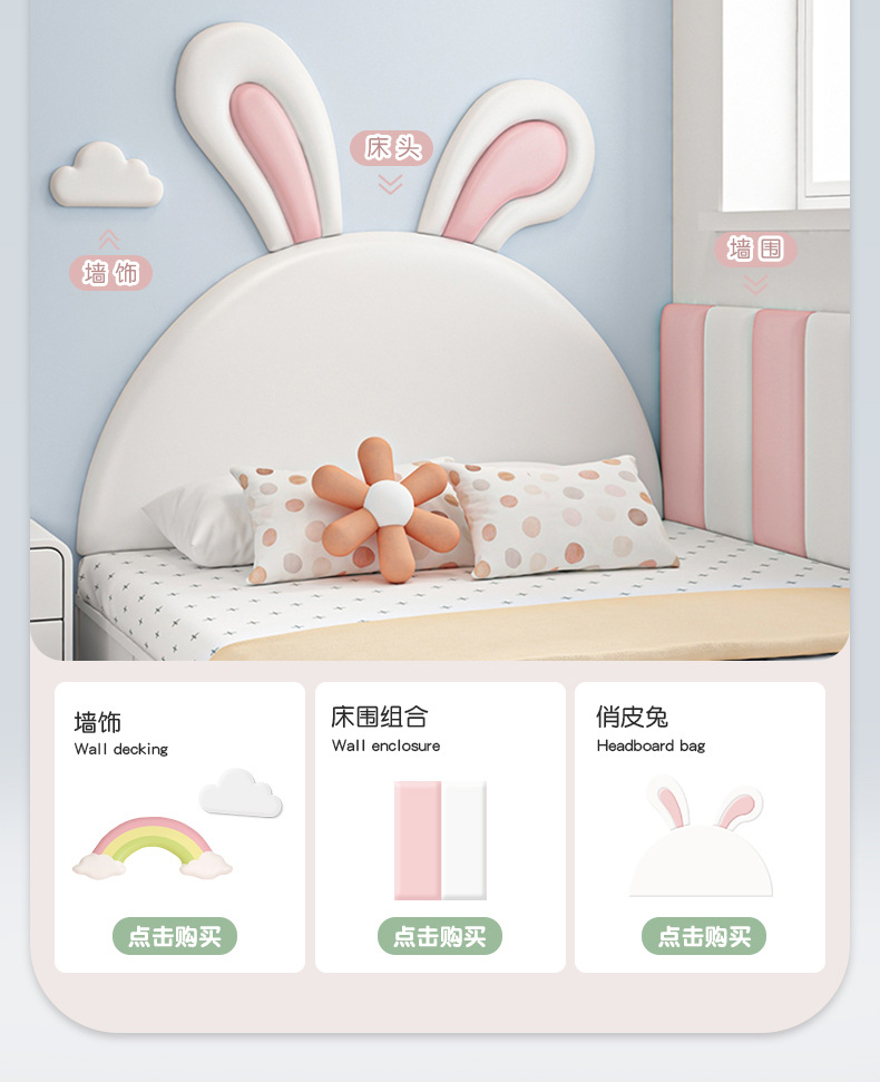 P66D 침대 옆 소프트 백 쿠션 어린이 방 소년과 소녀 만화 다타미 침대 옆 없음 충돌 방지 머리 등받이스토어 가기