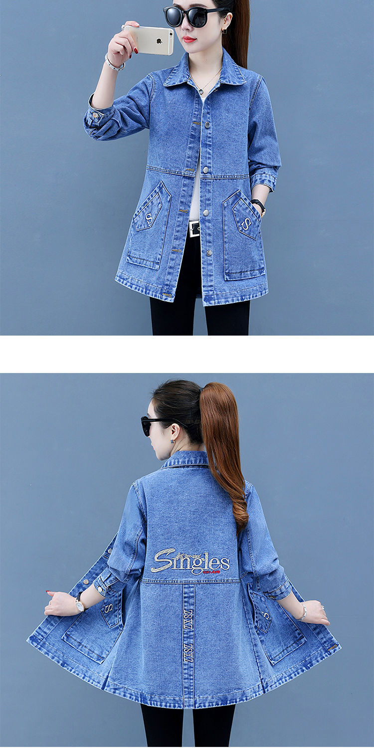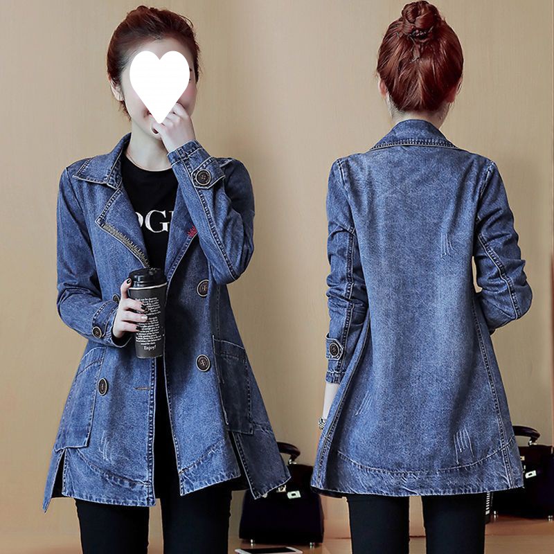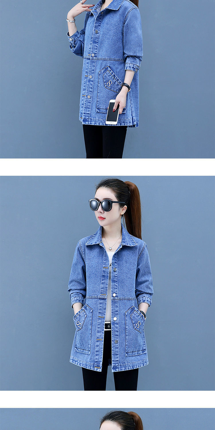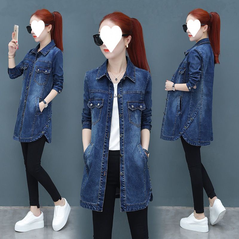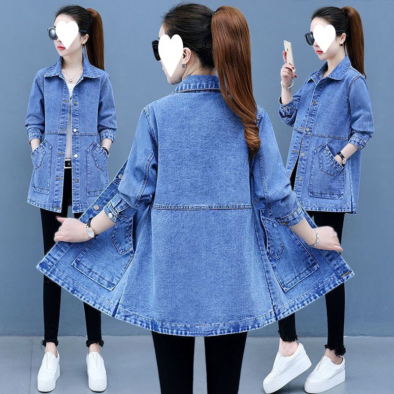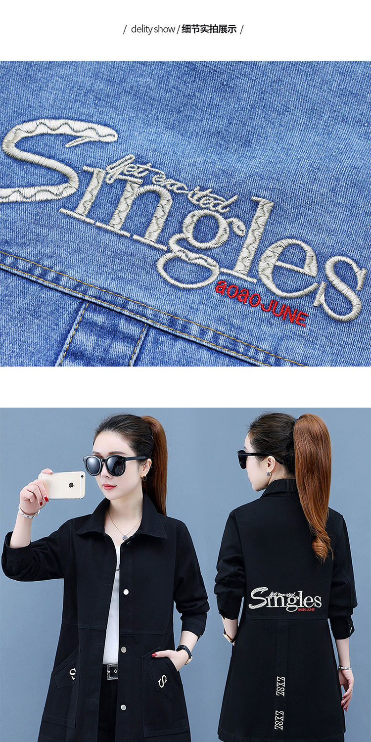 봄과 가을 데님 코트 여성의 2024 새로운 패션 간단한 데님 코트 여성의 중간 길이 원피스 칼라 재킷스토어 가기
